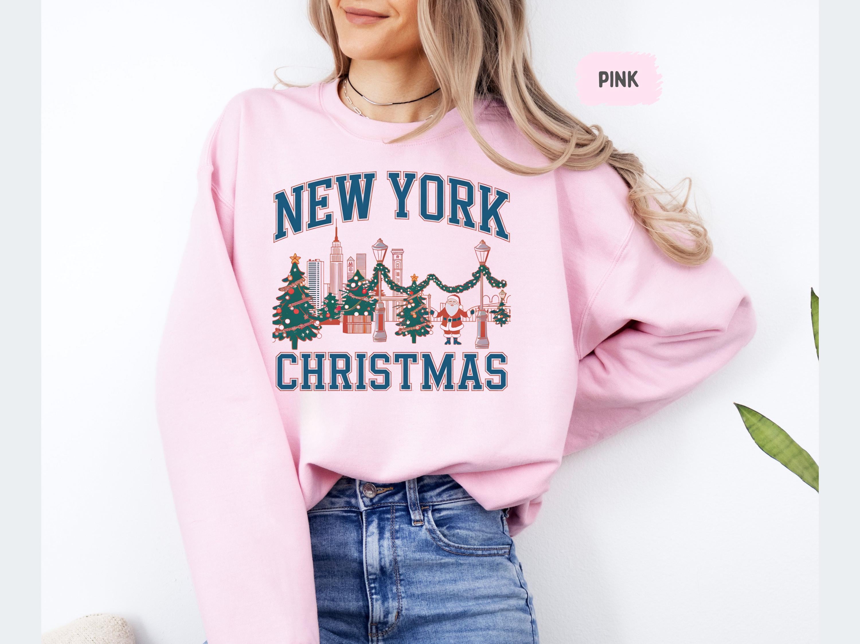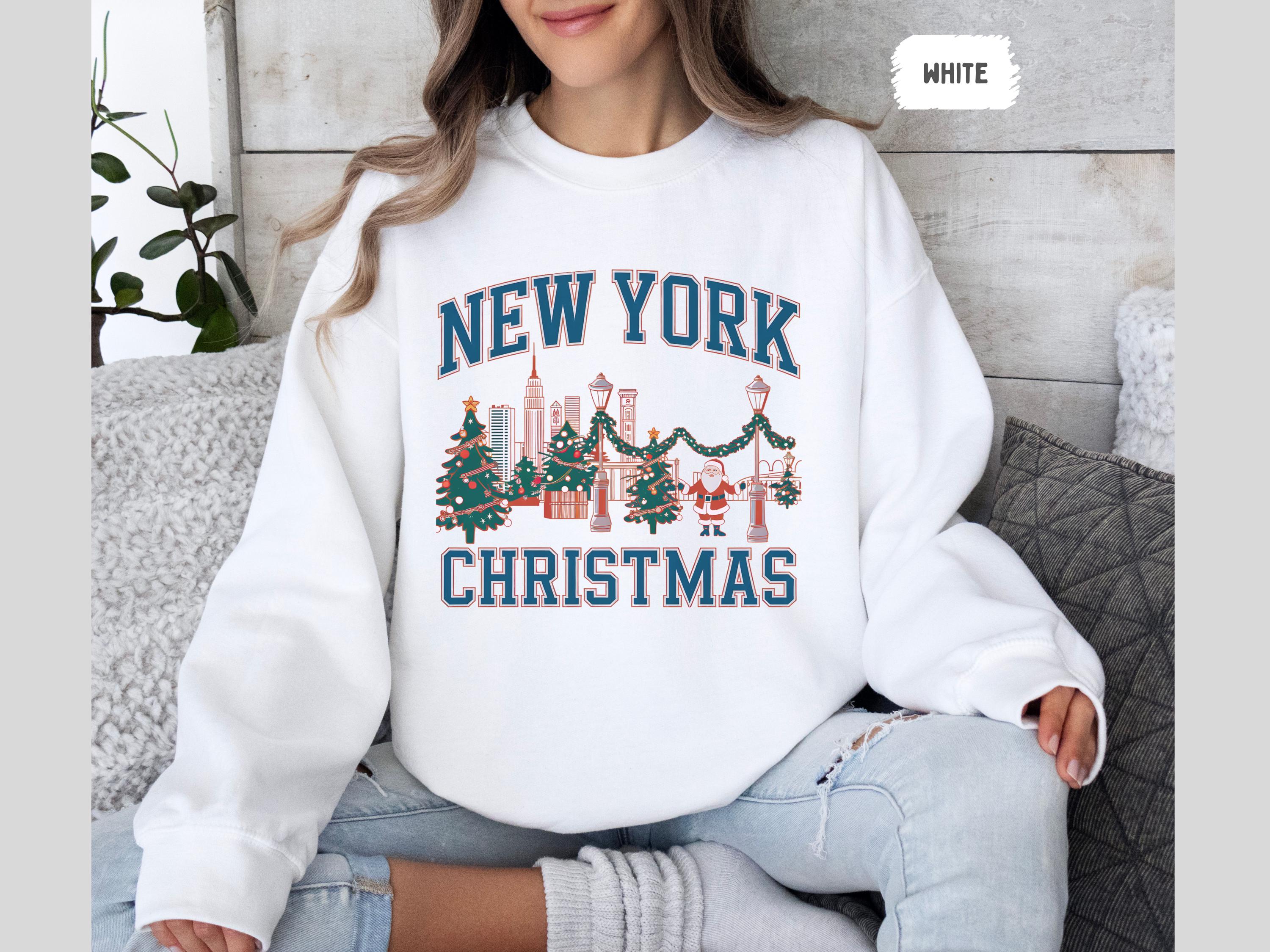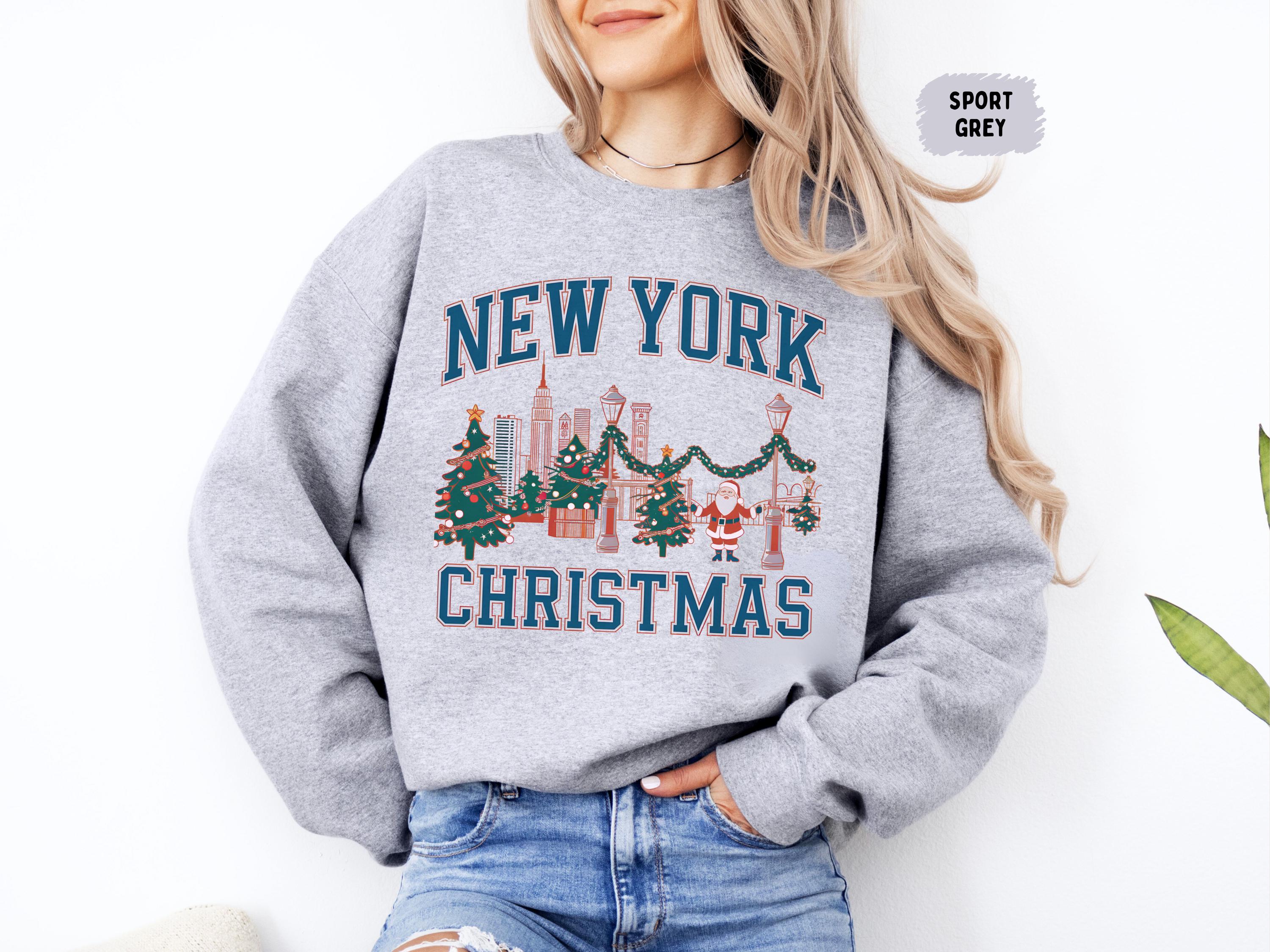 ✨ New York Christmas Sweatshirt Gildan 18000 Festive Holiday Crewneck Jumper Unisex Winter Apparel Ideal Xmas Gift for Men & Women Printify Choice ✨