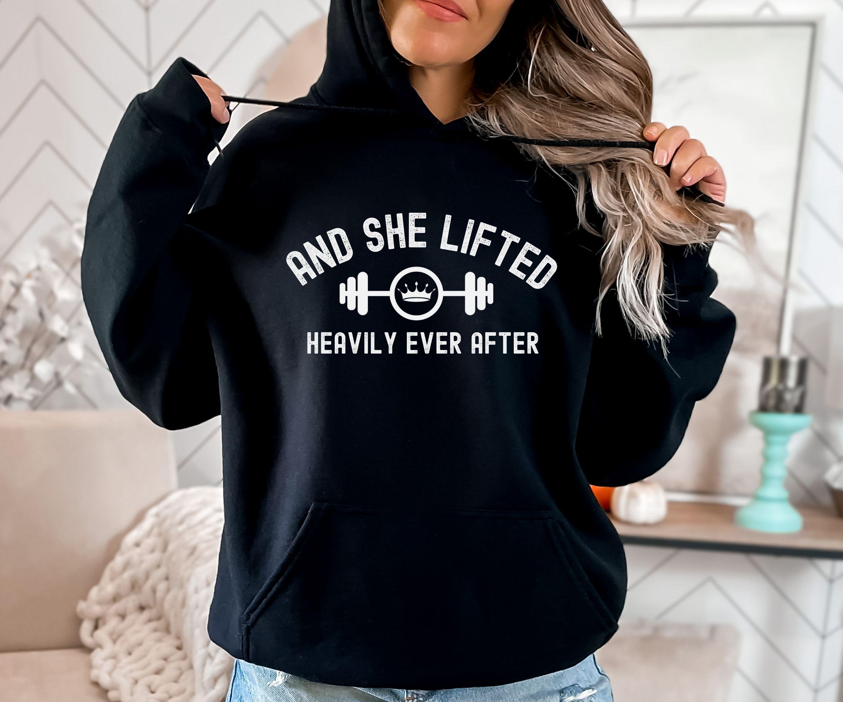 And She Lifted Heavily Ever After Sweatshirt - Gildan 18000 Women's Gym Top, Cute Fitness Gift, Printify Choice, Cozy Workout Outfit