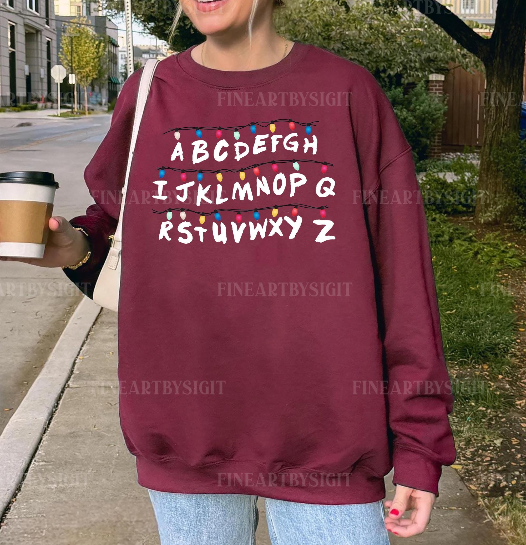 Comfort Colors® 1566 Unisex Garment-Dyed Alphabet Christmas Sweatshirt, Cozy Gift for Men & Women, Perfect Holiday Outfit, Stranger Things Aesthetic