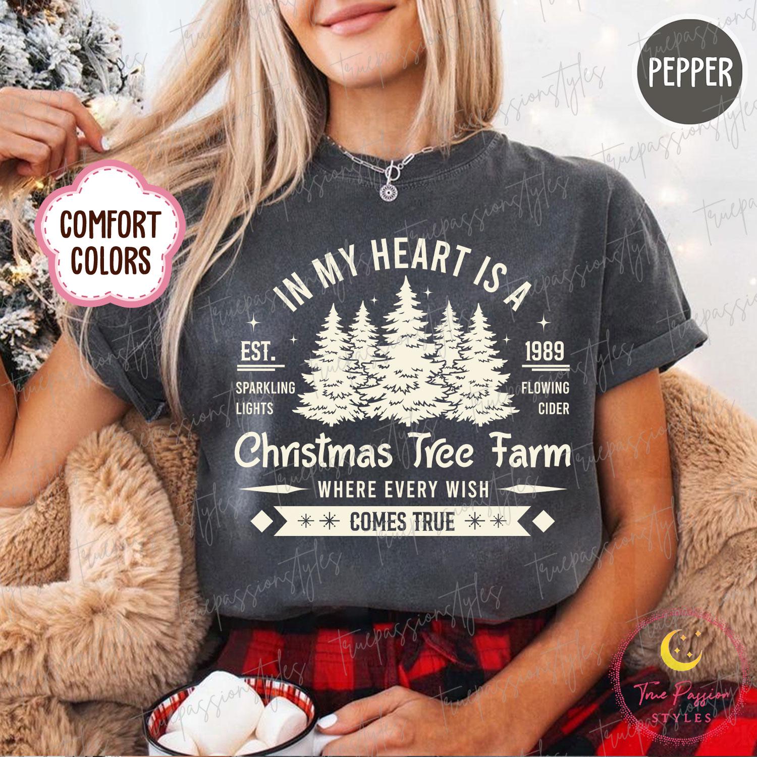 Comfort Colors® 1717 Christmas Tree Farm Sweatshirt, Unisex Garment-Dyed Shirt, Cute Winter Gift for Women, Viral Christmas Outfit S04715