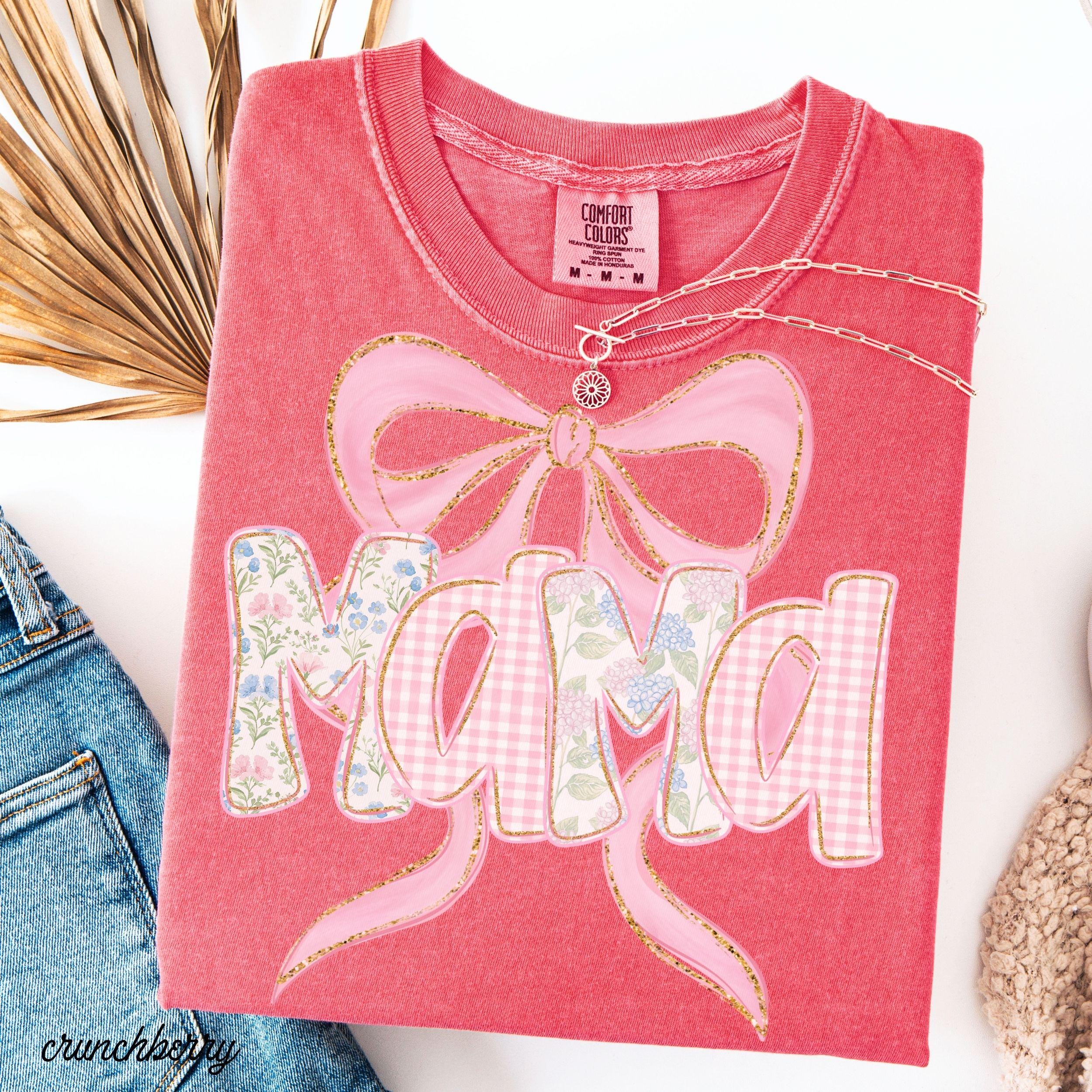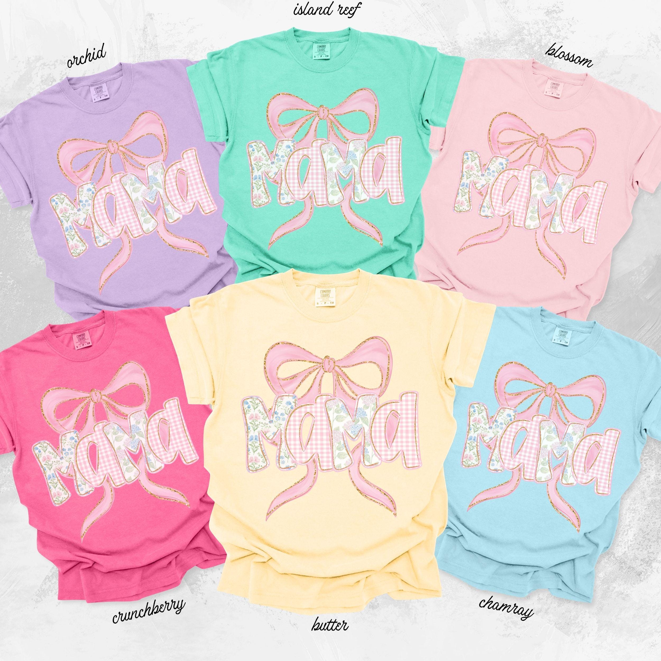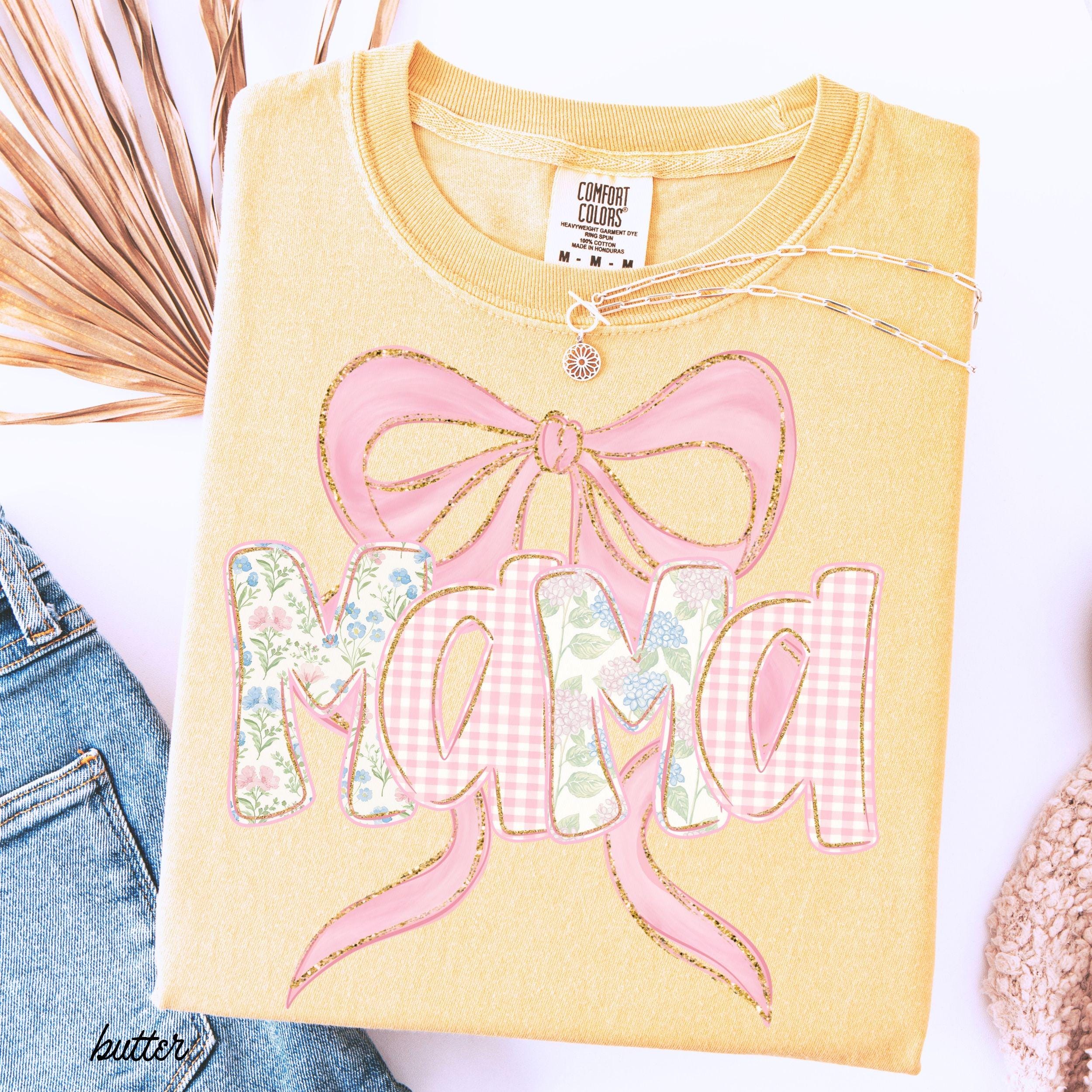 Comfort Colors® 1717 Floral Mama Shirt for Women - Unisex Garment-Dyed Spring Tee, Trendy Pregnancy Reveal Gift by SwiftPOD