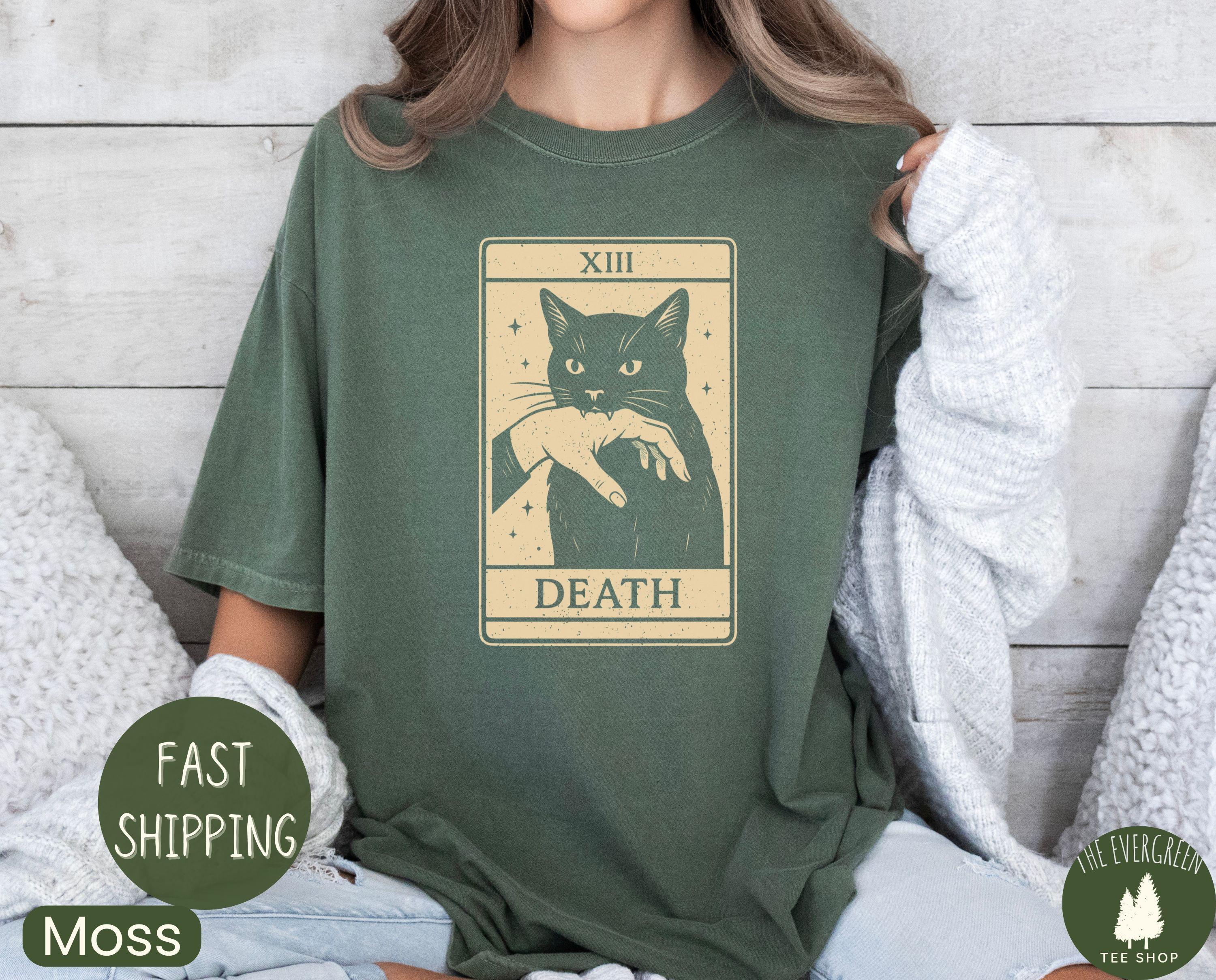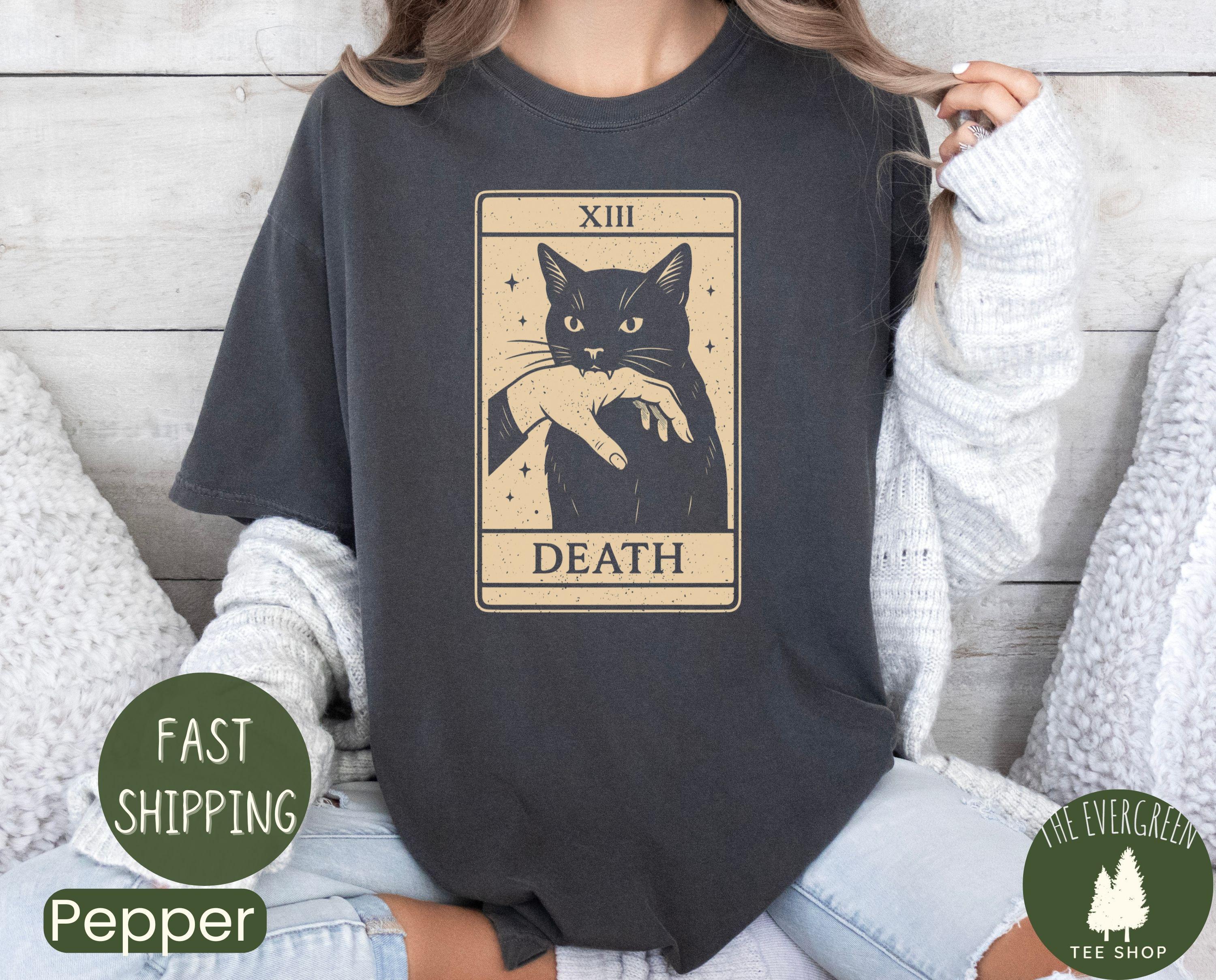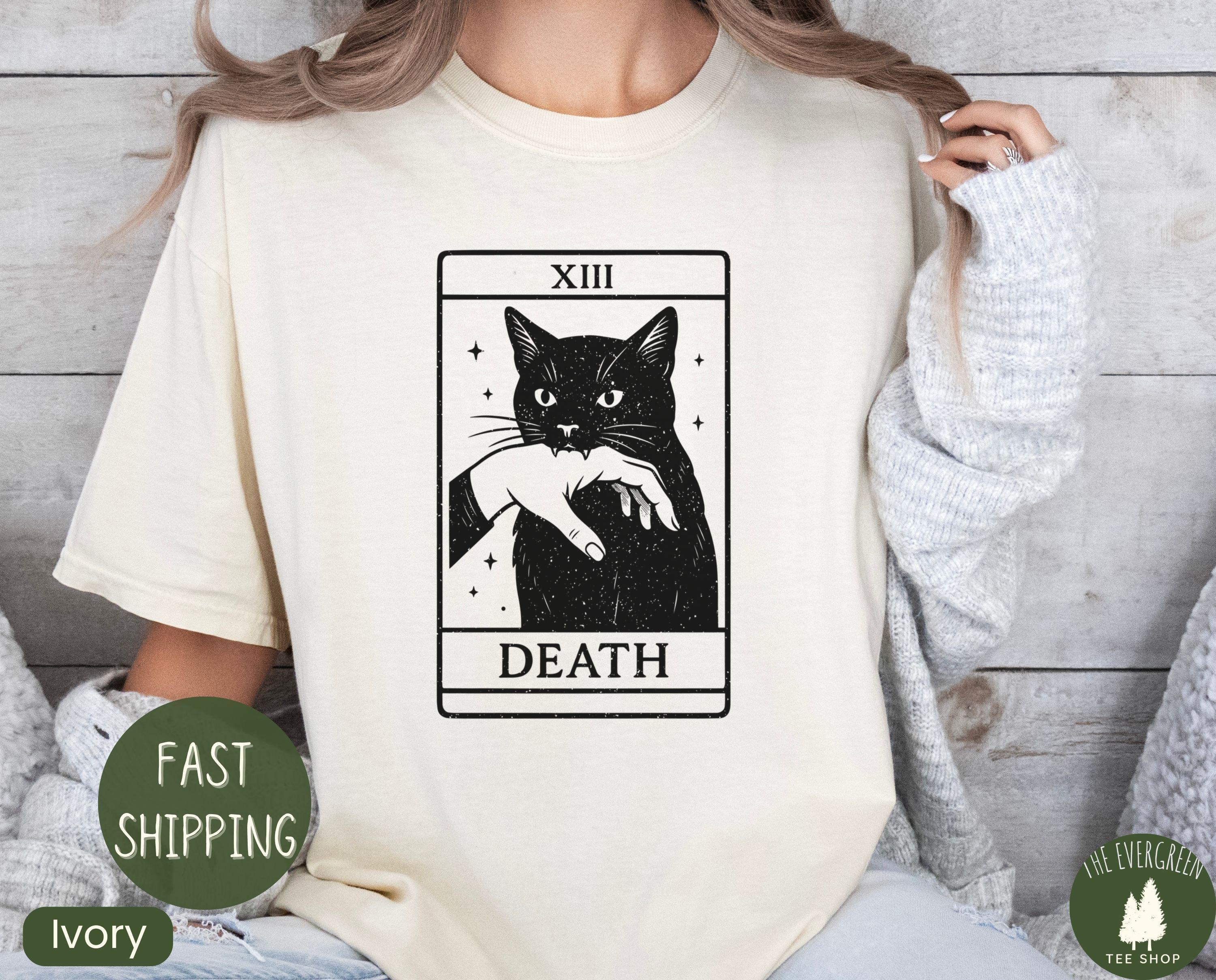 Comfort Colors® 1717 Tarot Black Cat T-shirt, Unisex Garment-Dyed SwiftPOD, Witchy Gift, Halloween Aesthetic, Spooky Cat Lover Shirt for Women