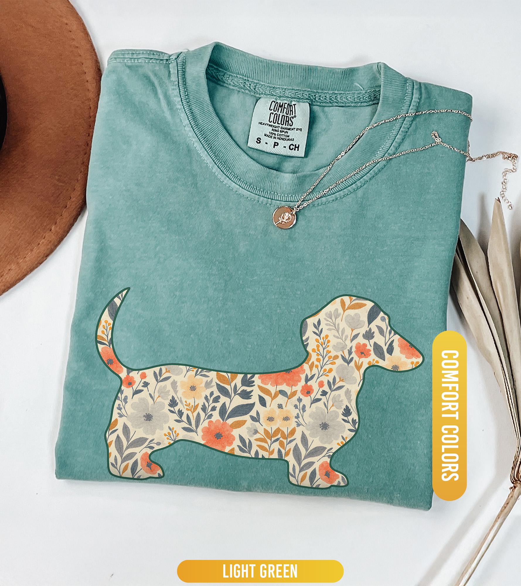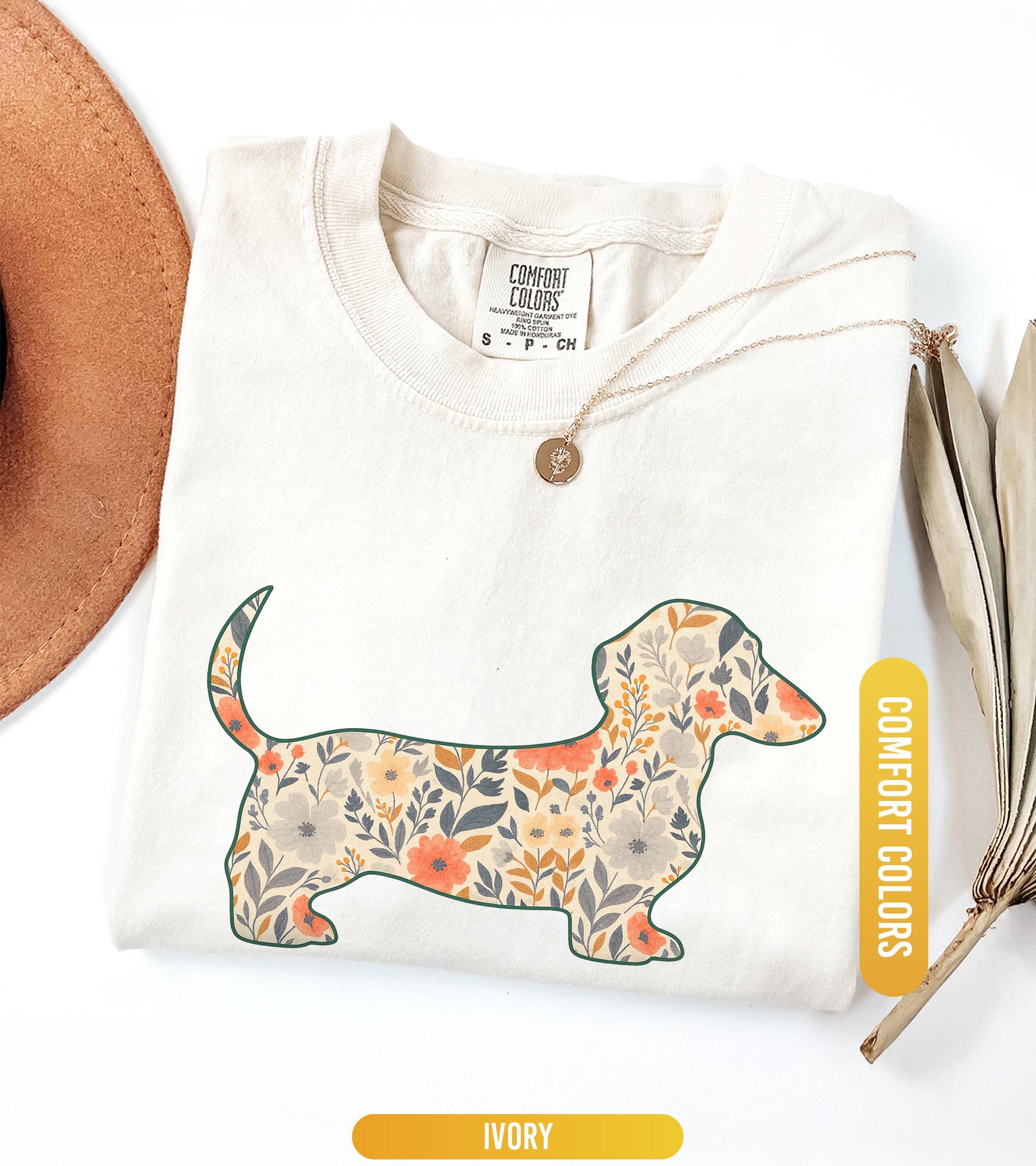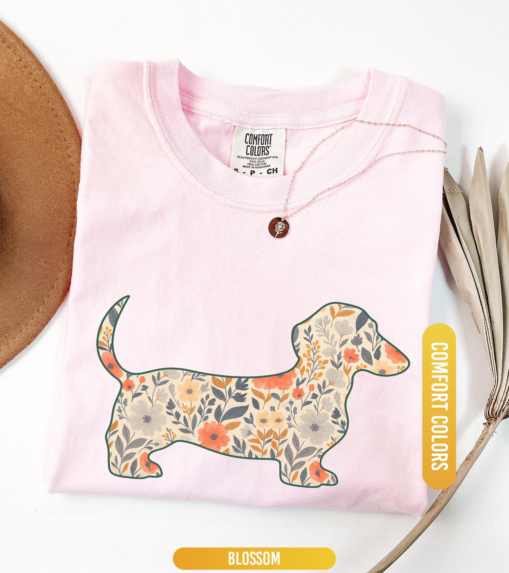 Comfort Colors® 1717 Unisex Floral Dachshund Shirt, SwiftPOD Weenie Dog Gift, Perfect for Dachshund Moms, Casual Outfit Aesthetic