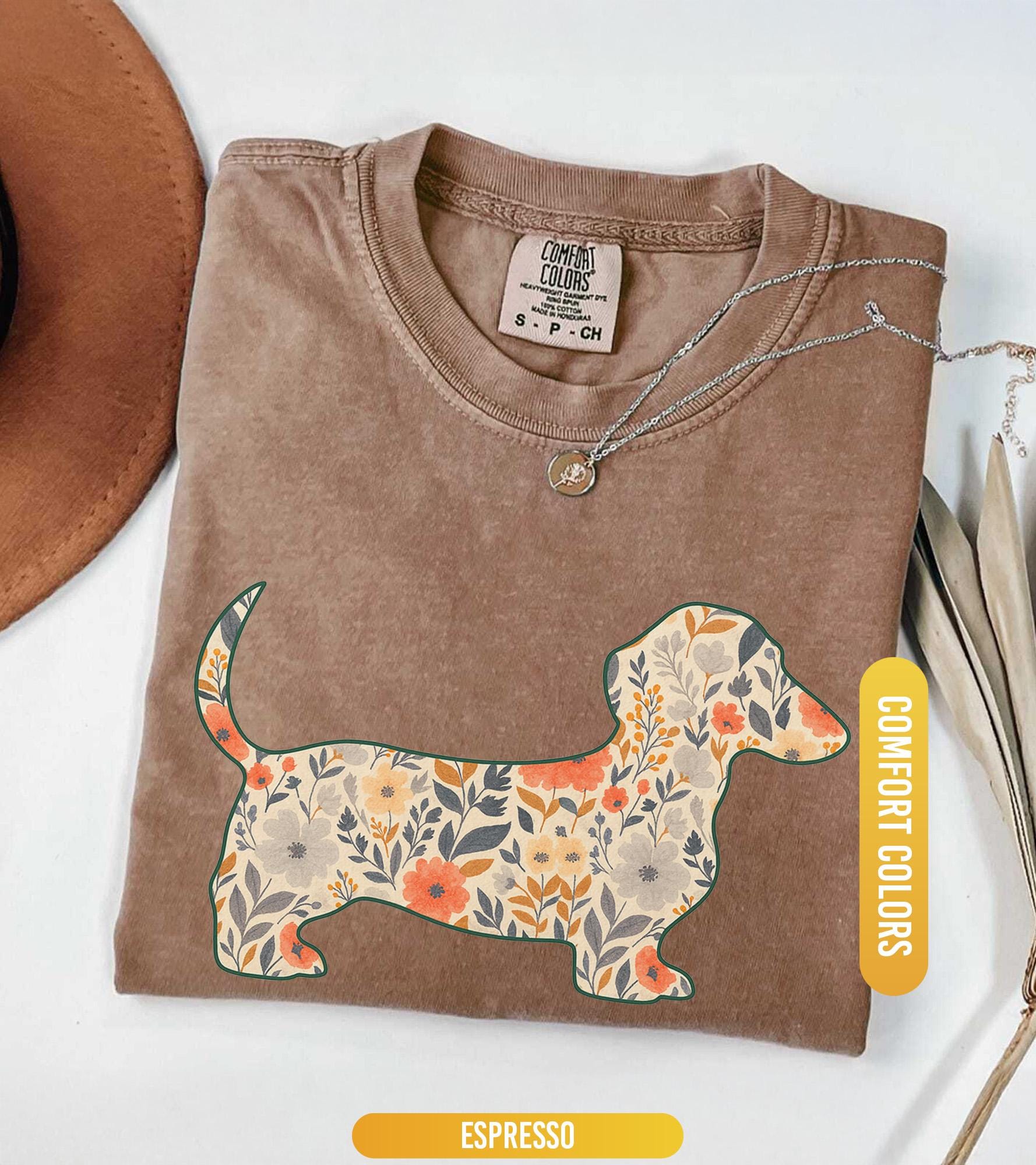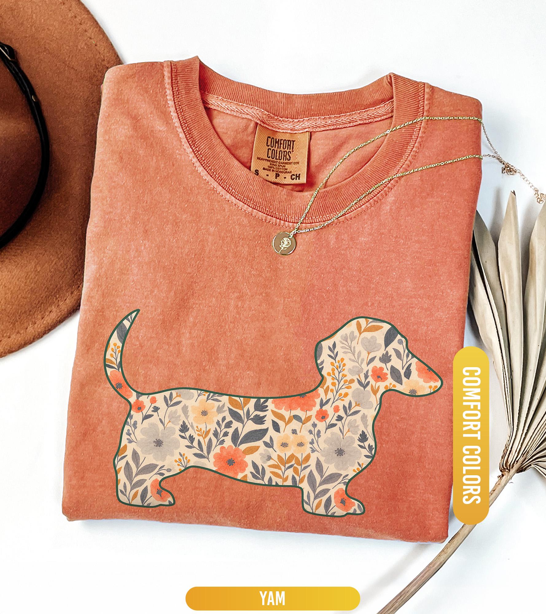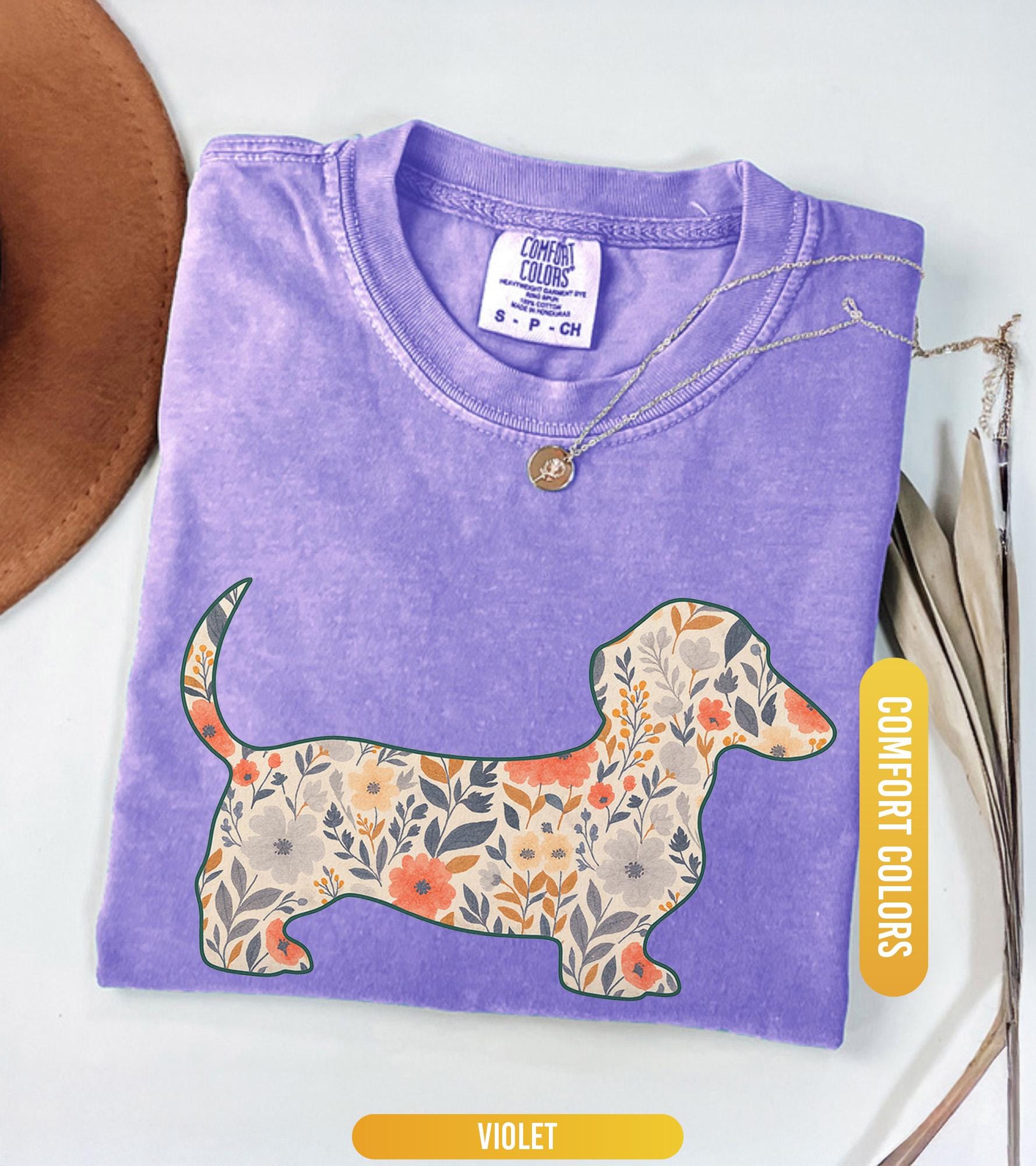 Comfort Colors® 1717 Unisex Floral Dachshund Shirt, SwiftPOD Weenie Dog Gift, Perfect for Dachshund Moms, Casual Outfit Aesthetic