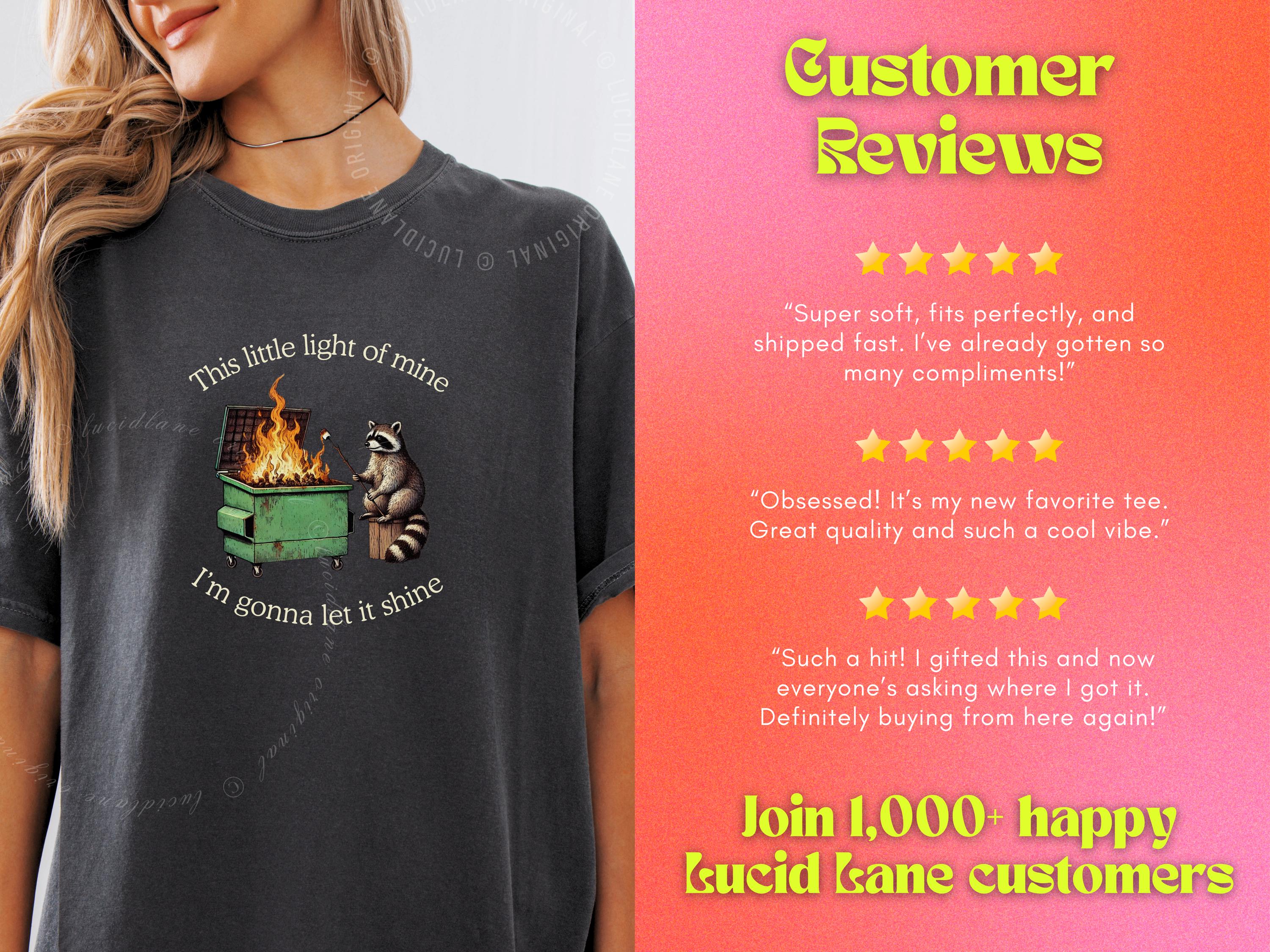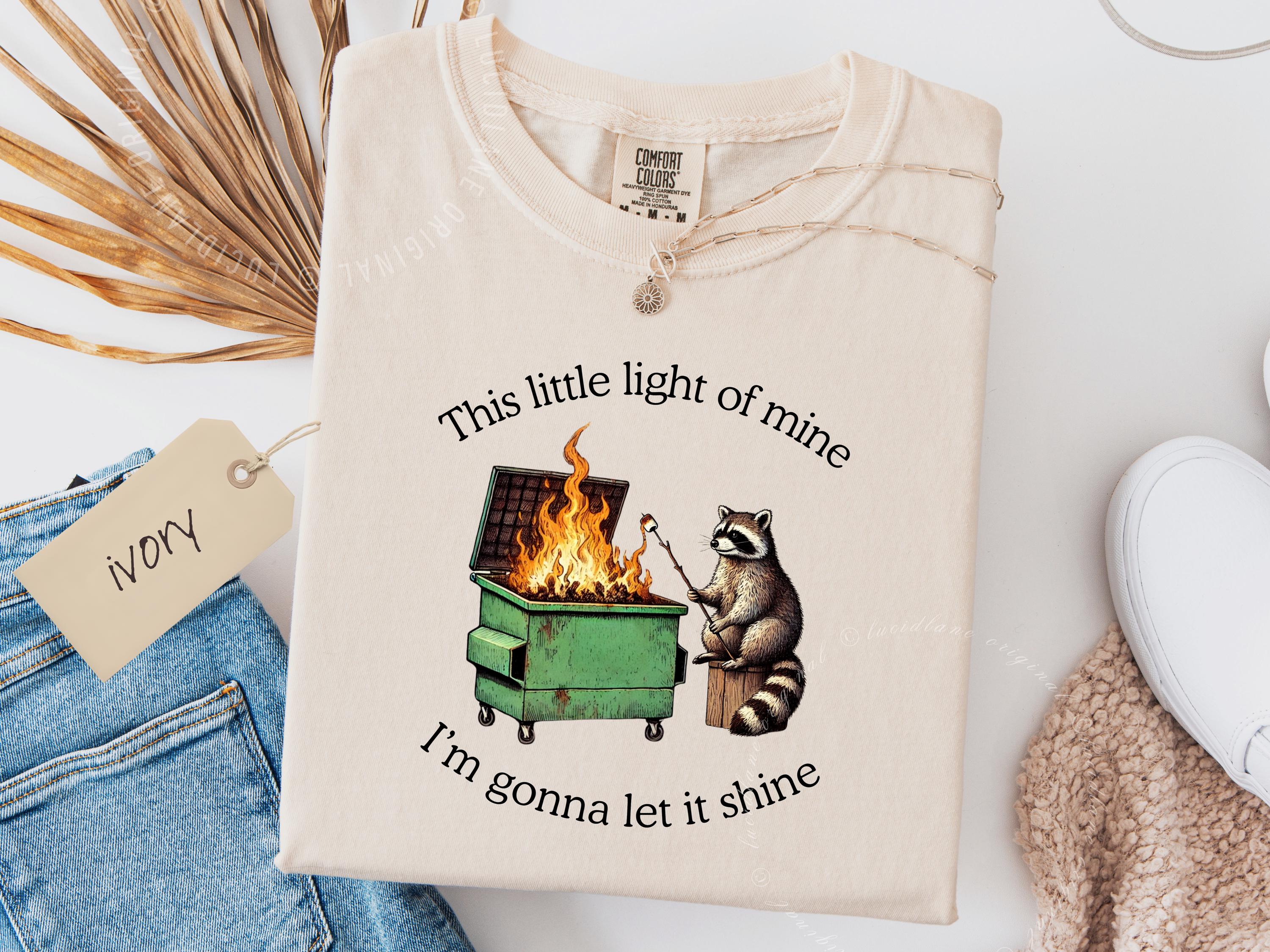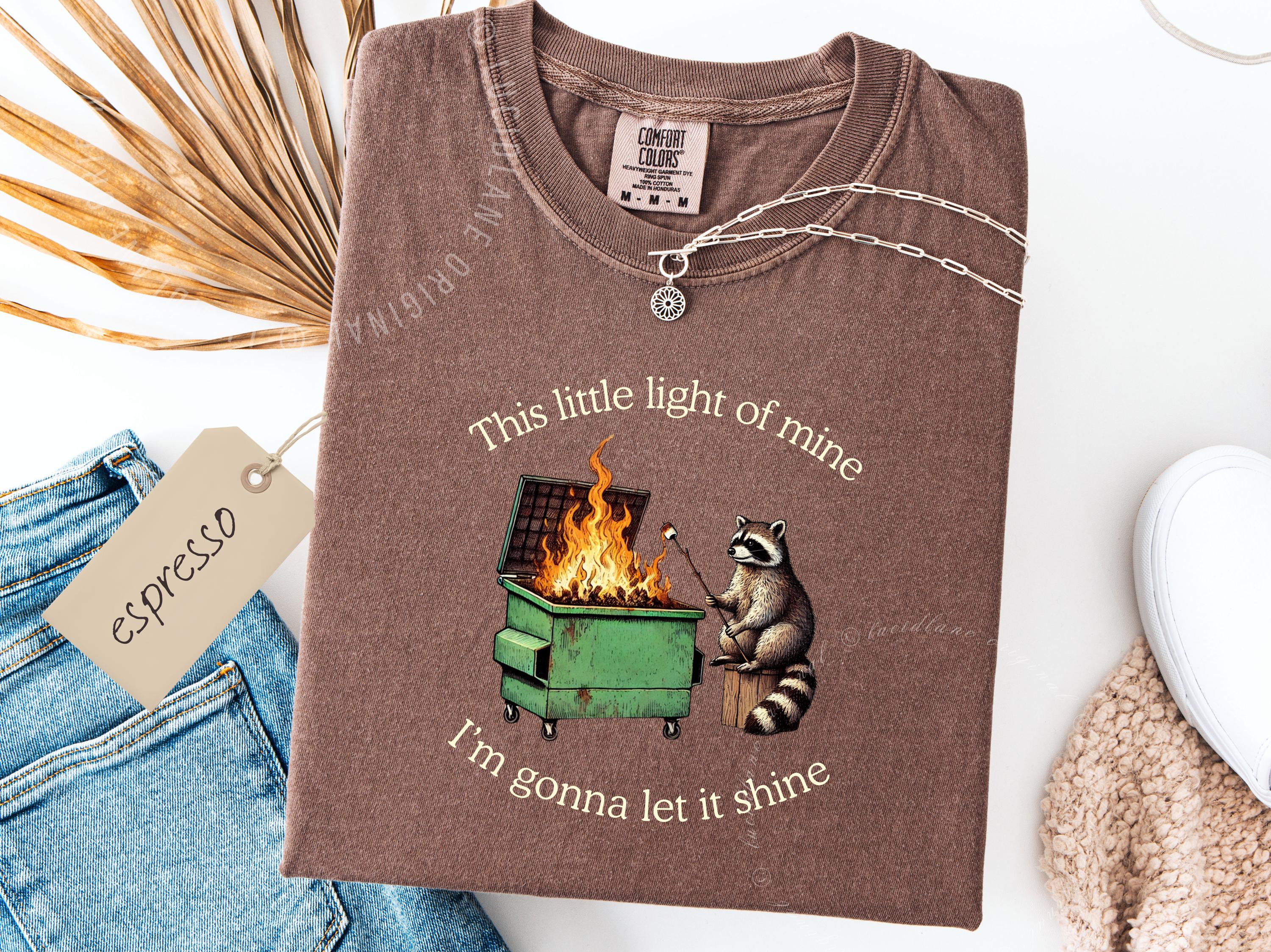 Comfort Colors® 1717 Unisex Garment-Dyed Funny Parody Shirt: Dumpster Fire Raccoon Tee, Mental Health Gift, SwiftPOD, Perfect for Casual Wear