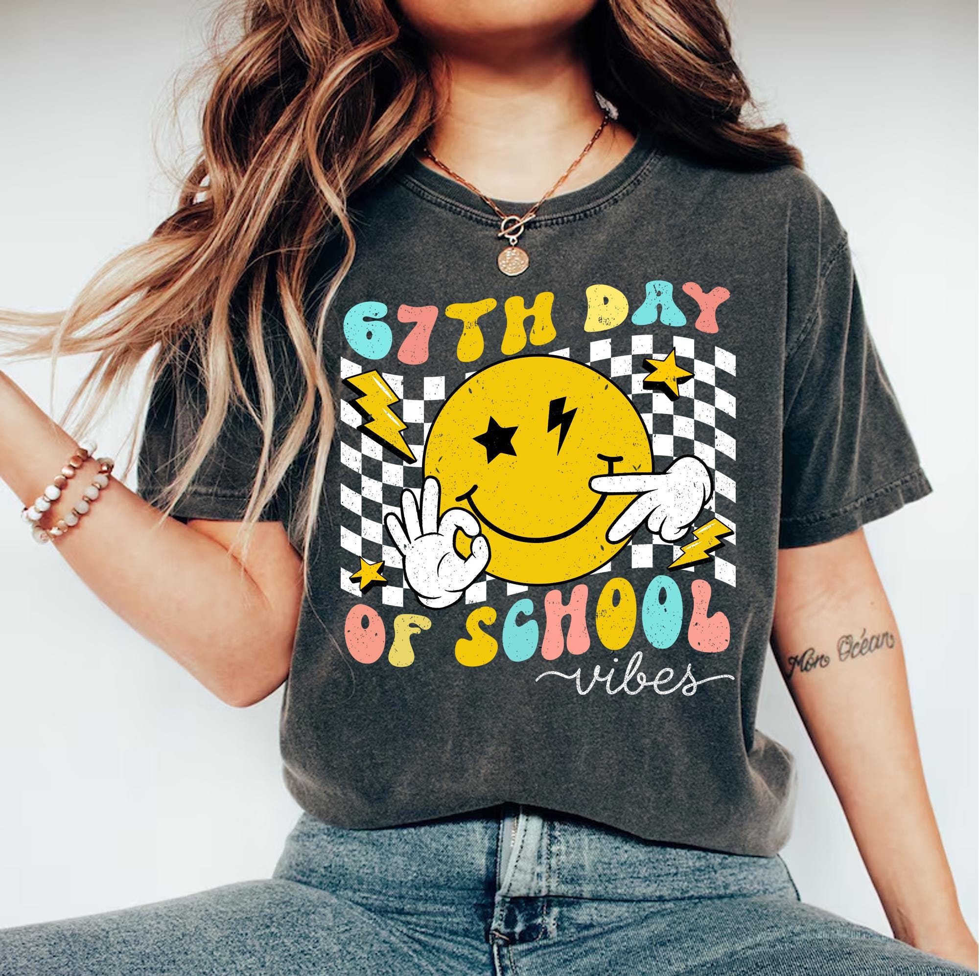 Comfort Colors® 1717 Unisex Garment-Dyed T-shirt - 67 Days of School Vibes Smile Meme - Funny Teacher Student Shirt - Perfect Gift for Men and Women - Casual Outfit for Fall and Spring