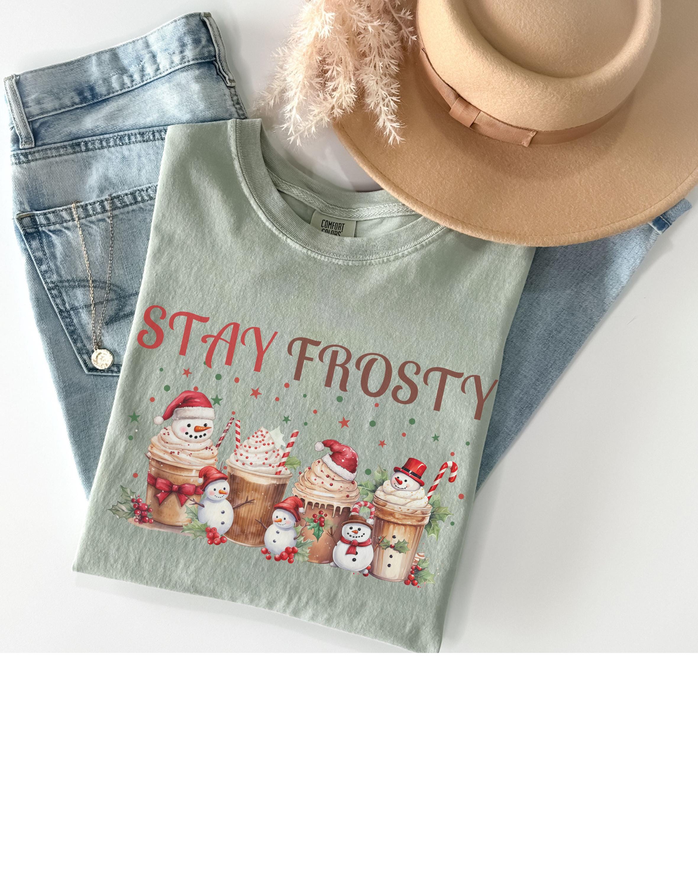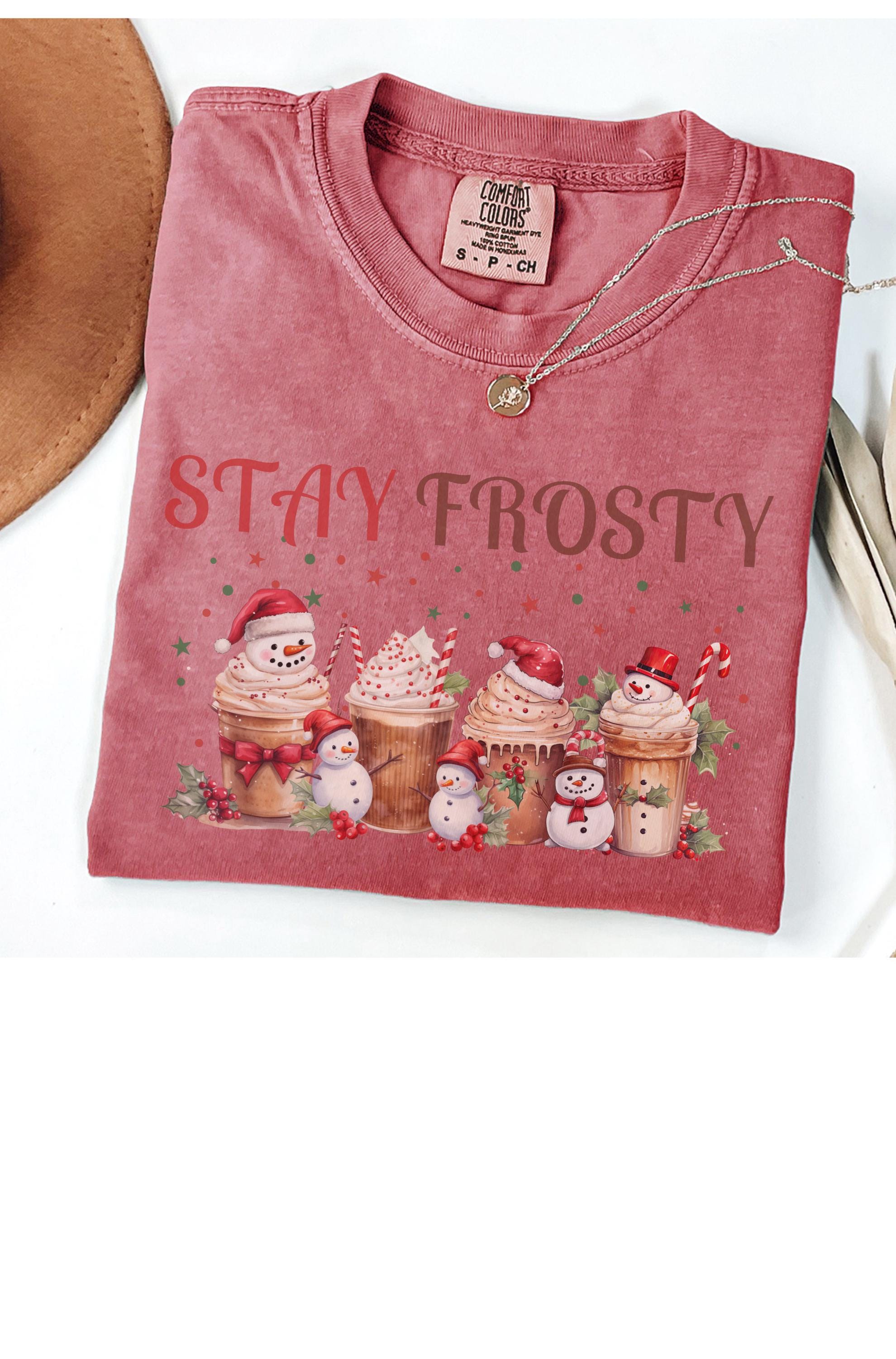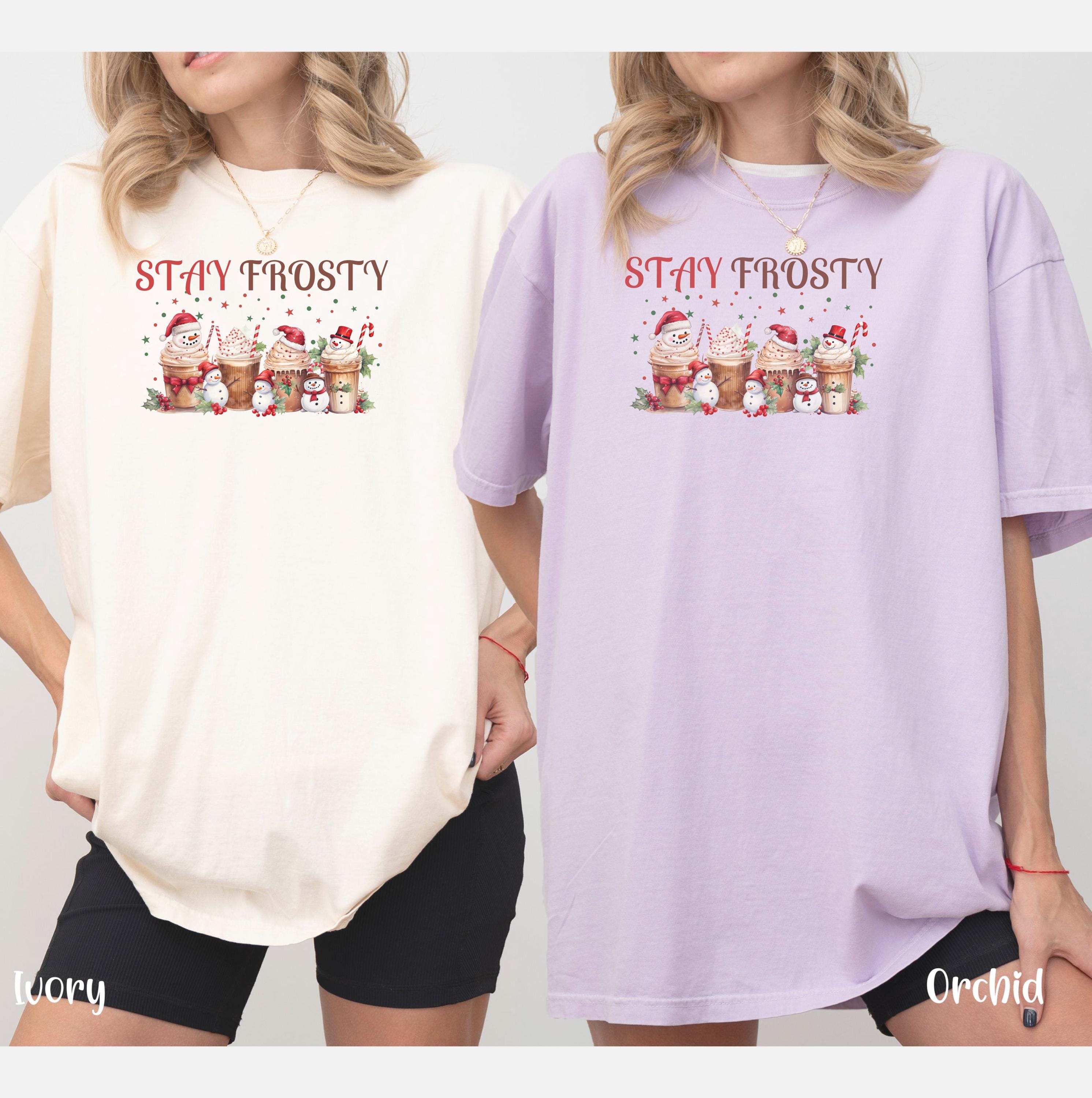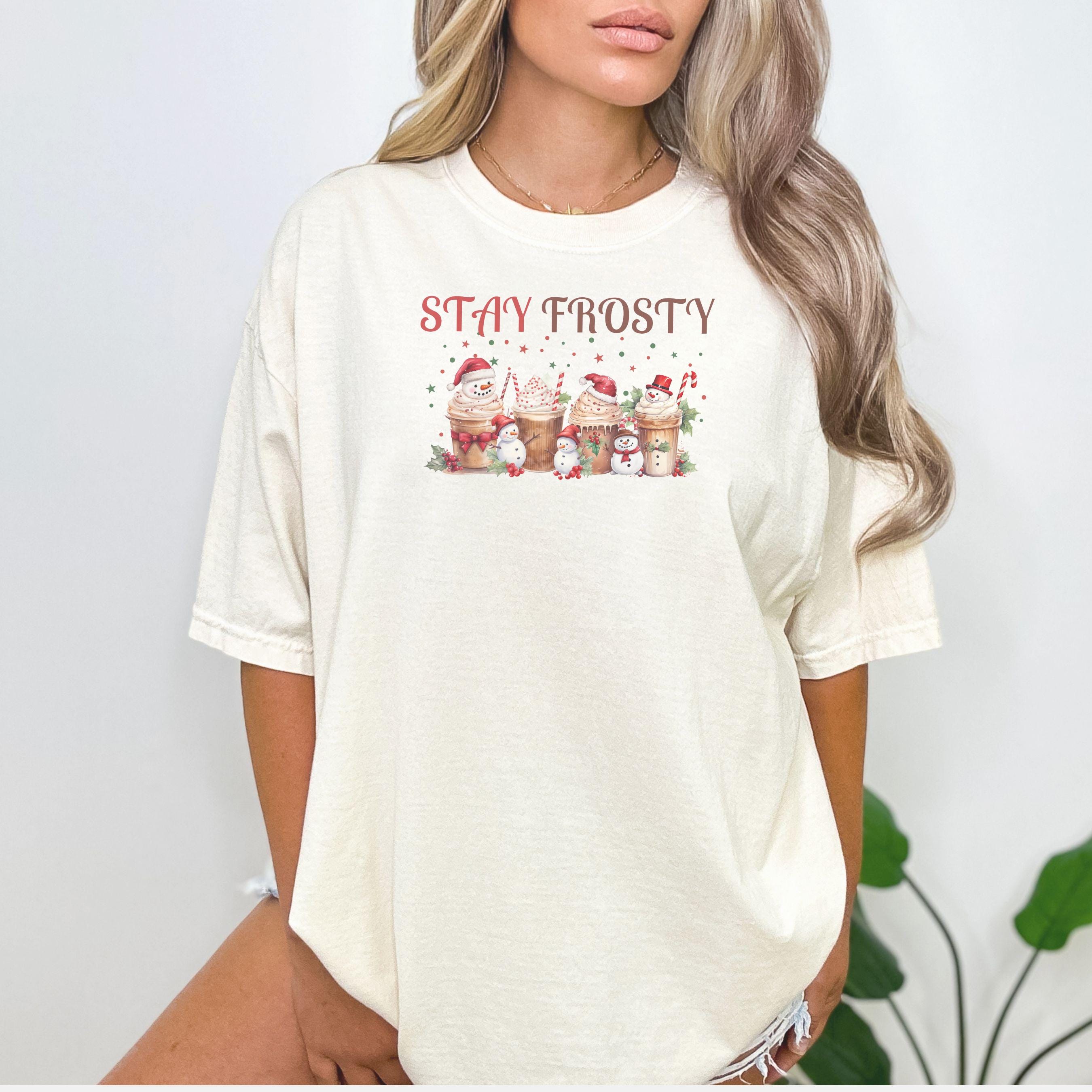Comfort Colors® 1717 Unisex Garment-Dyed T-shirt, Iced Coffee Christmas Shirt, Stay Frosty Snowman Tee, Holiday Coffee Outfit for Women and Men, Perfect Xmas Gift, Cozy Winter Aesthetic