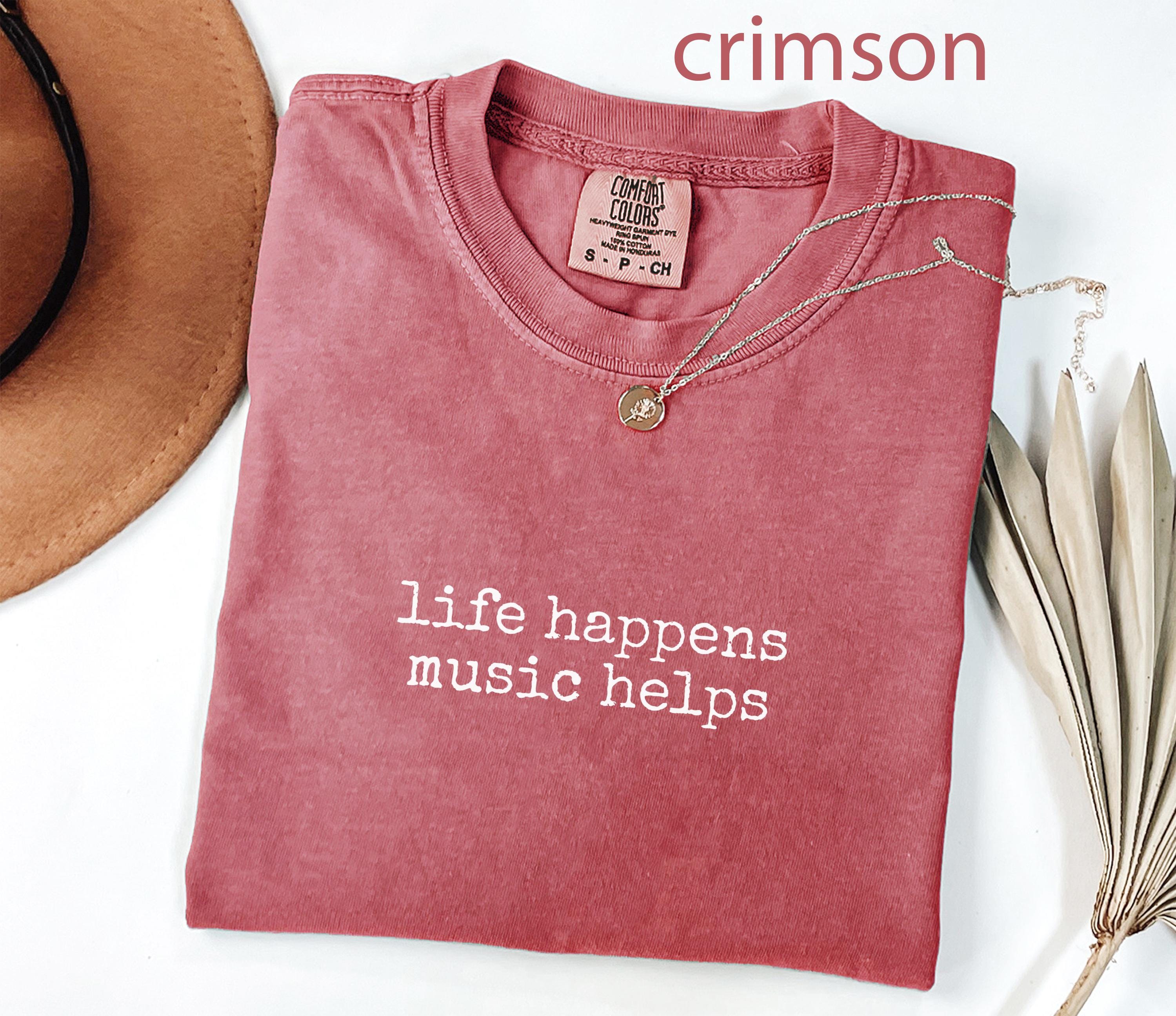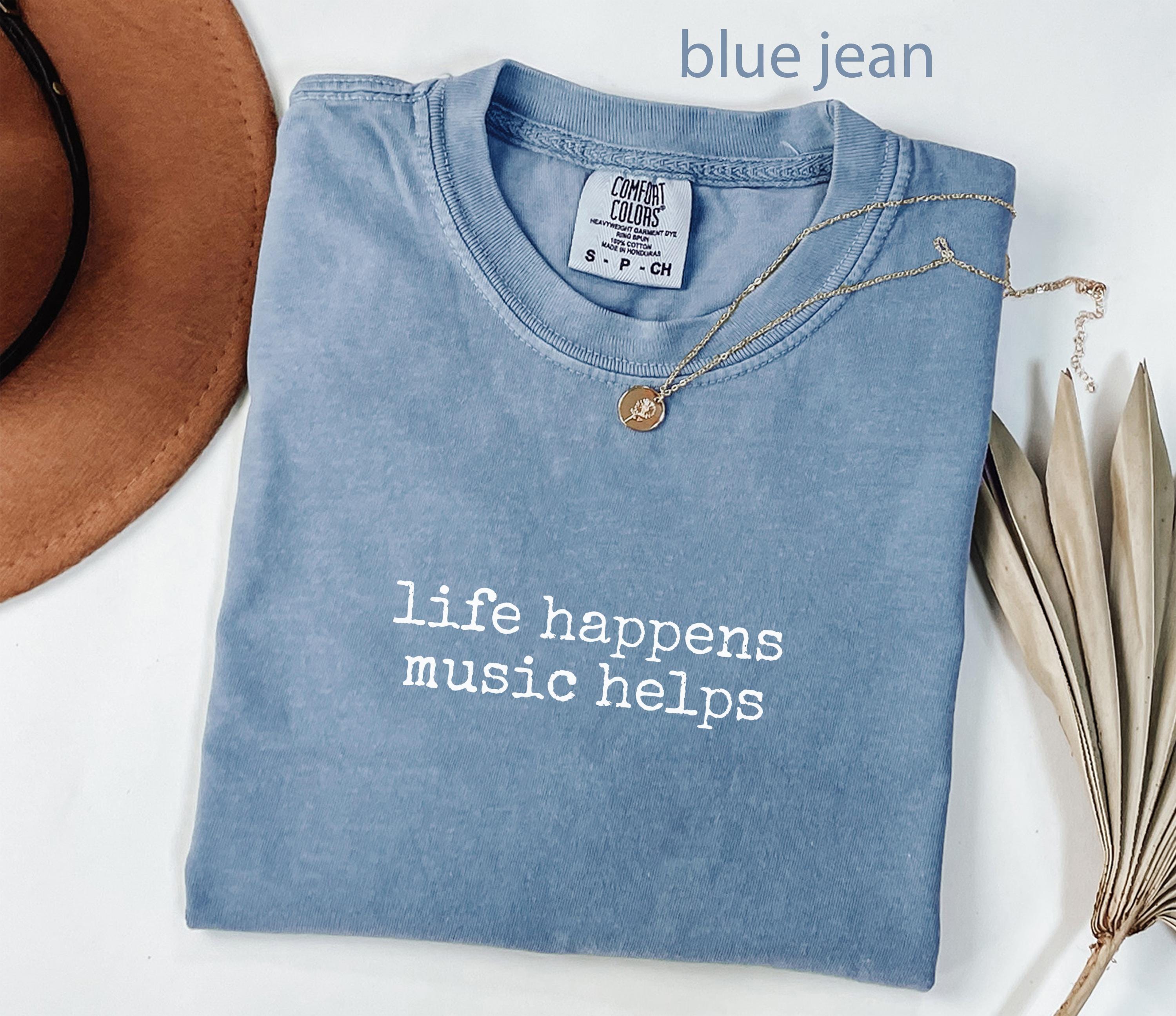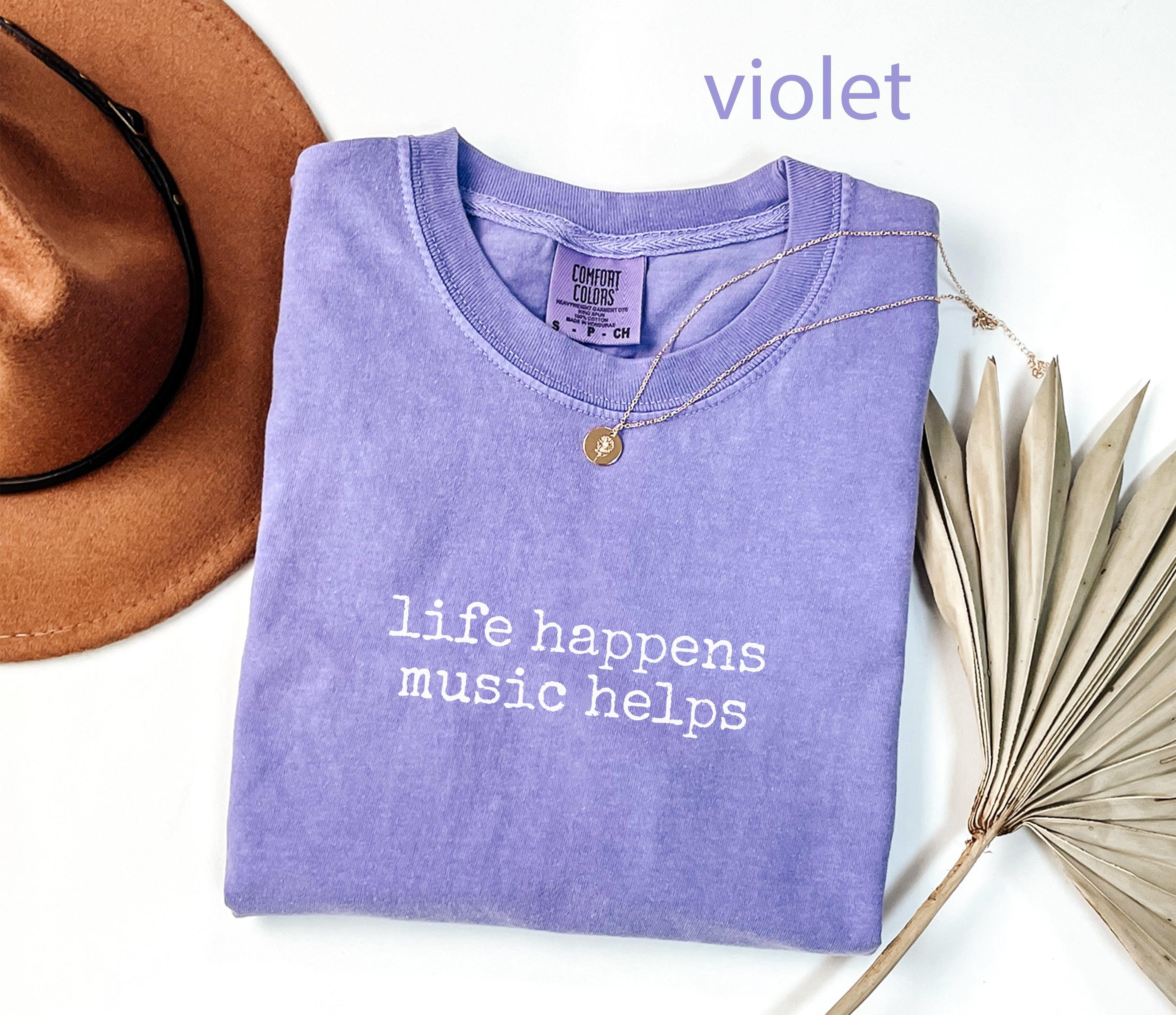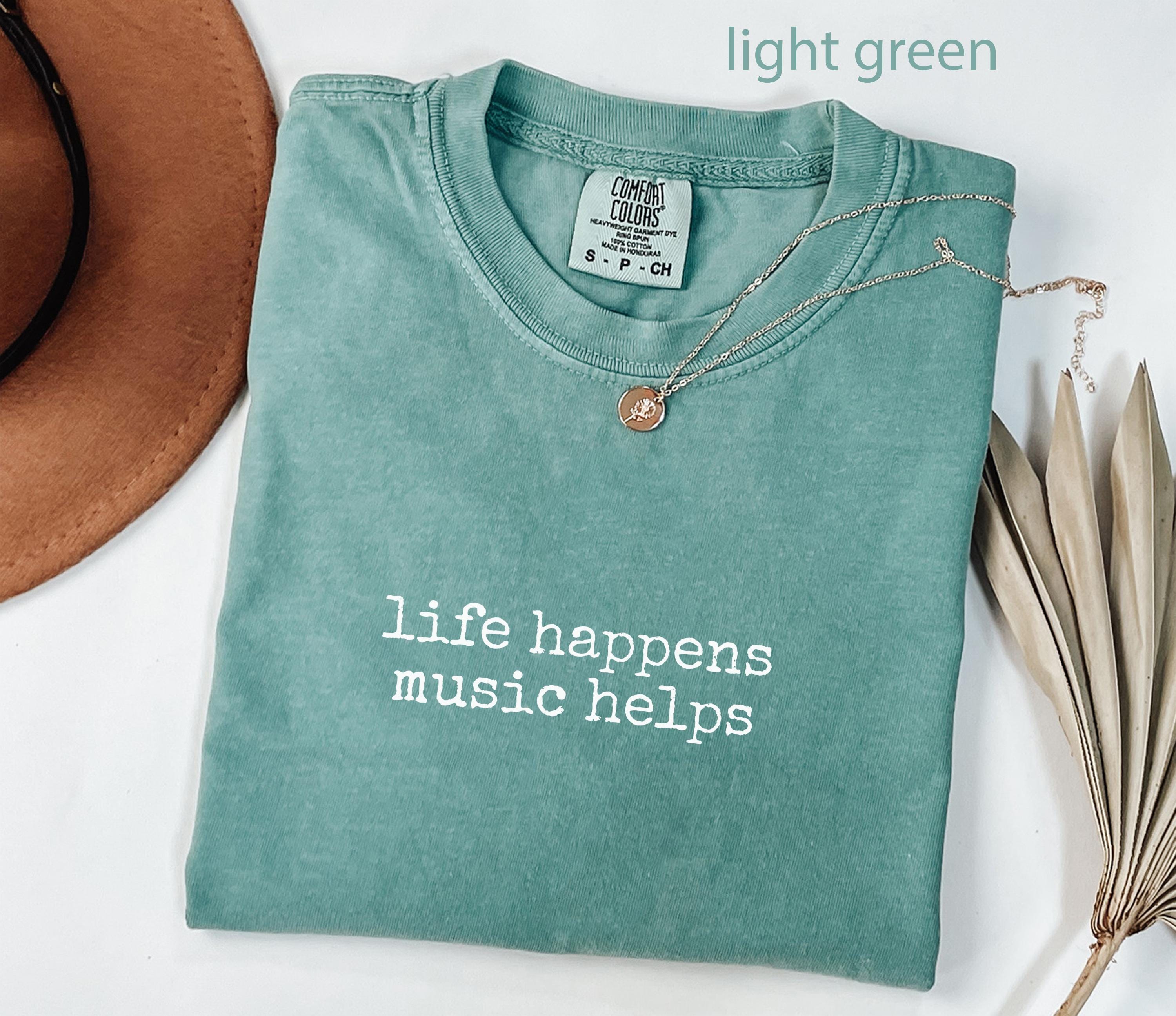 Comfort Colors® 1717 Unisex Music Lover Shirt, Life Happens Music Helps Tee, Perfect Gift for Musicians, Aesthetic Band T-Shirt for All Seasons