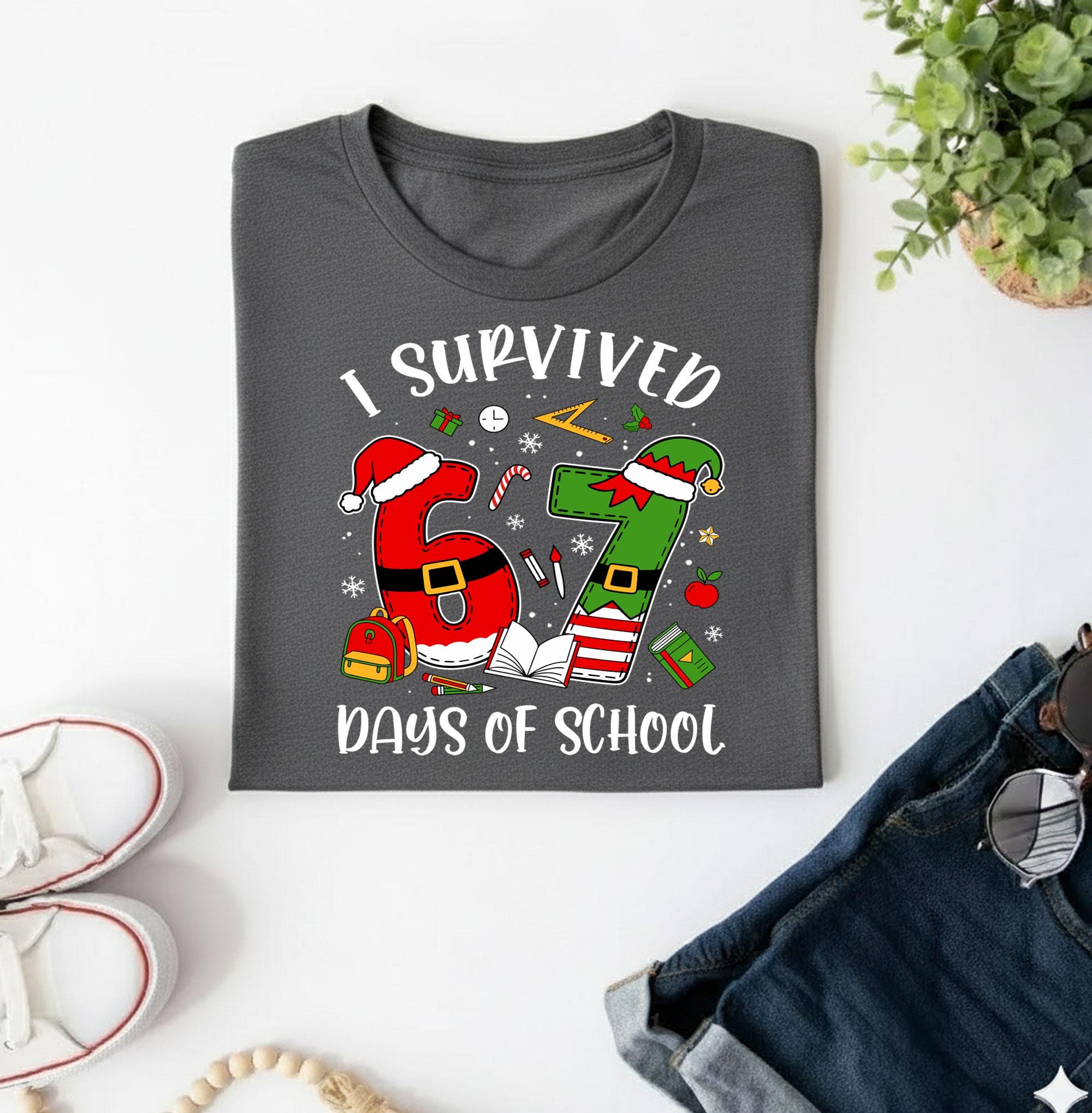 Comfort Colors® I Survived 67 Days Shirt, Gildan 18000 Crewneck, Teacher Gift, Cozy Unisex Sweatshirt, Christmas Aesthetic, Printify Choice