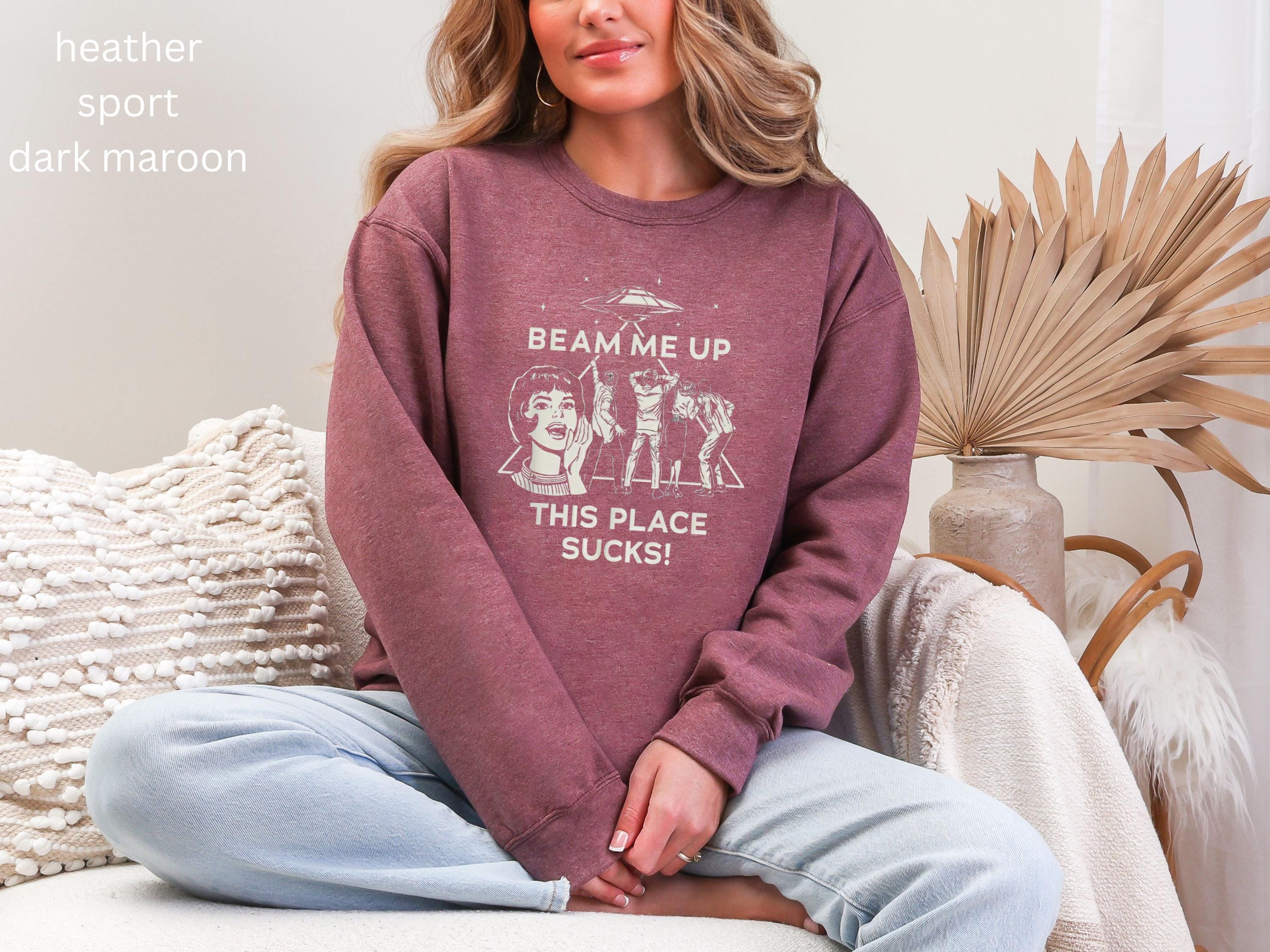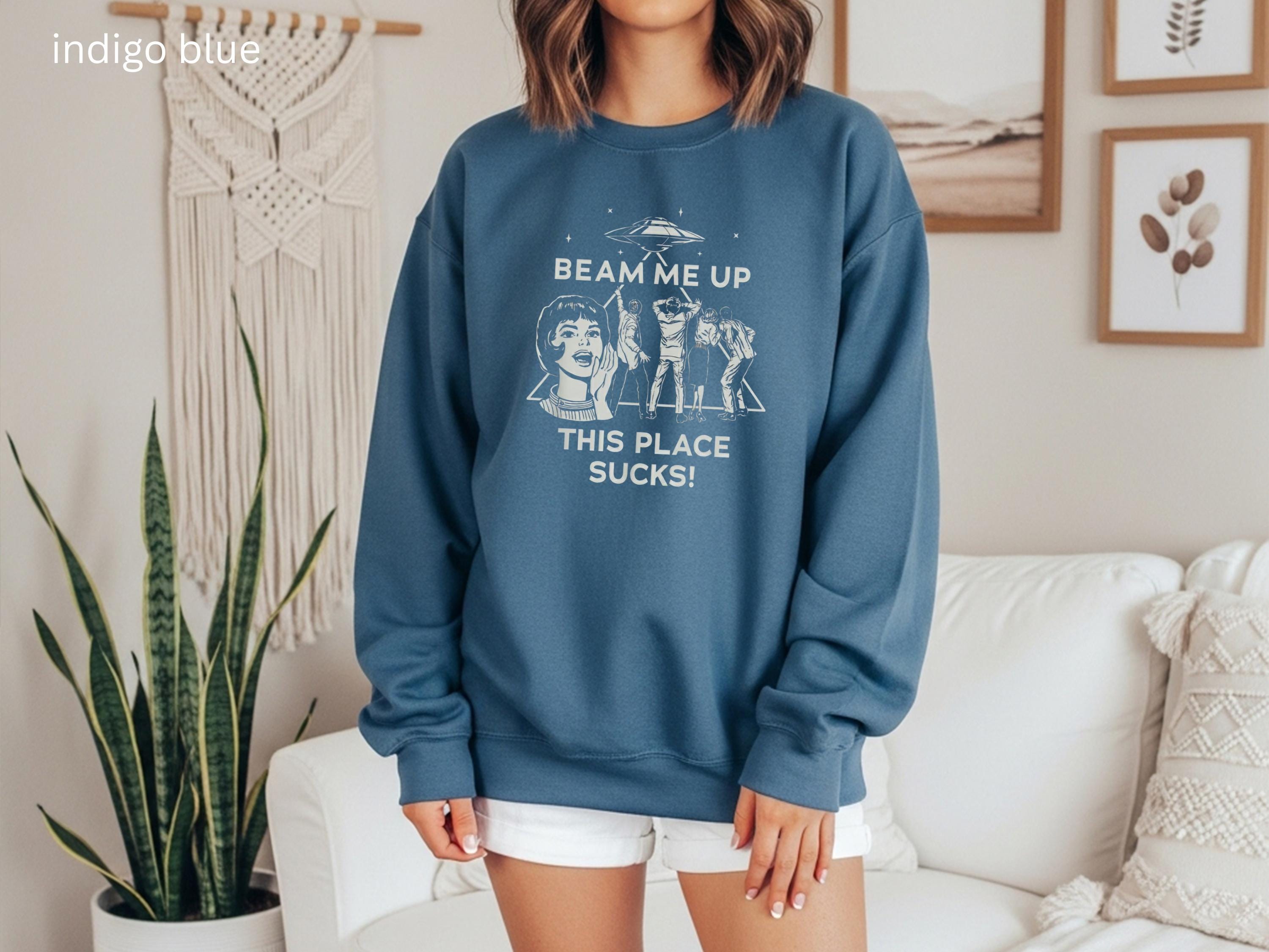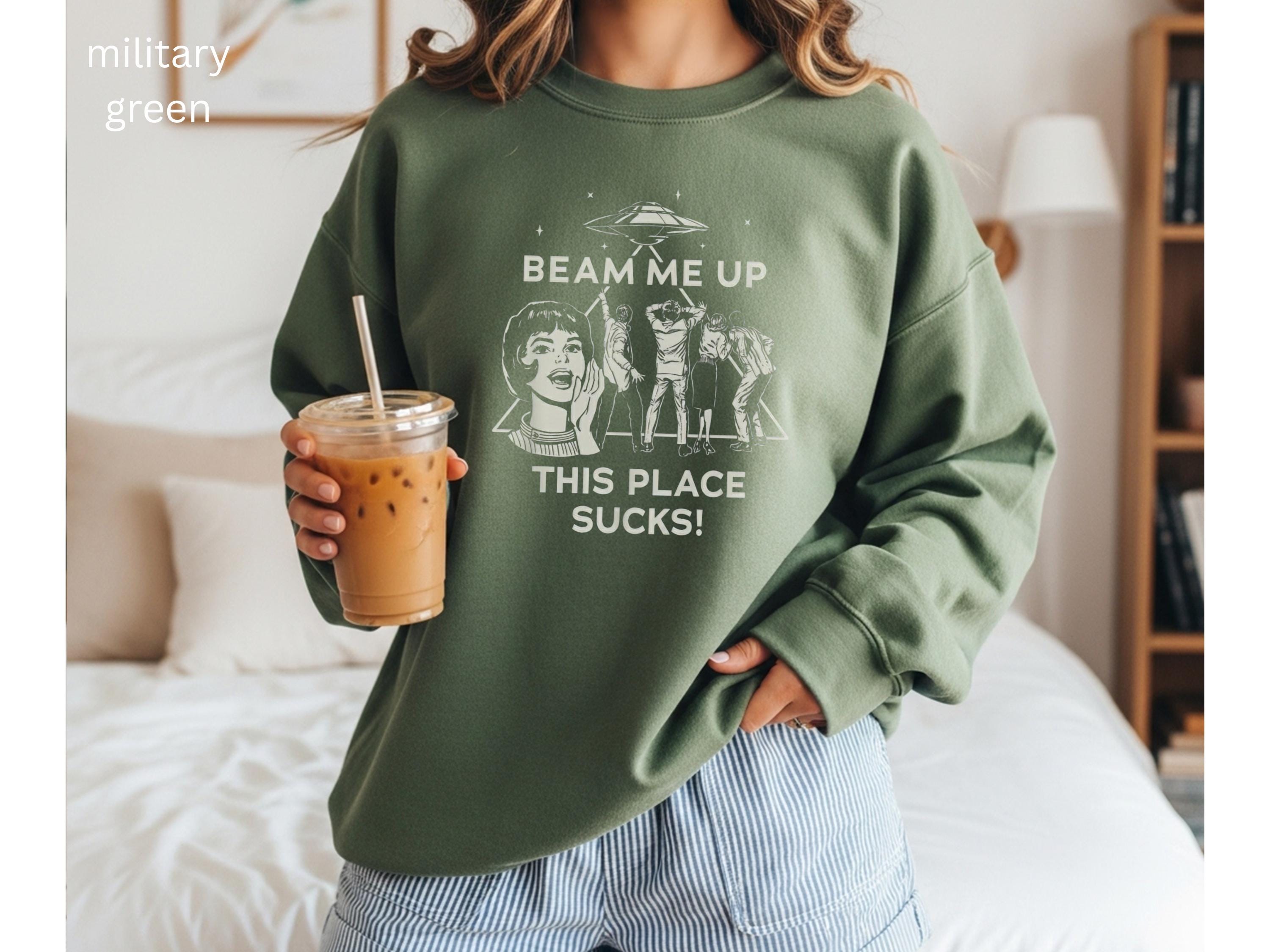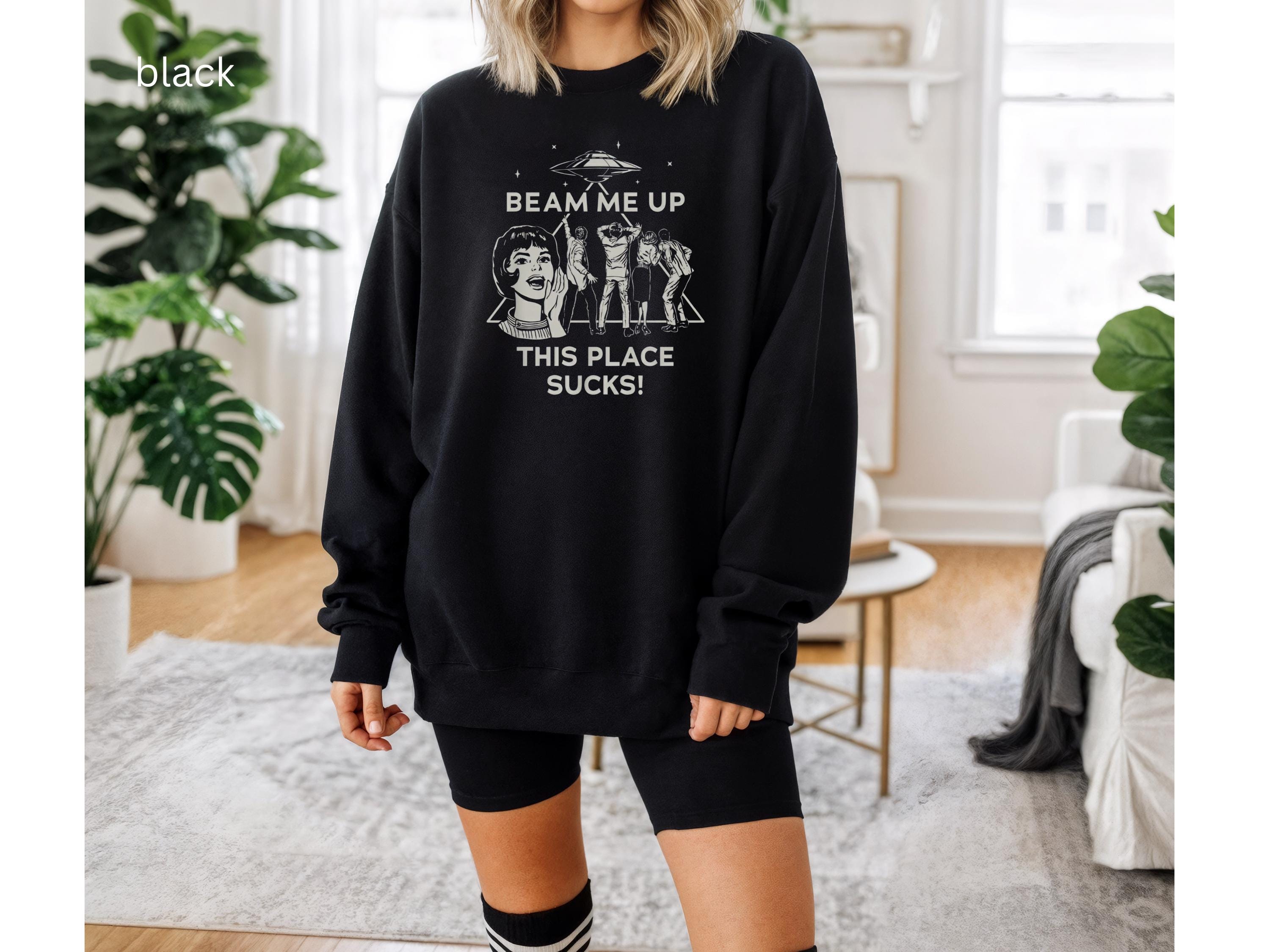 Cozy Alien Abduction Graphic Sweatshirt Gildan 18000 Unisex Crewneck Perfect Gift for Women & Men Viral Aesthetic Outfit