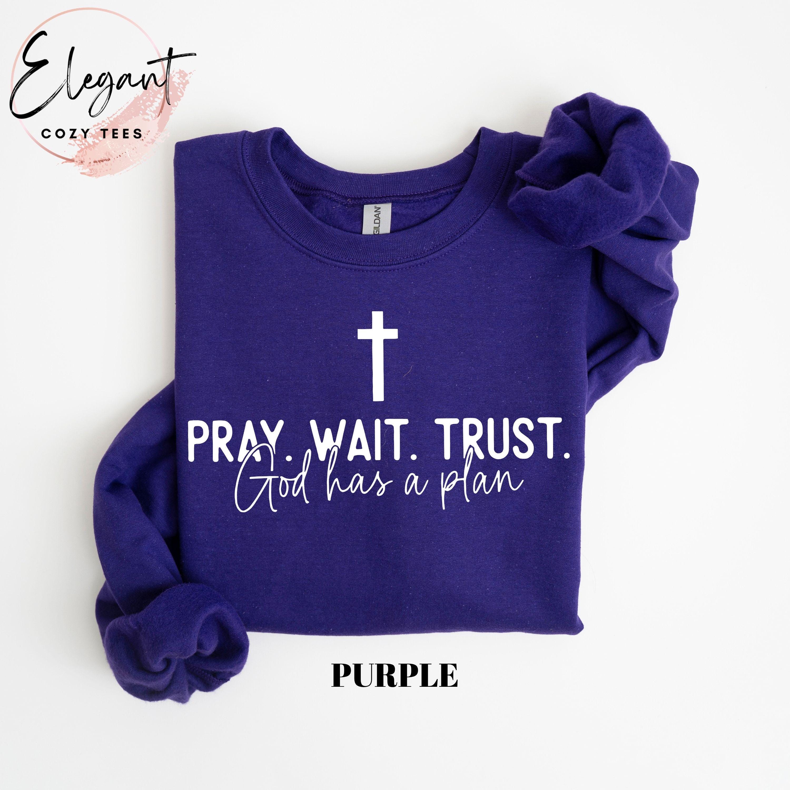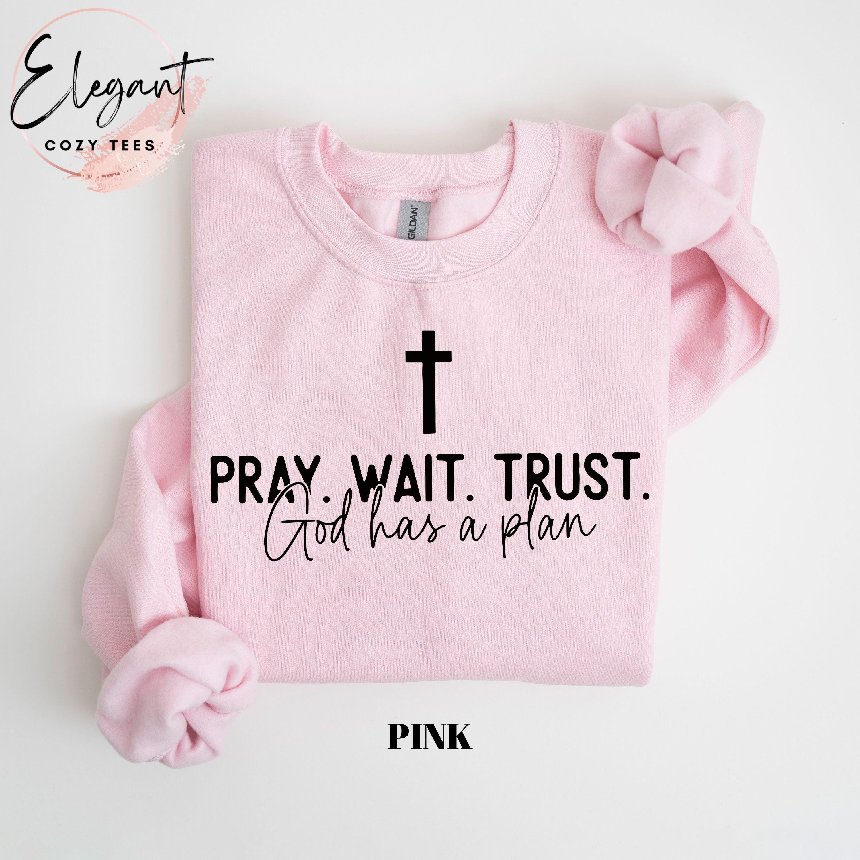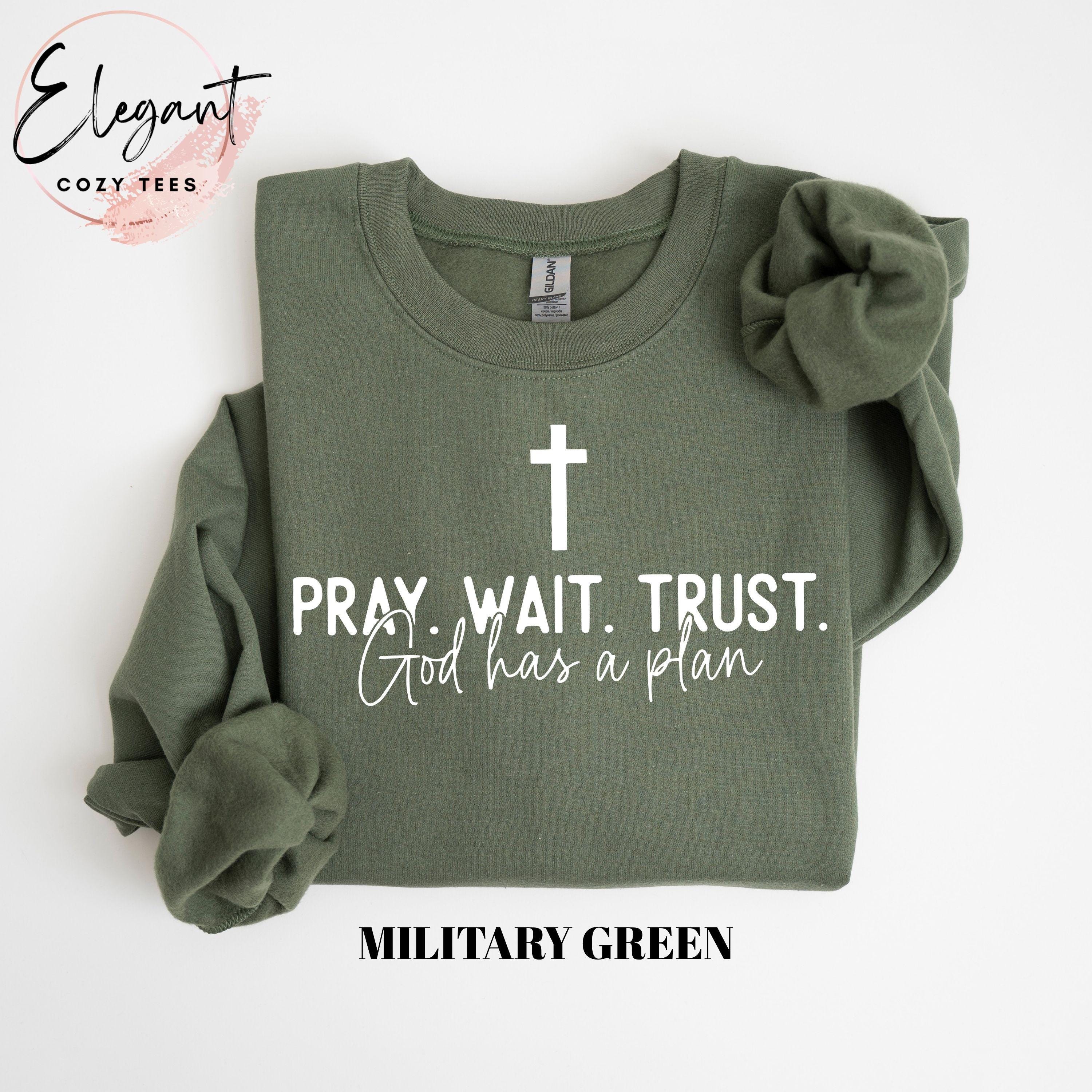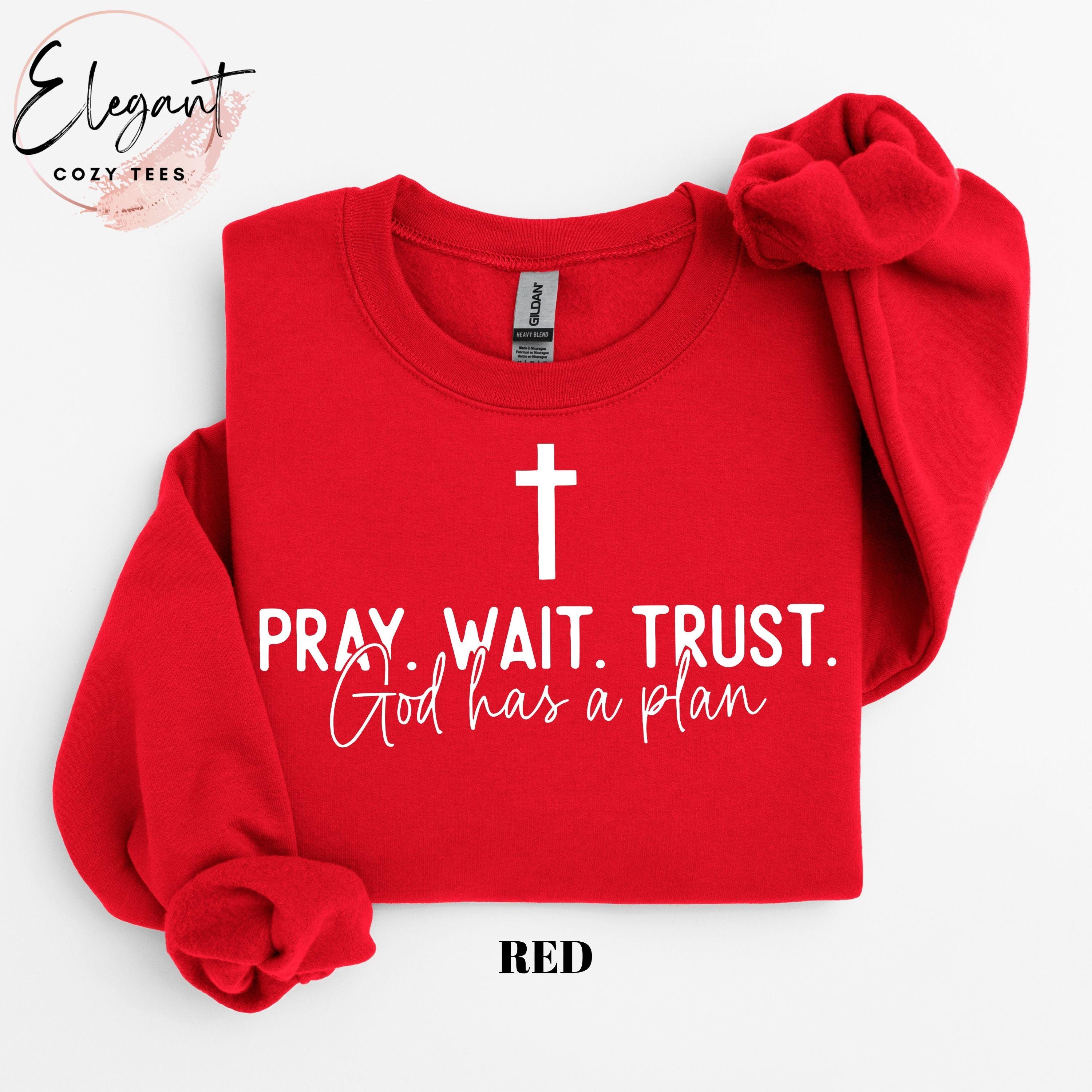 Cozy Gildan 18000 Sweatshirt for Women - Pray Wait Trust God Design, Perfect Christian Gift, Thanksgiving Aesthetic, Durable Unisex Fit, Printify Choice, God Is Good Religious Outfit