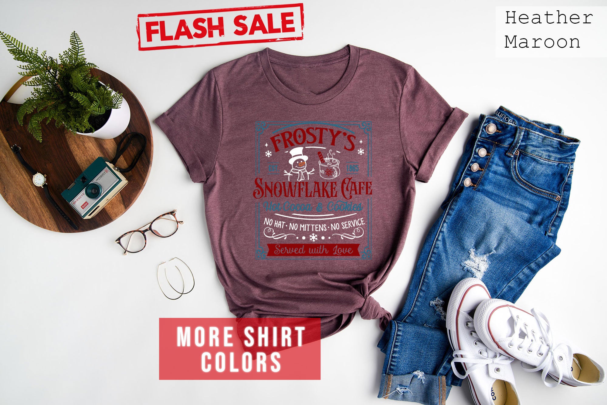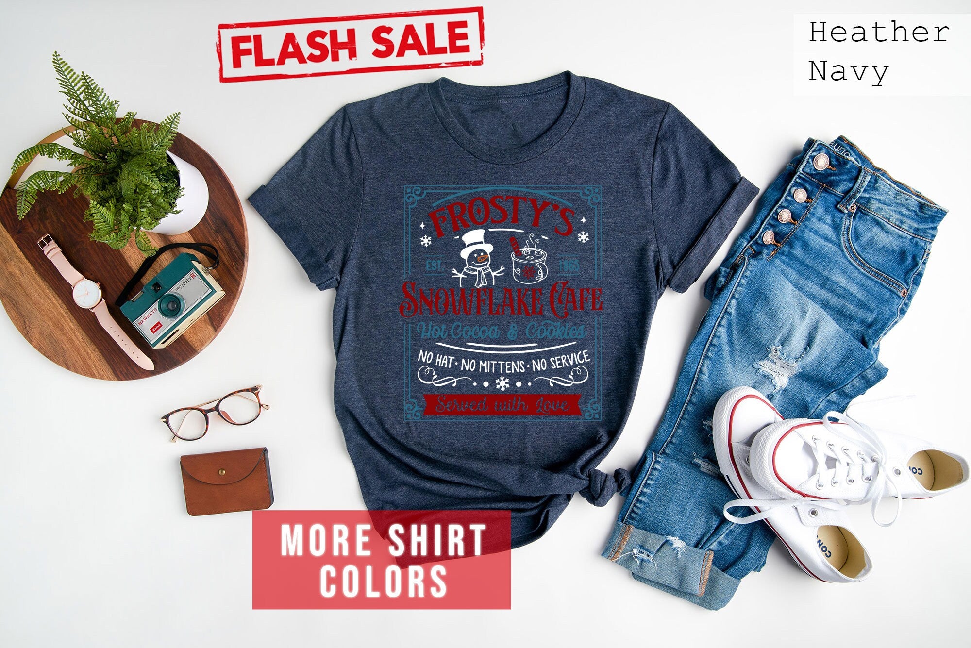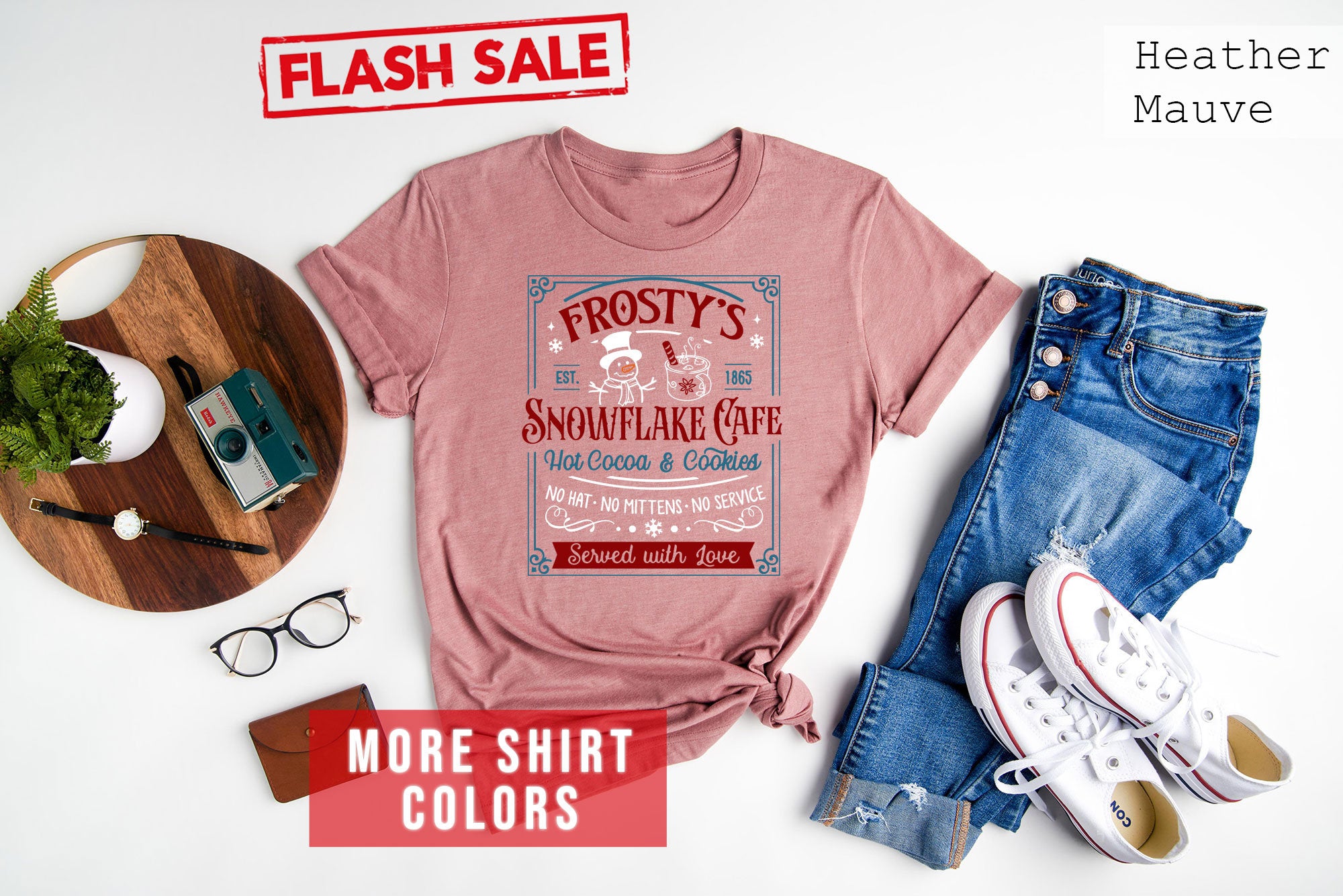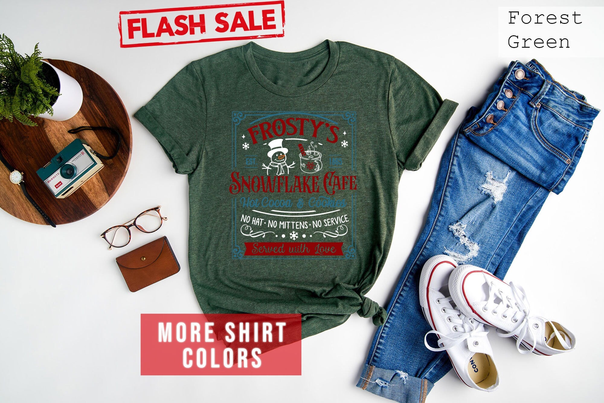 Frosty's Snowflake Cafe Christmas T-Shirt for Women & Men, Unisex Heavy Cotton Tee by Gildan 5000, Perfect Holiday Gift with Christmas Vibes, Hot Cocoa & Cookies Design, Printify Choice, Cozy Noel Outfit, Served With Love Christmas Spirit Tee