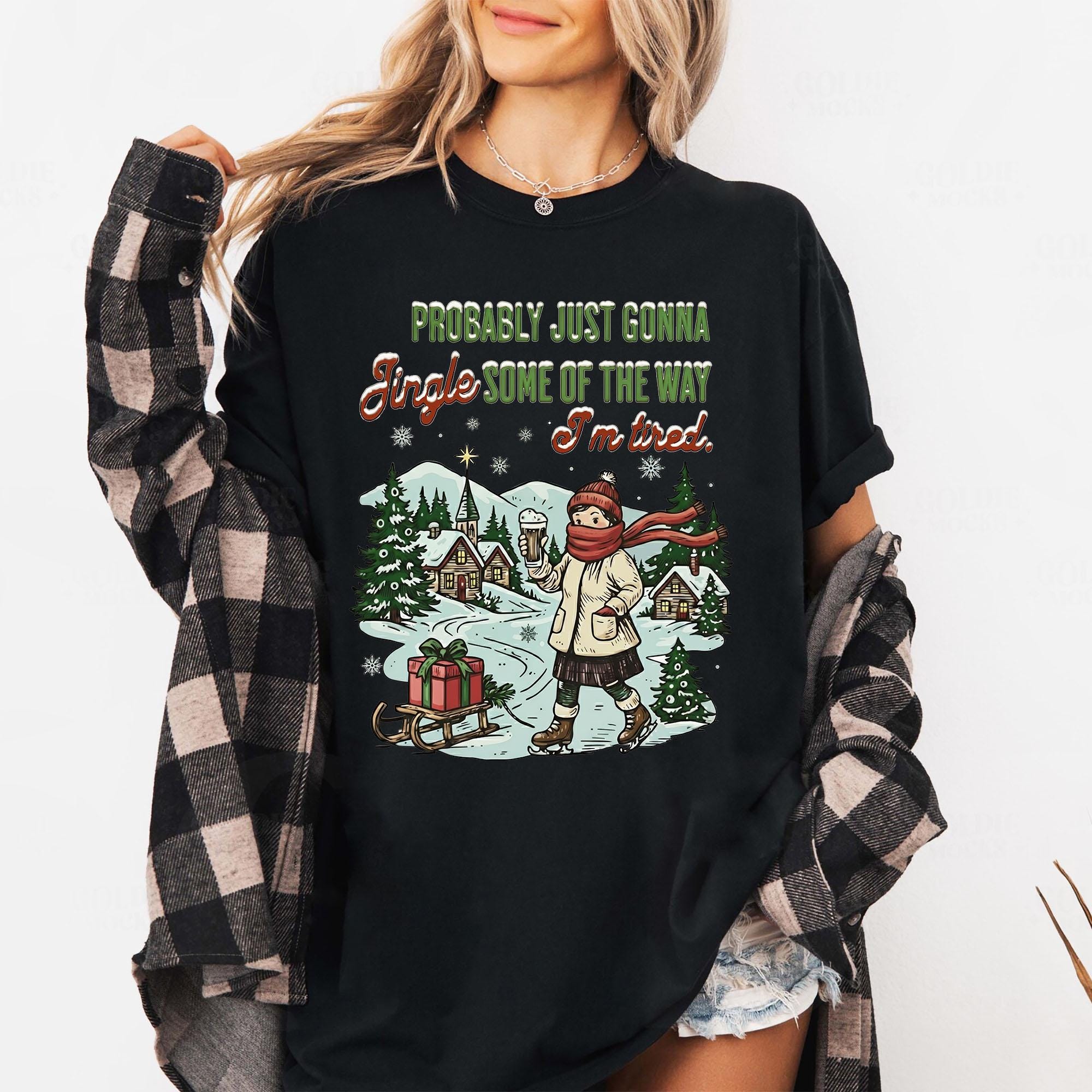 Funny Christmas Shirt for Women & Men: Probably Just Gonna Jingle Some Of The Way I'm Tired Tee - Comfort Colors® 1717 Unisex Garment-Dyed T-shirt, Perfect Holiday Gift, Cozy & Aesthetic Winter Outfit