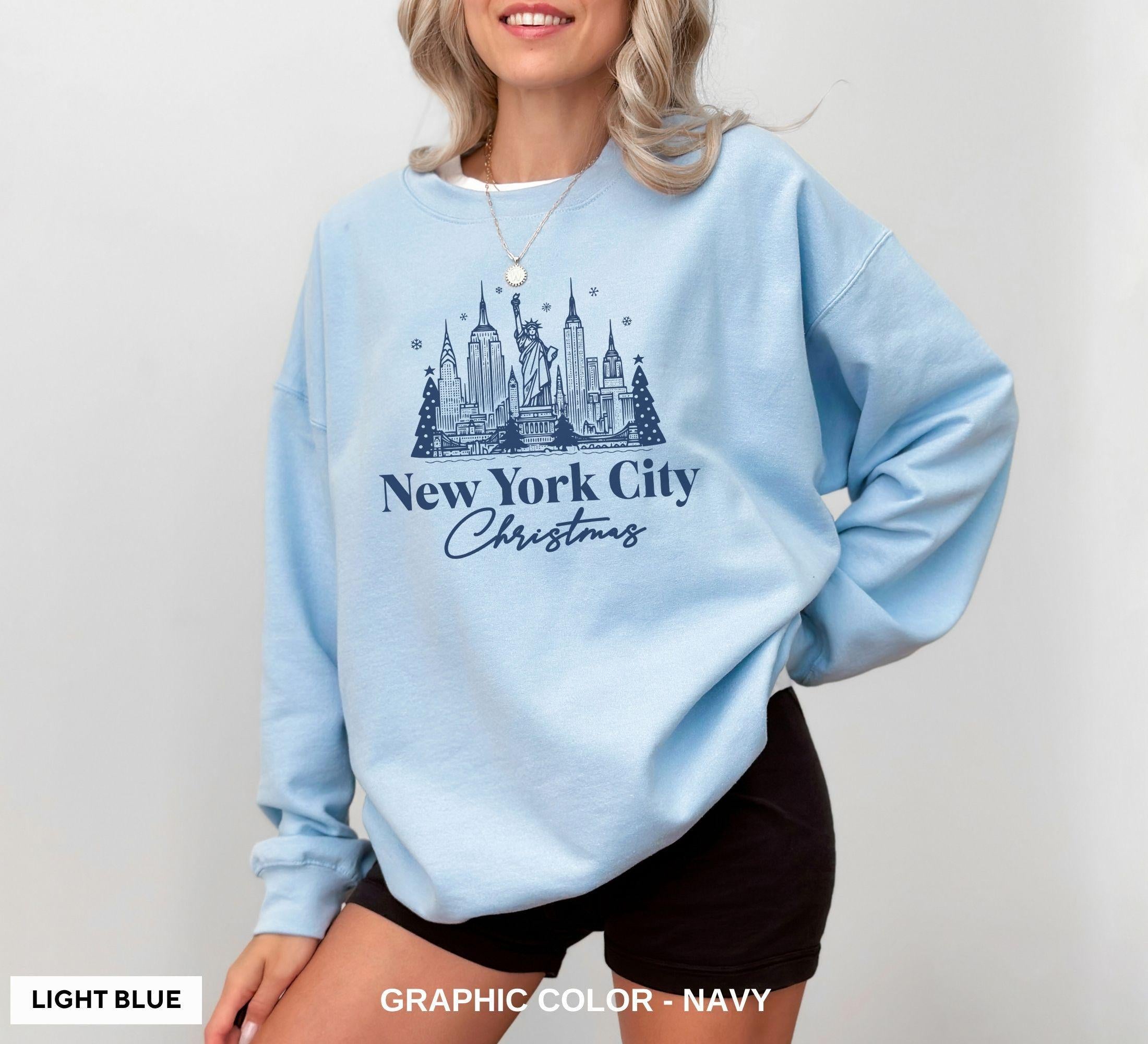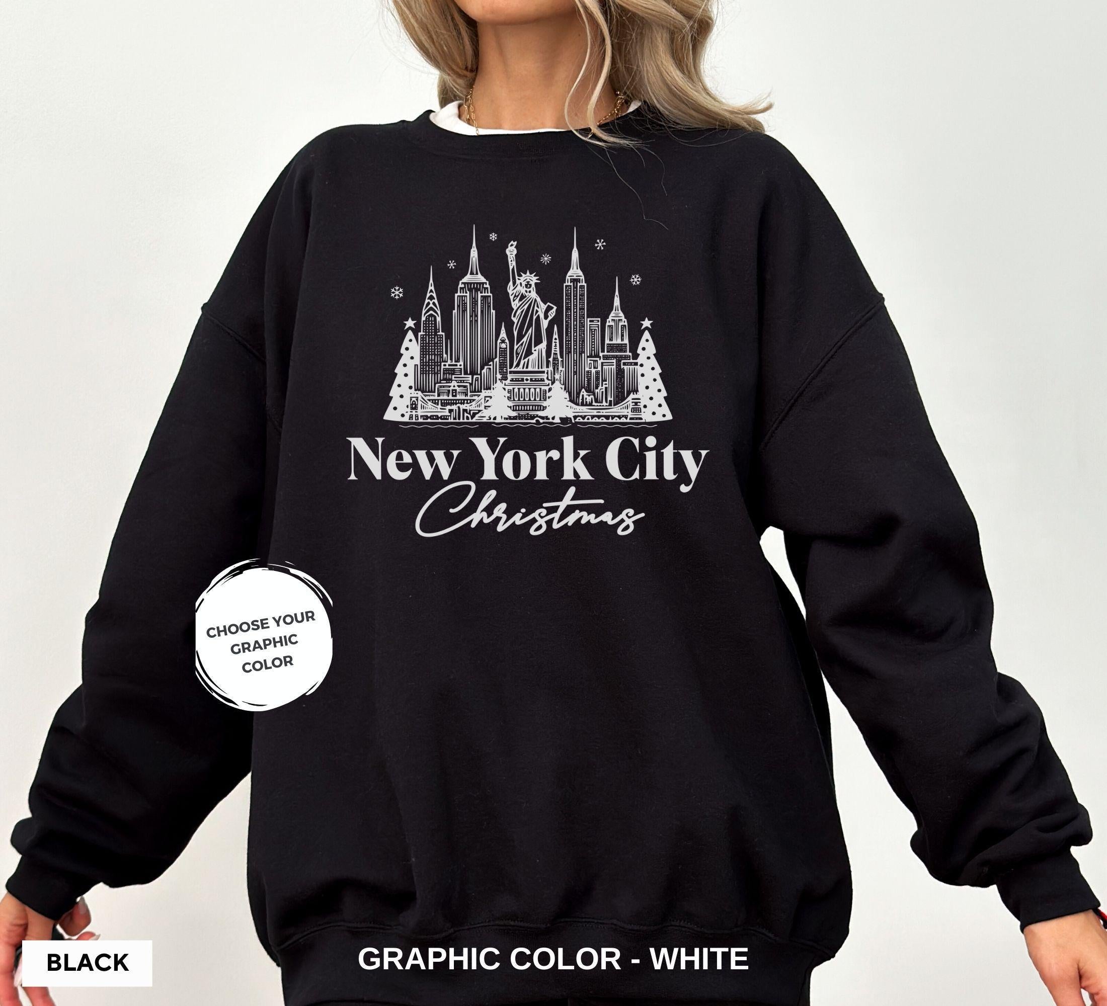 Gildan 18000 Christmas in NYC Sweatshirt - New York City Skyline Crewneck for Women, Men & Couples Printify Choice Holiday Gift Pullover Perfect New York Vacation Outfit Xmas in the City Aesthetic