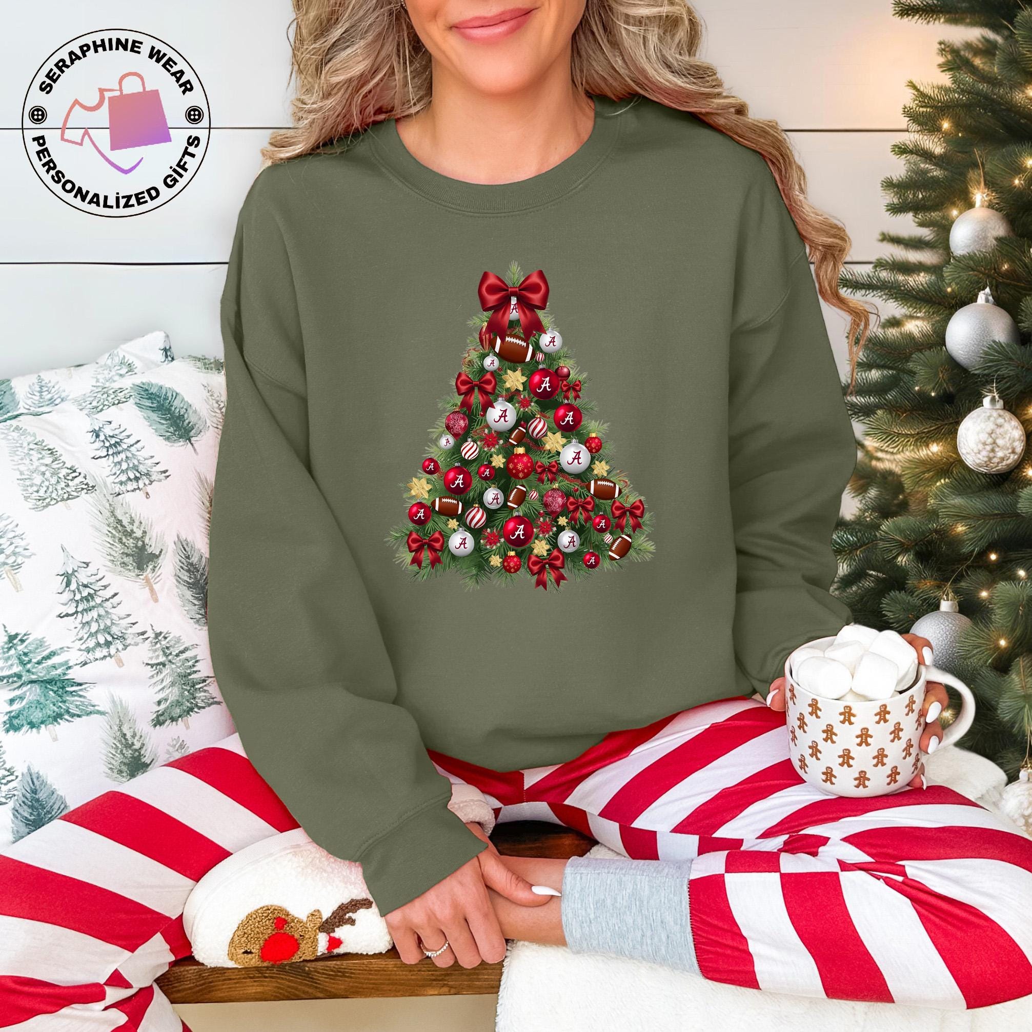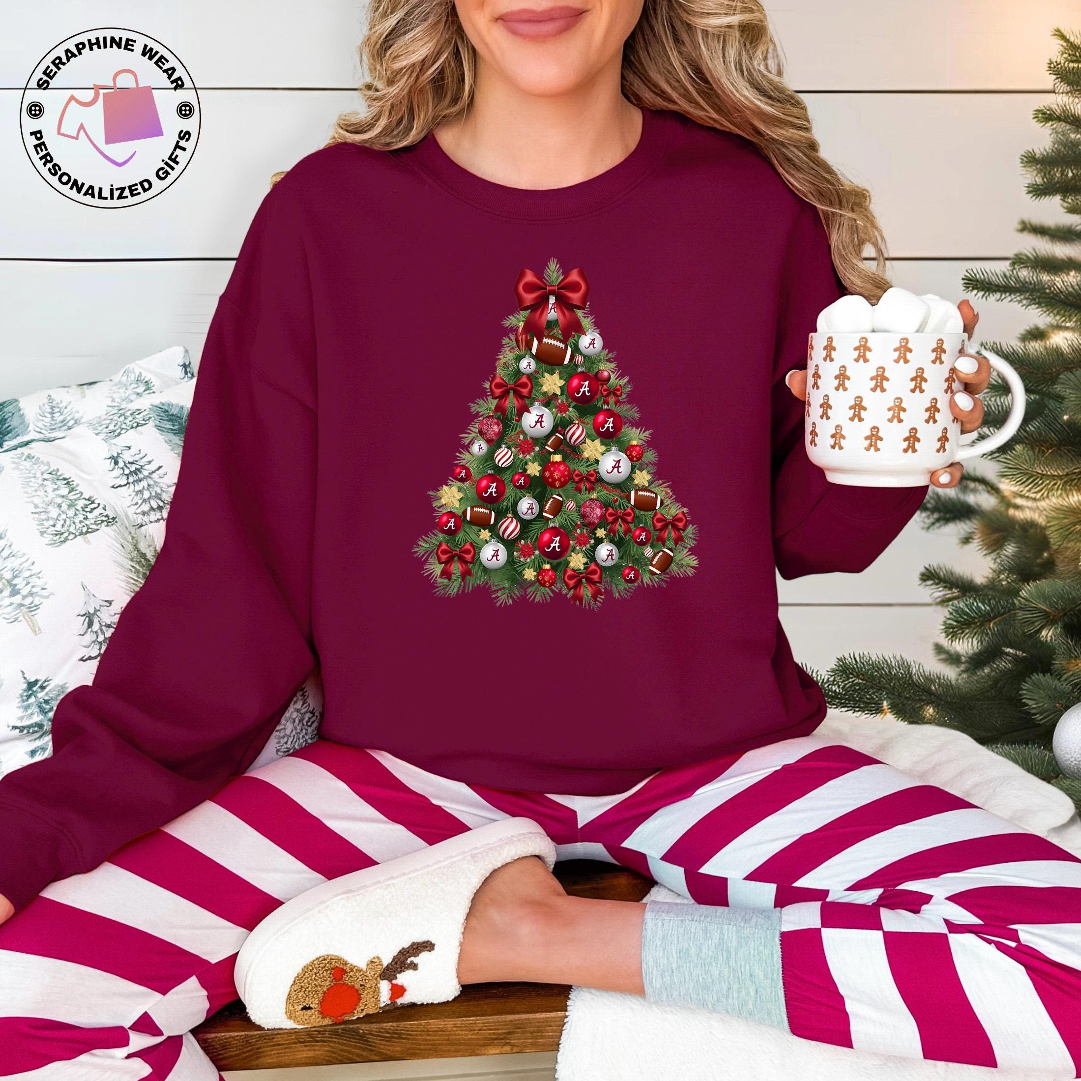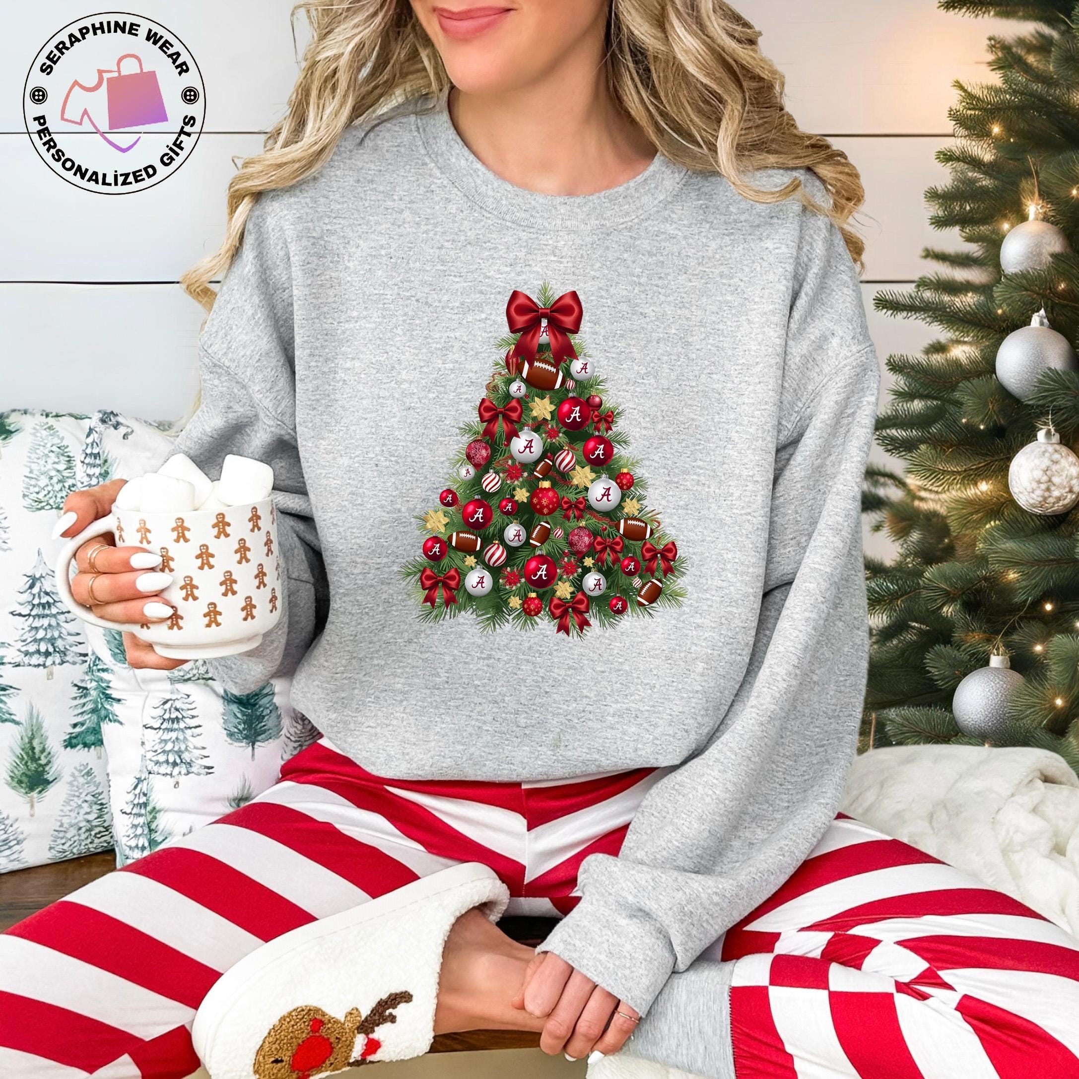 Gildan 18000 Coquette Christmas Tree Sweatshirt, Printify Choice Crimson Game Day Sweater, Sports Mom Holiday Gift, Aesthetic Bama Football Shirt for Women, Cozy Unisex Outfit for Winter