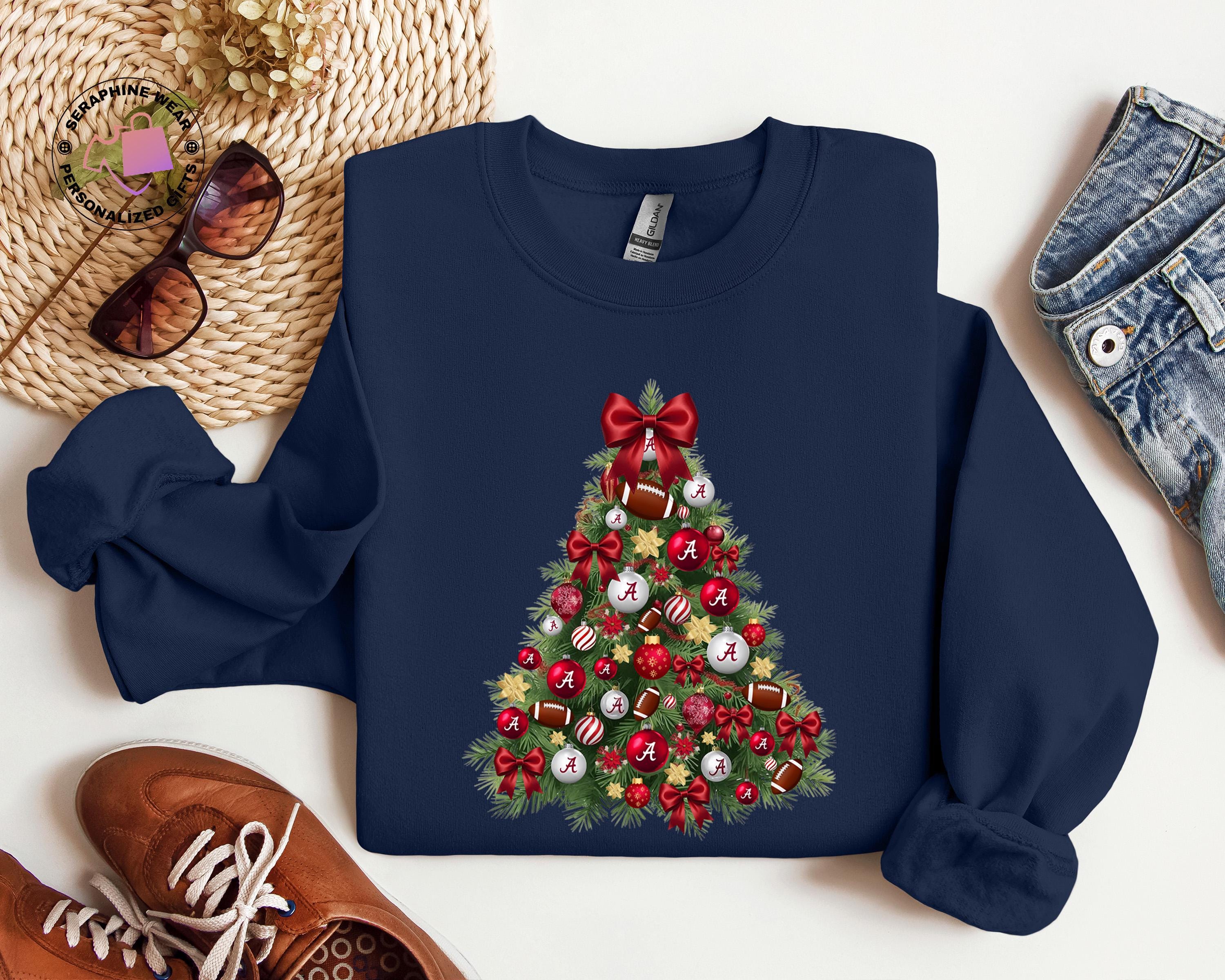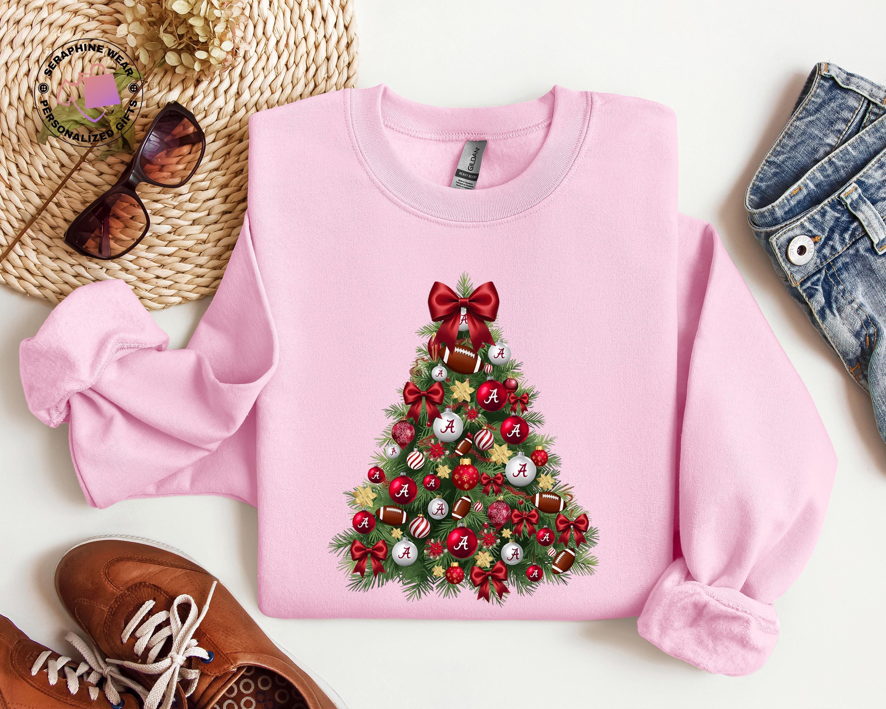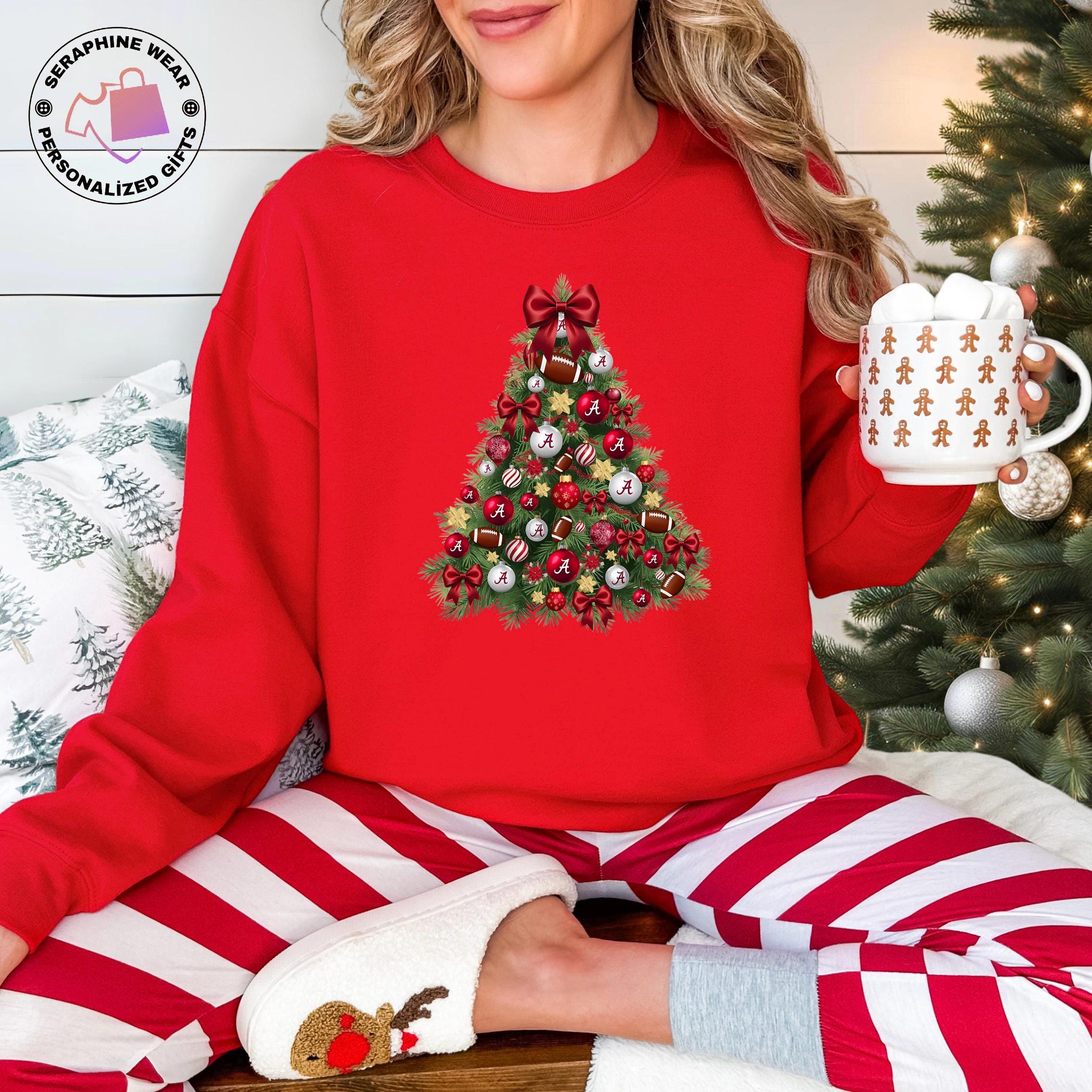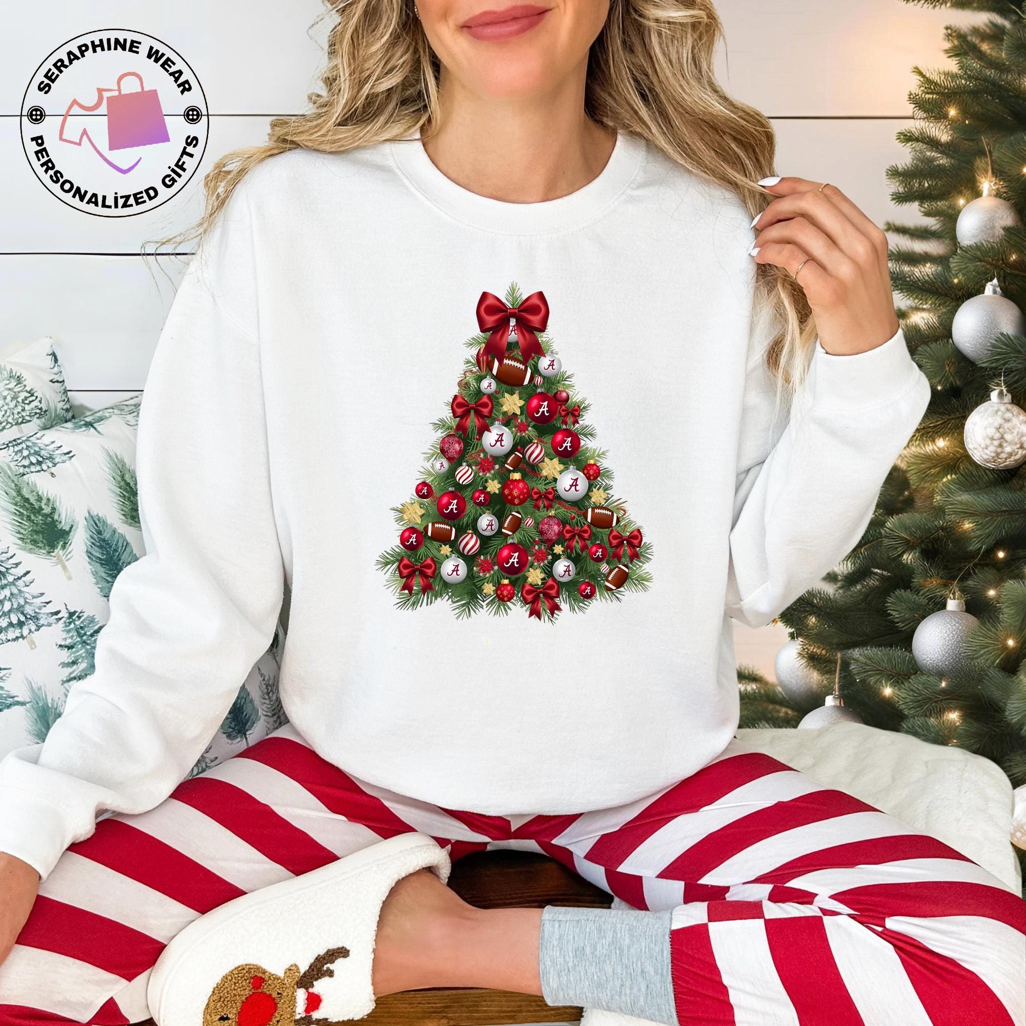 Gildan 18000 Coquette Christmas Tree Sweatshirt, Printify Choice Crimson Game Day Sweater, Sports Mom Holiday Gift, Aesthetic Bama Football Shirt for Women, Cozy Unisex Outfit for Winter