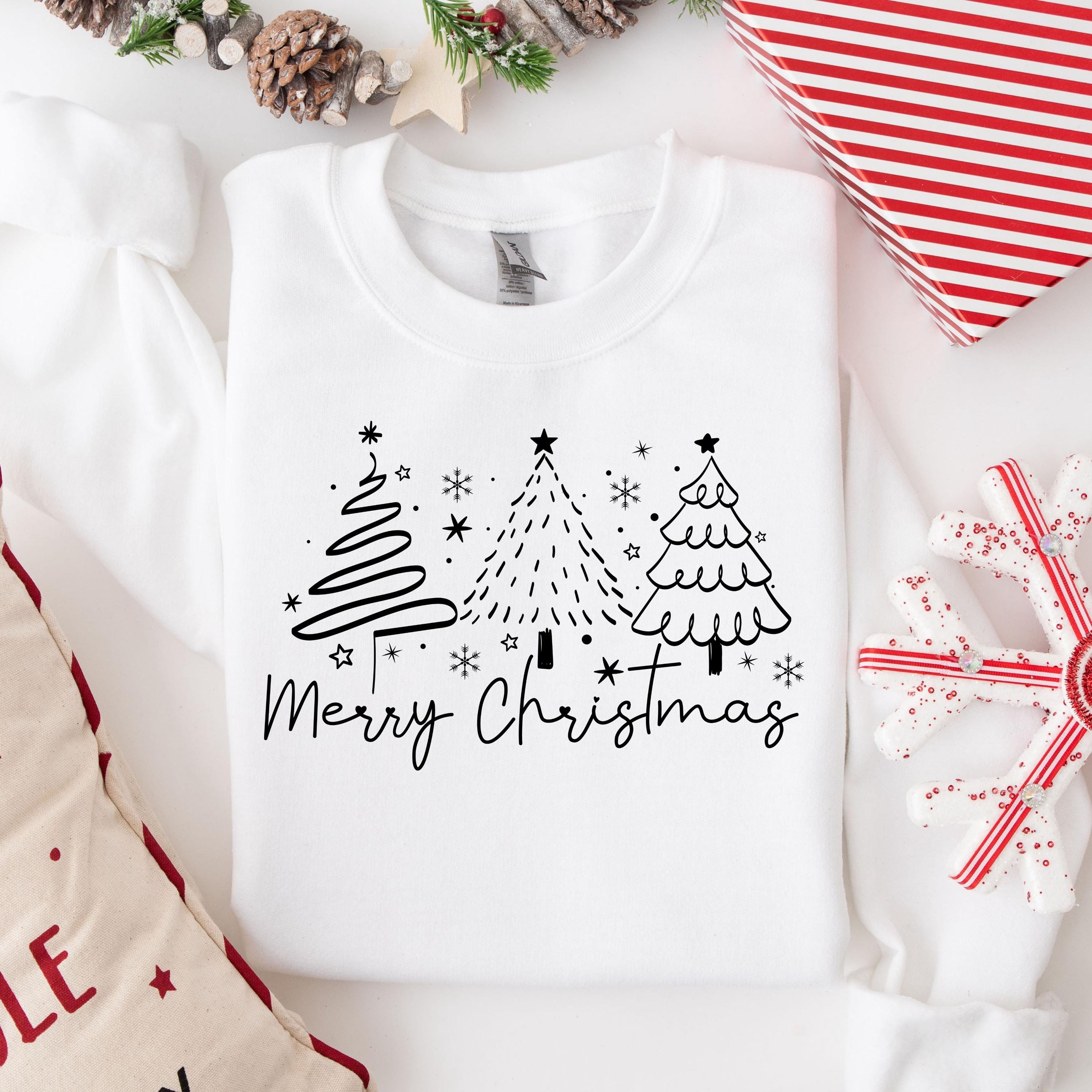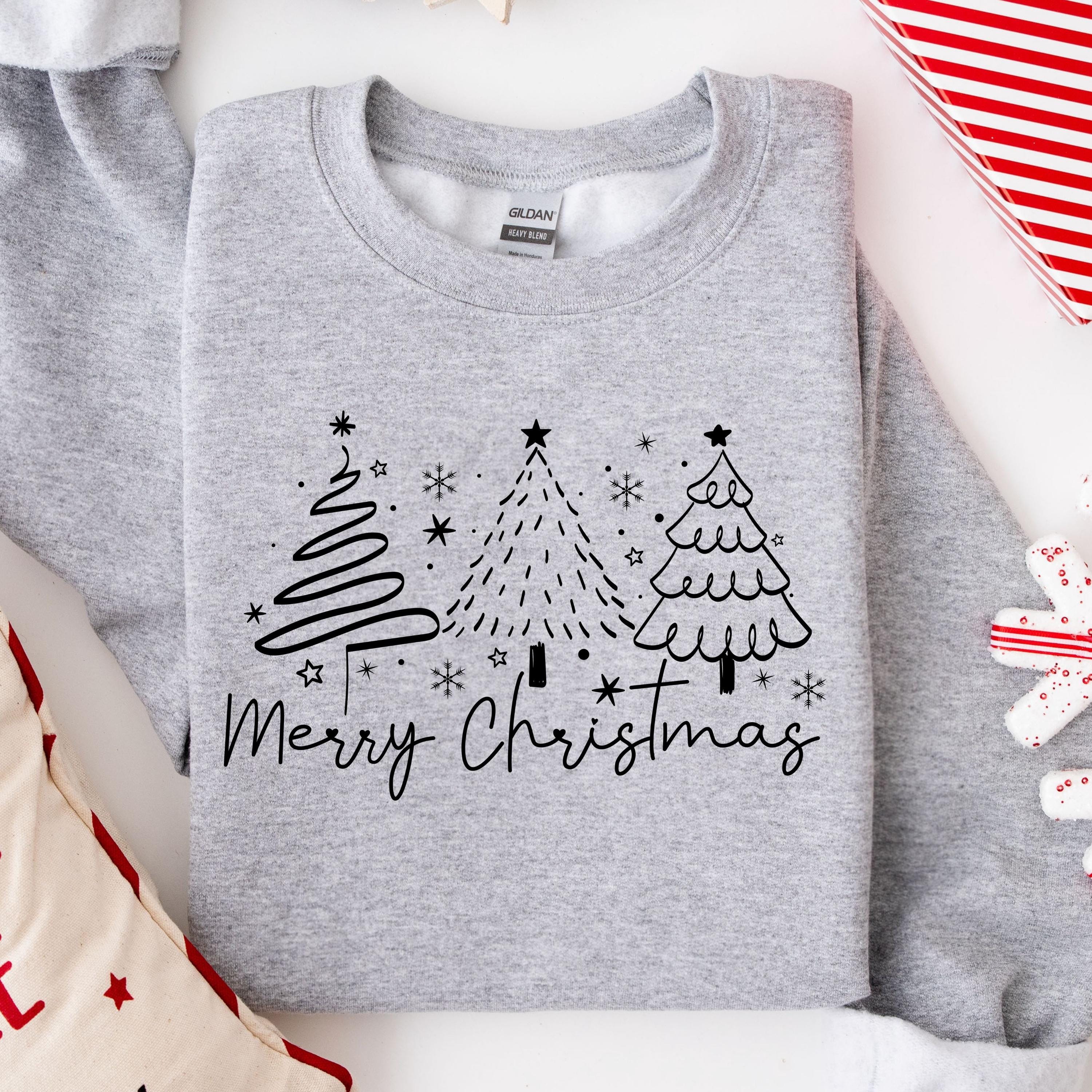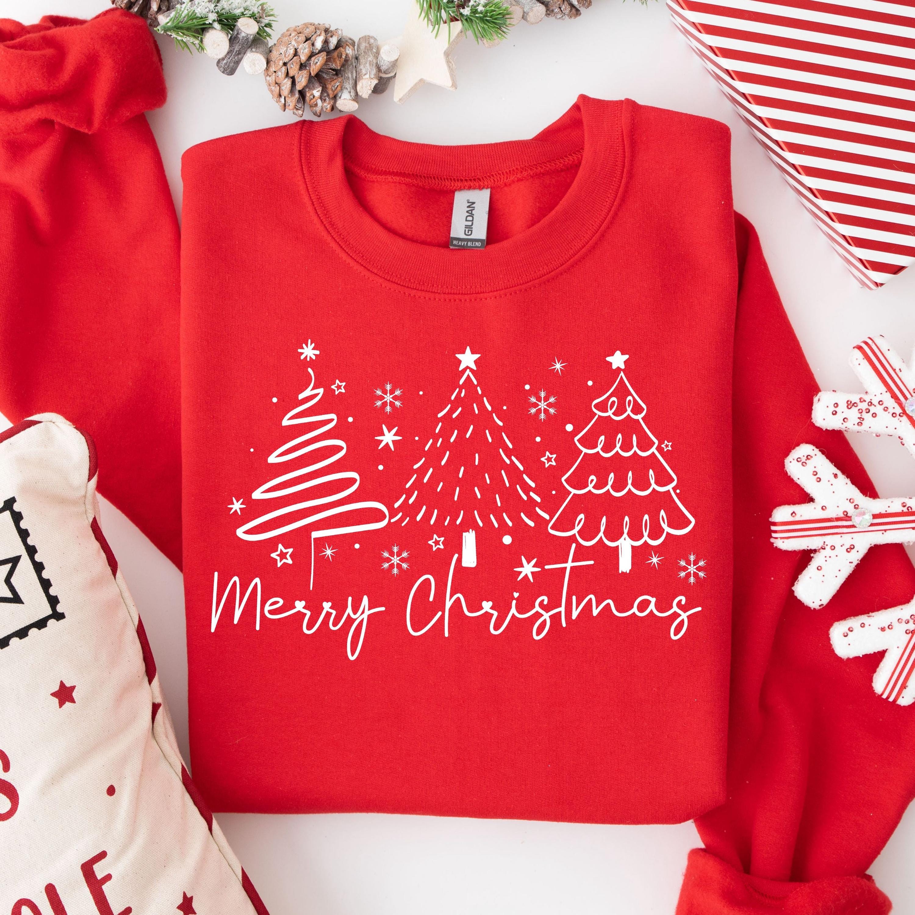 Gildan 18000 Merry Christmas Sweatshirt for Women, Cute Christmas Tree Sweater, Holiday Gift, Printify Choice, Family Matching Set, Women's Aesthetic Outfit, Cozy Holiday Shirt
