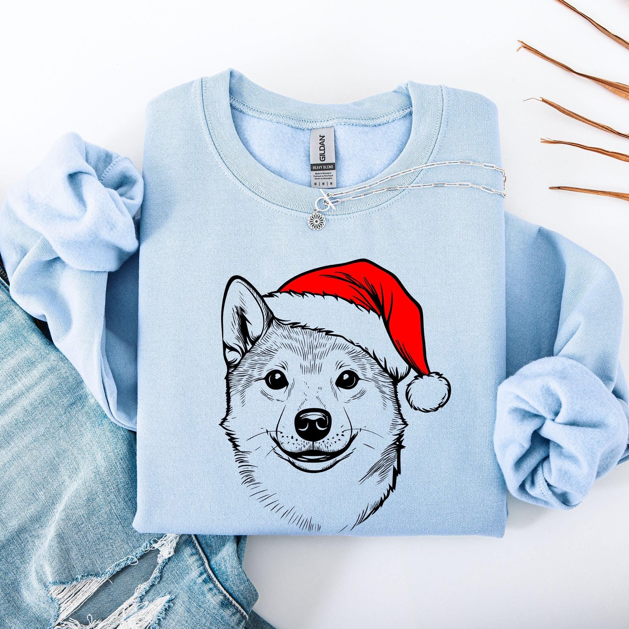 Gildan 18000 Shiba Inu Santa Dog Christmas Sweatshirt for Dog Lovers – Cute Pet Crewneck Sweater, Perfect Xmas Gift, Printify Choice, Adorable Holiday Outfit for Women and Men