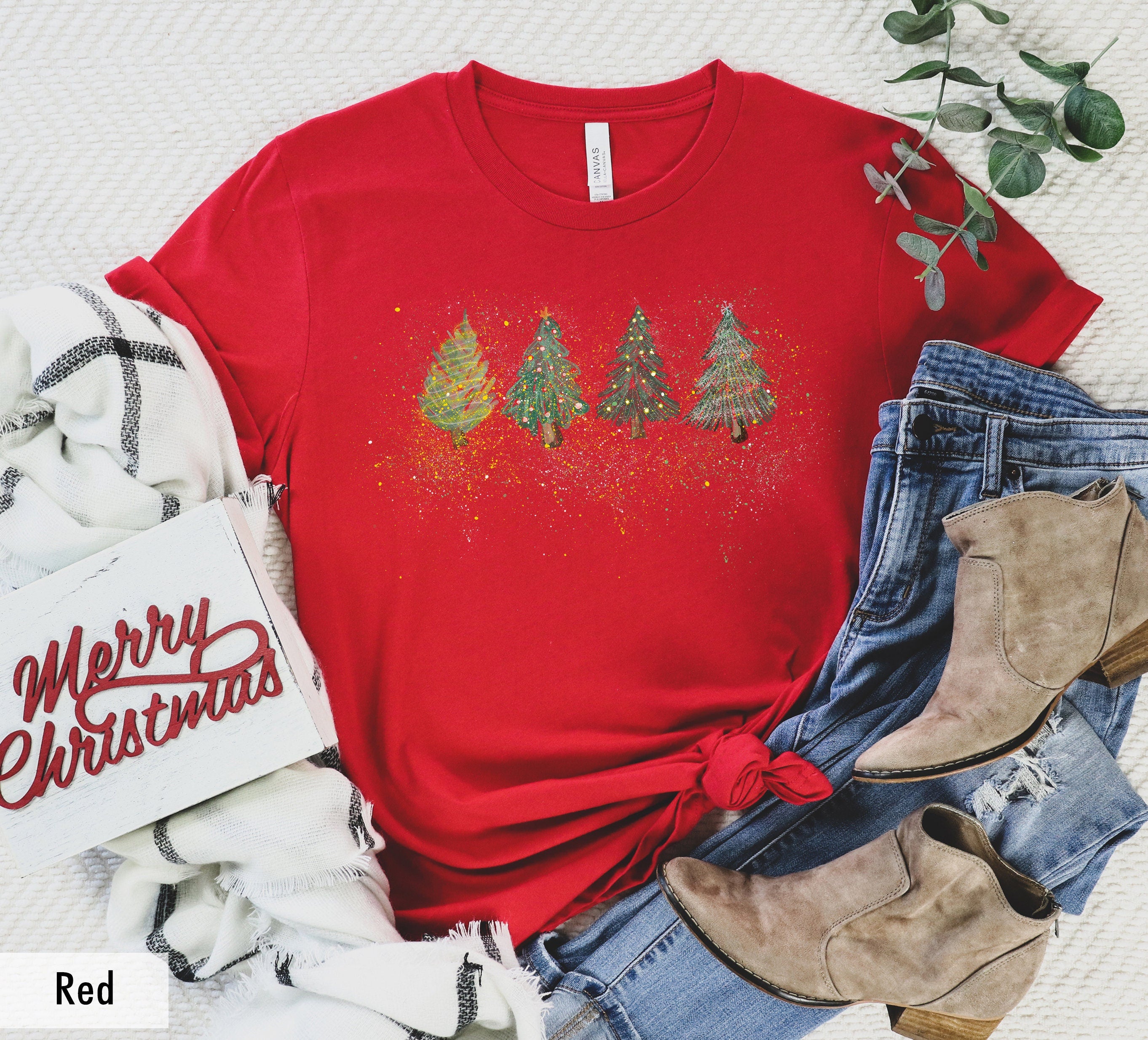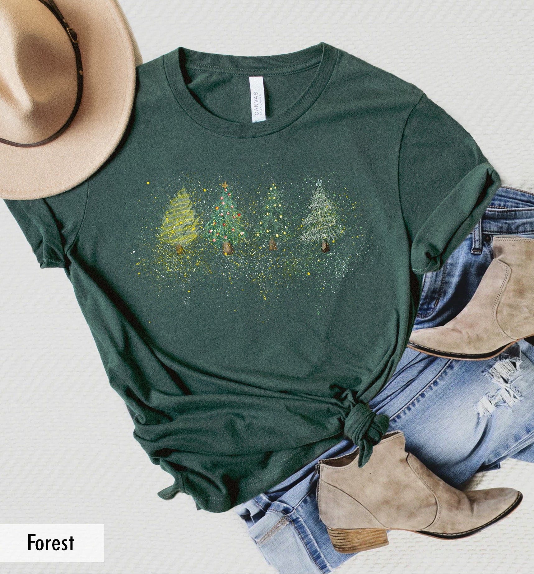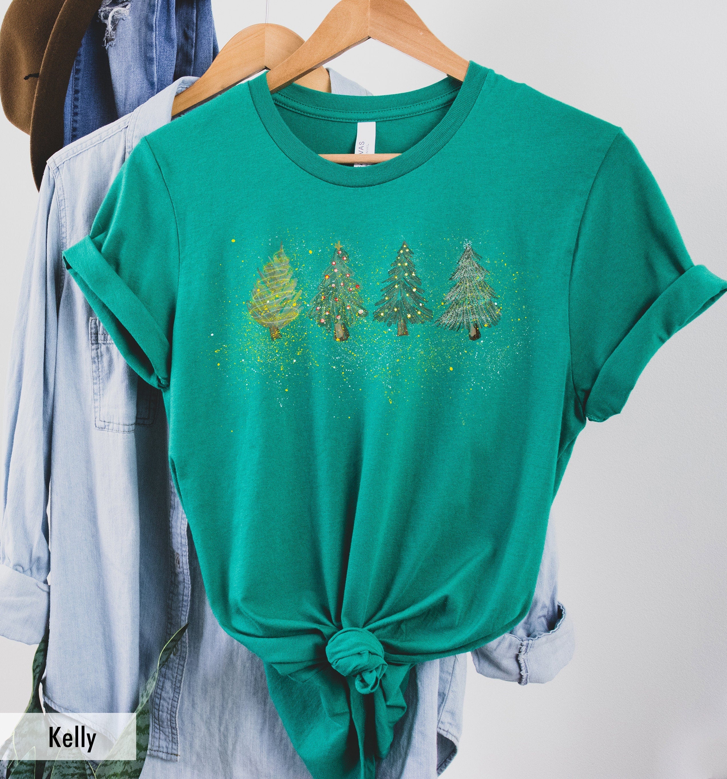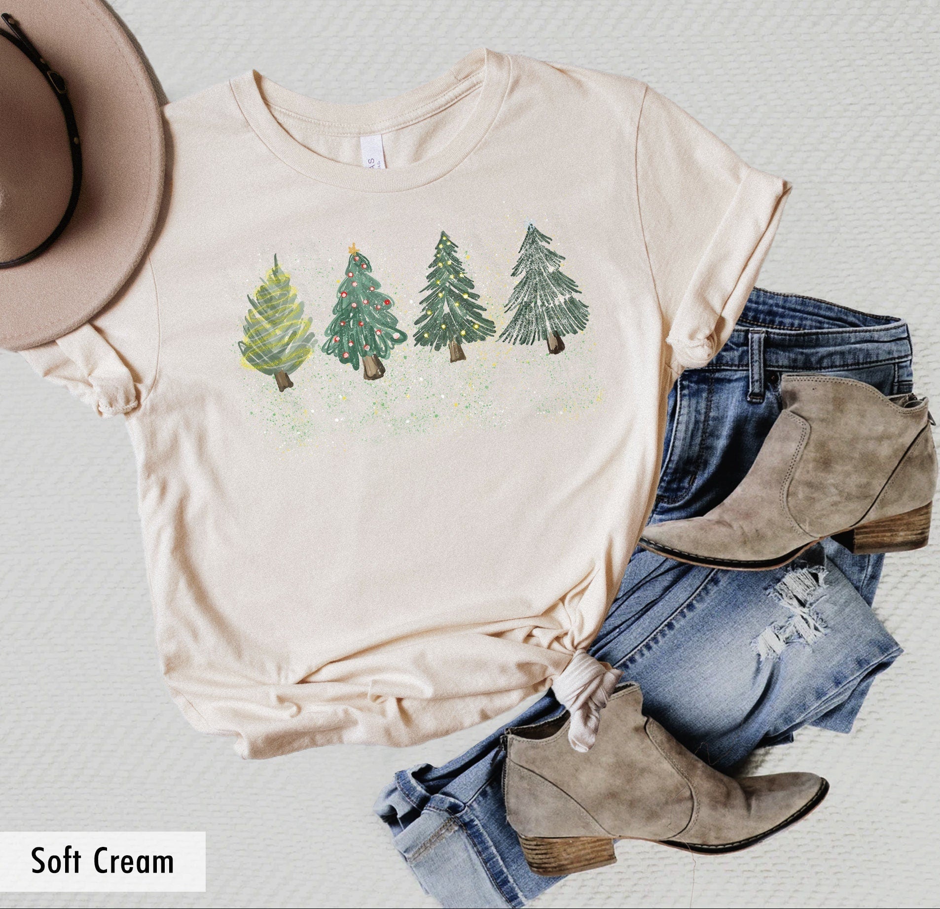 Gildan 5000 Unisex Heavy Cotton Tee: Cute Christmas Trees Shirt for Women, Perfect Holiday Outfit or Gift, Printify Choice, Christmas TShirt for a Festive Aesthetic