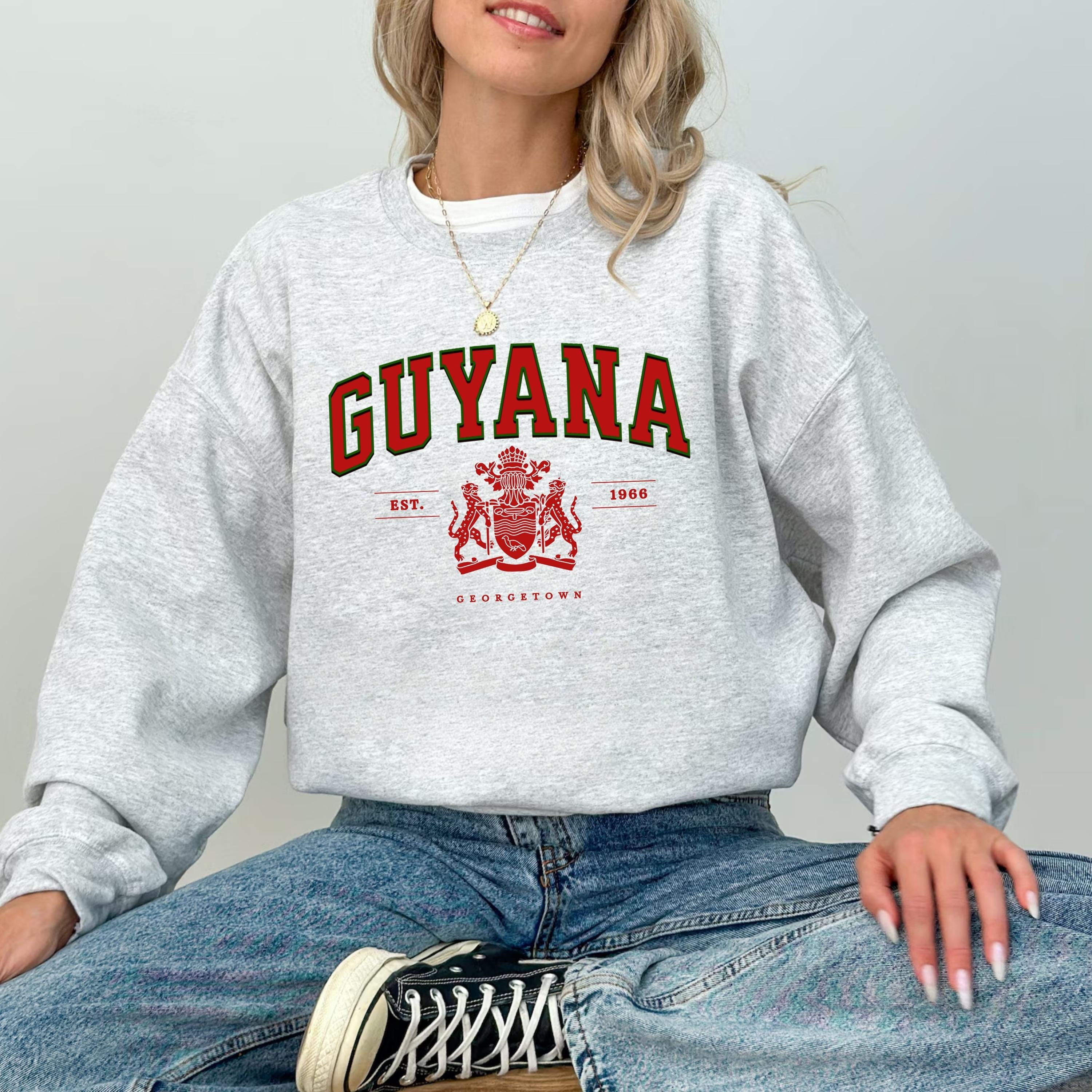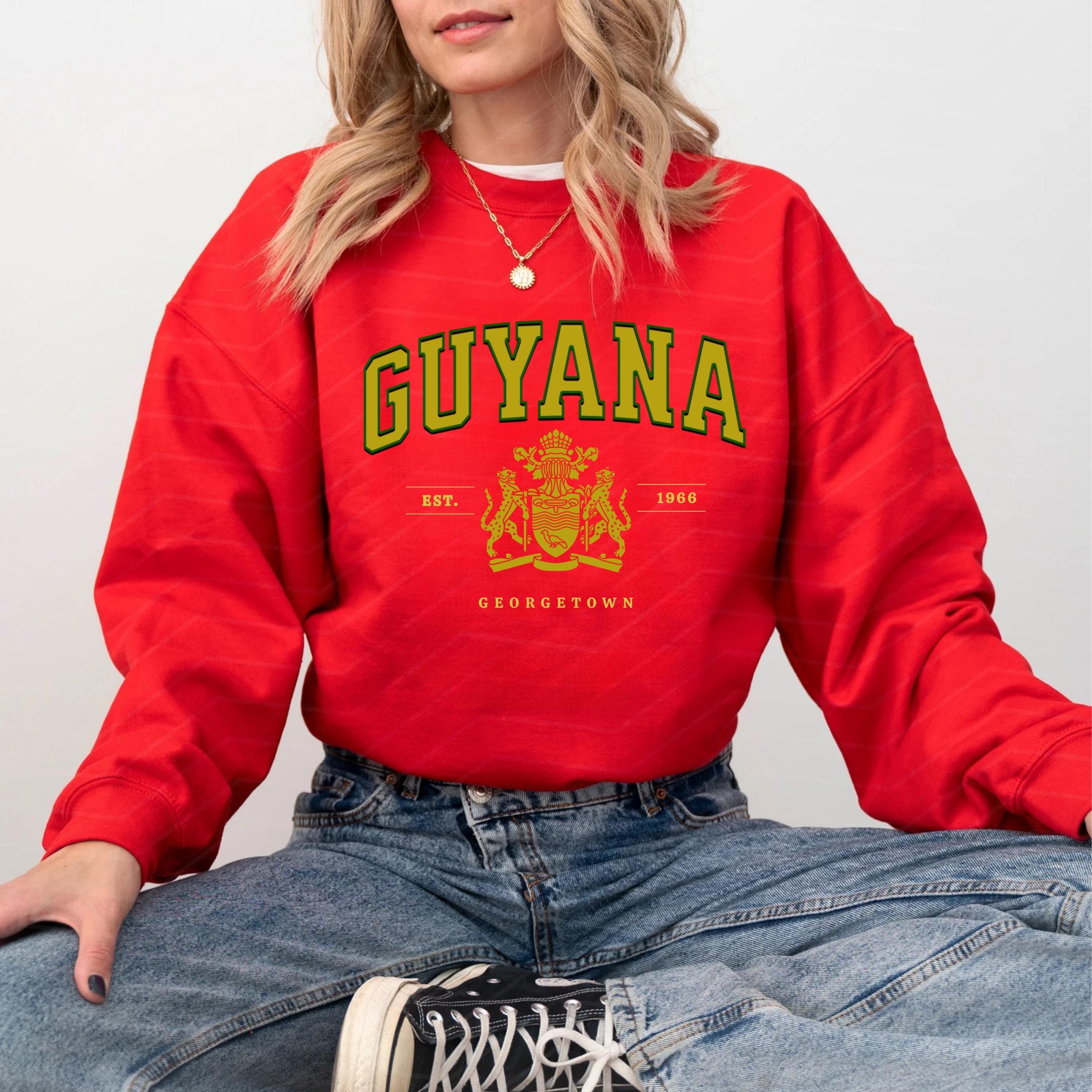 Guyana Flag Crewneck Sweatshirt, College Style Pullover West Indies Guyana Shirt, cozy unisex for men women gift, Caribbean sea gifts, Guyanese pride