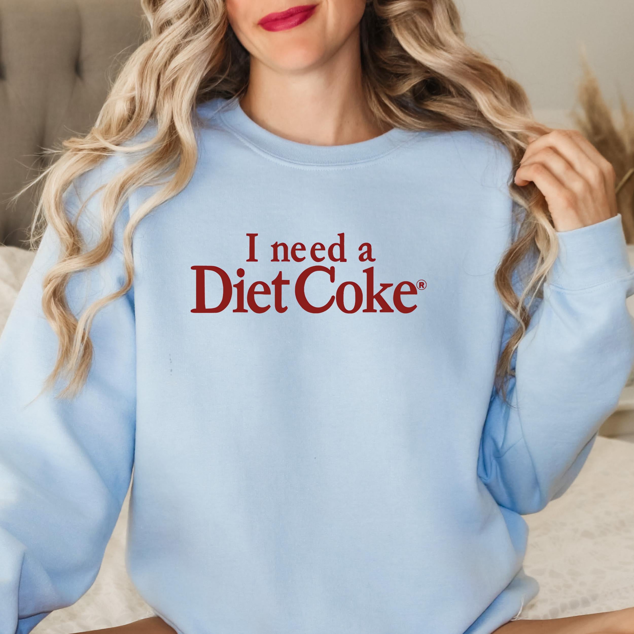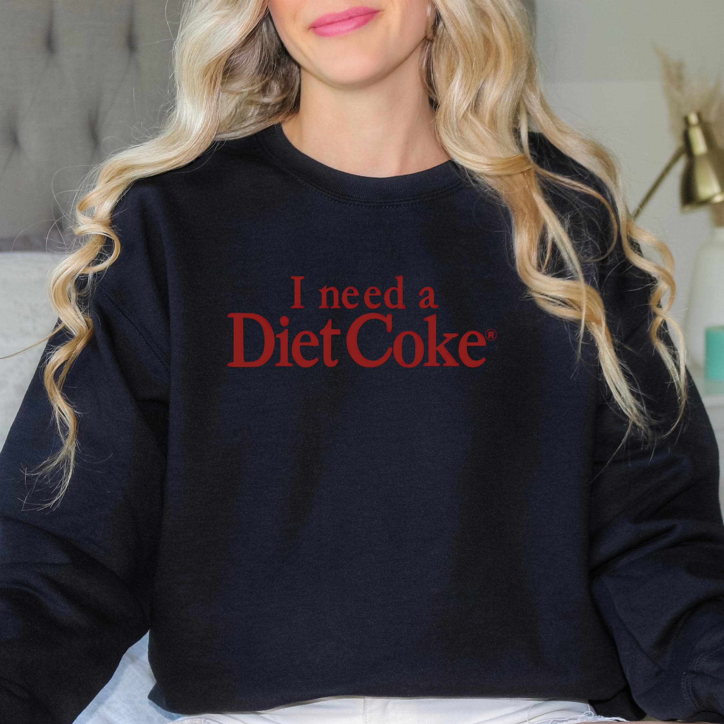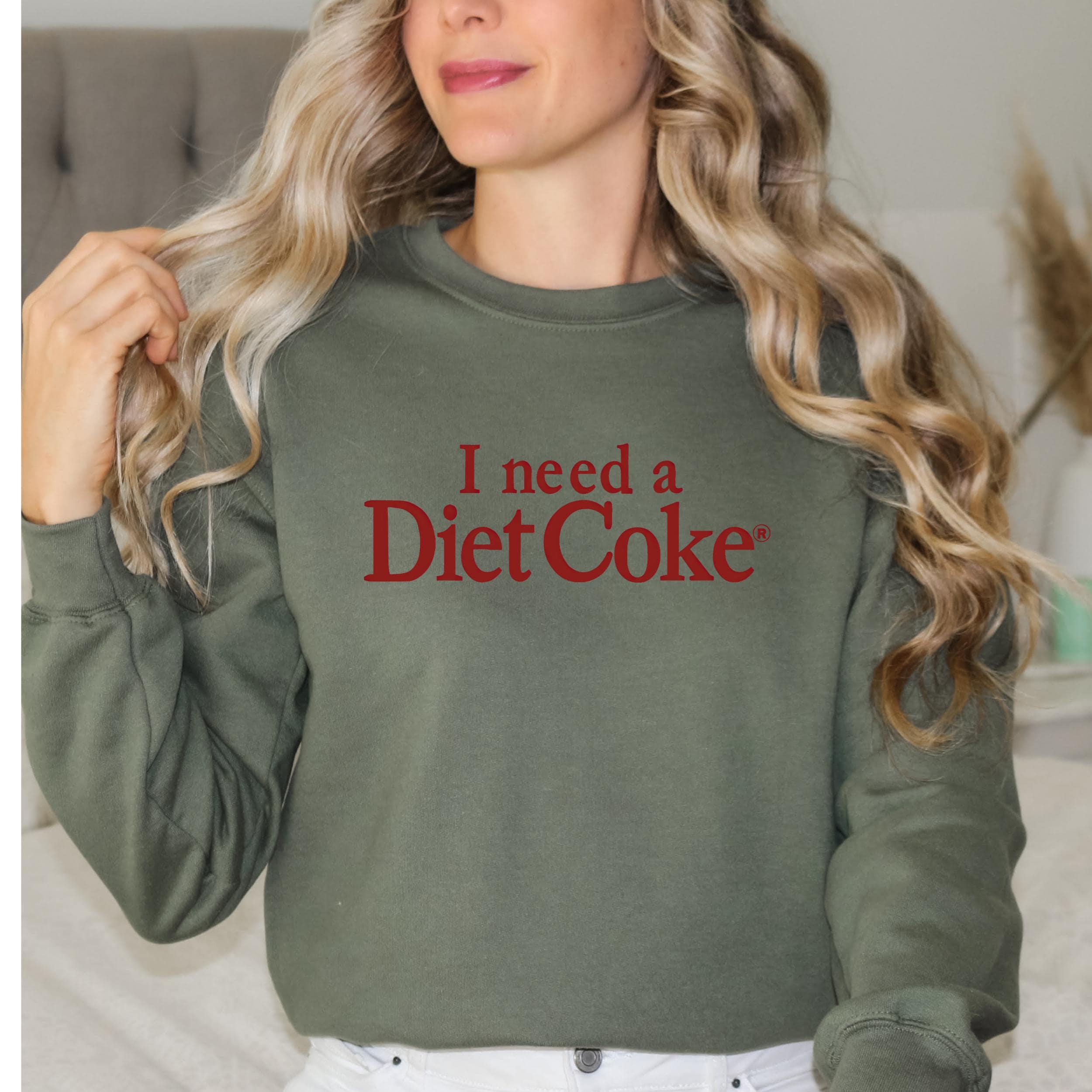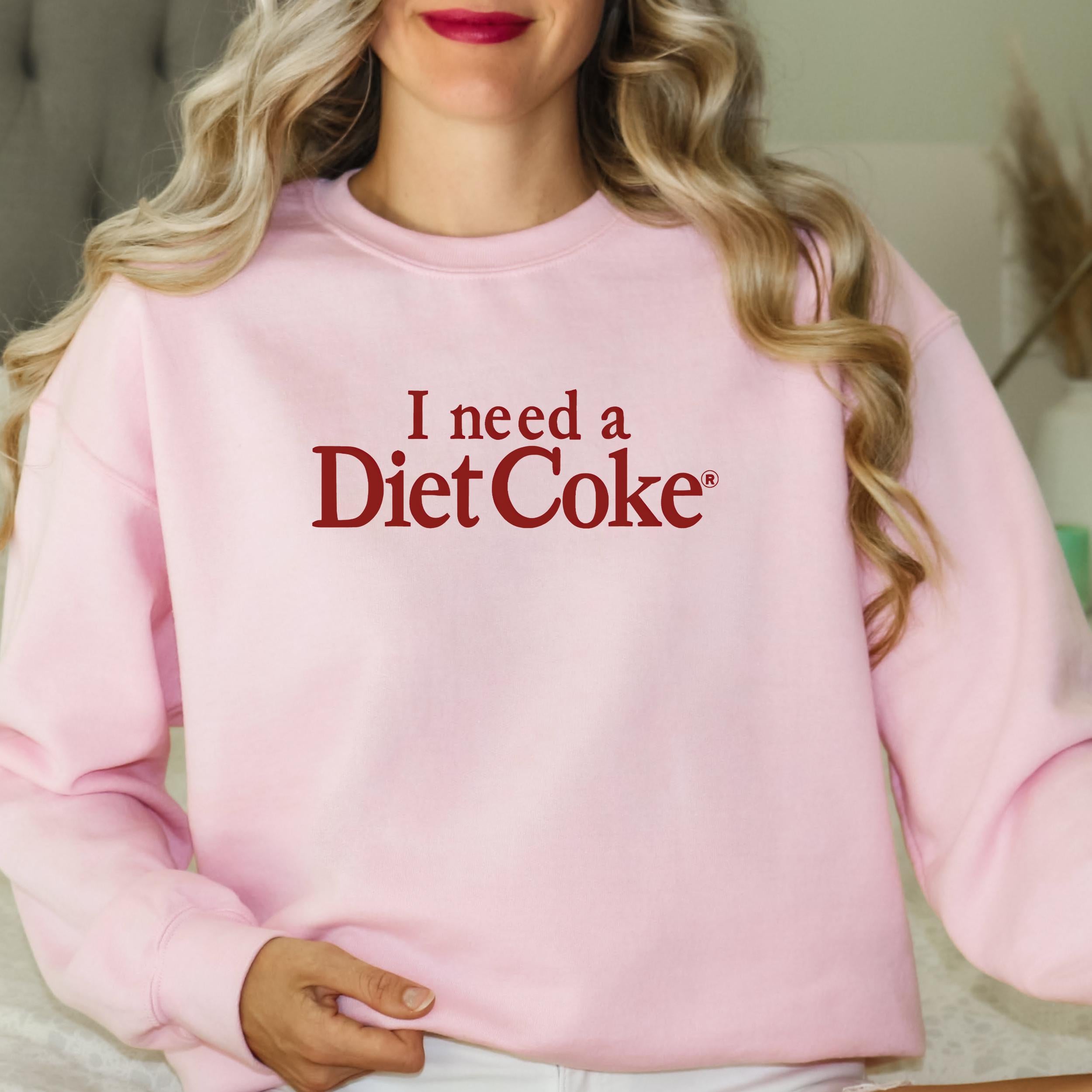 I Need A Diet Coke Sweatshirt: Funny Soda Lover Crewneck Gildan 18000 Unisex Gift, Cozy Printify Choice for Women & Men, Viral Aesthetic Outfit