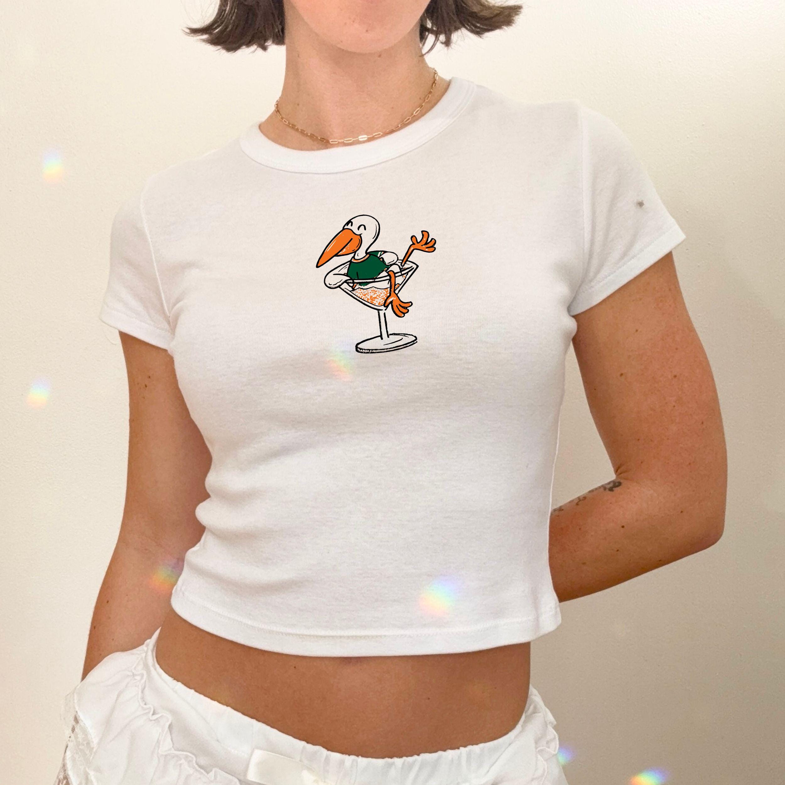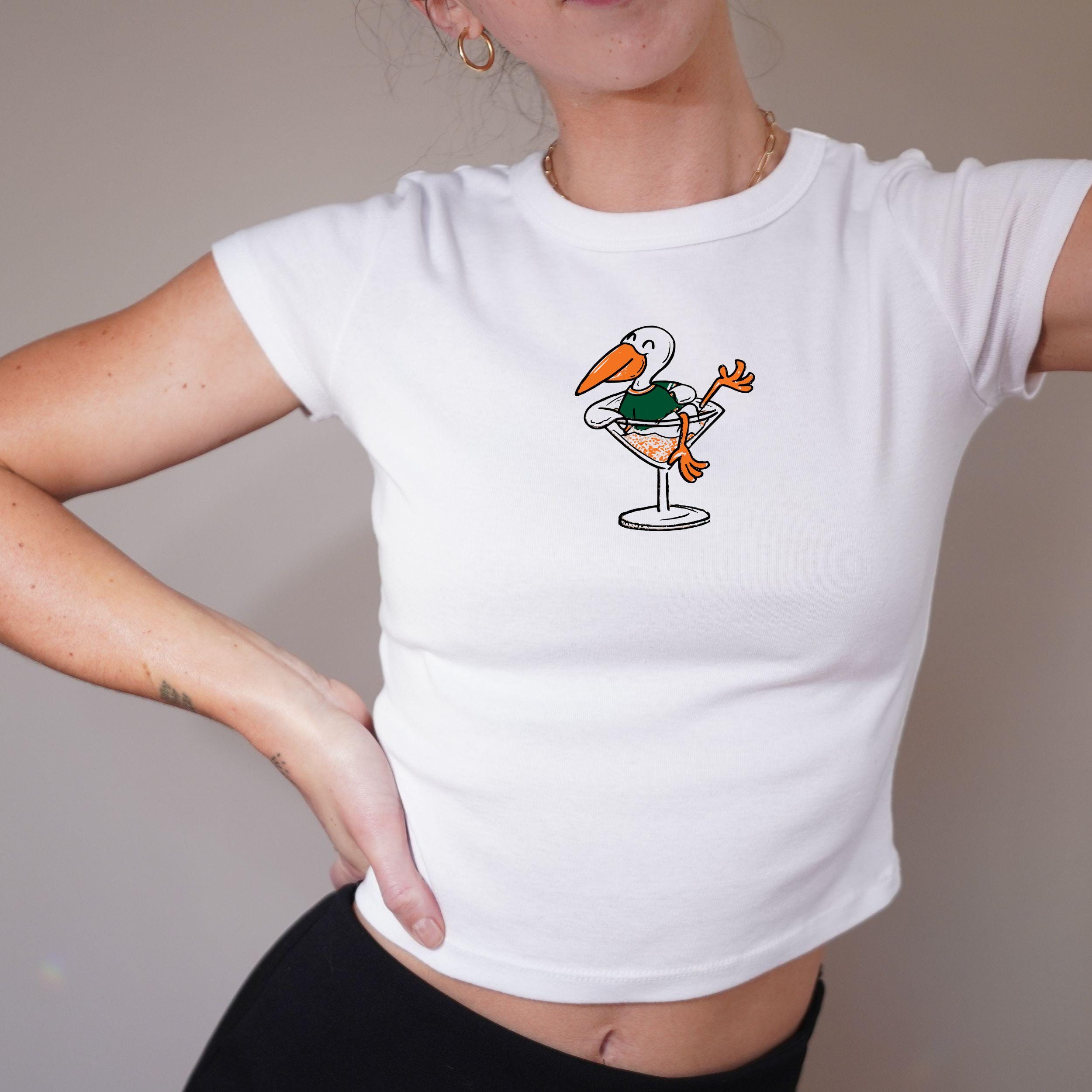 Ibis Bird Martini Baby Tee – Y2K Cropped Top in cotton; Kids Heavy Cotton tee option; retro cocktail aesthetic, cute summer outfit, matching set