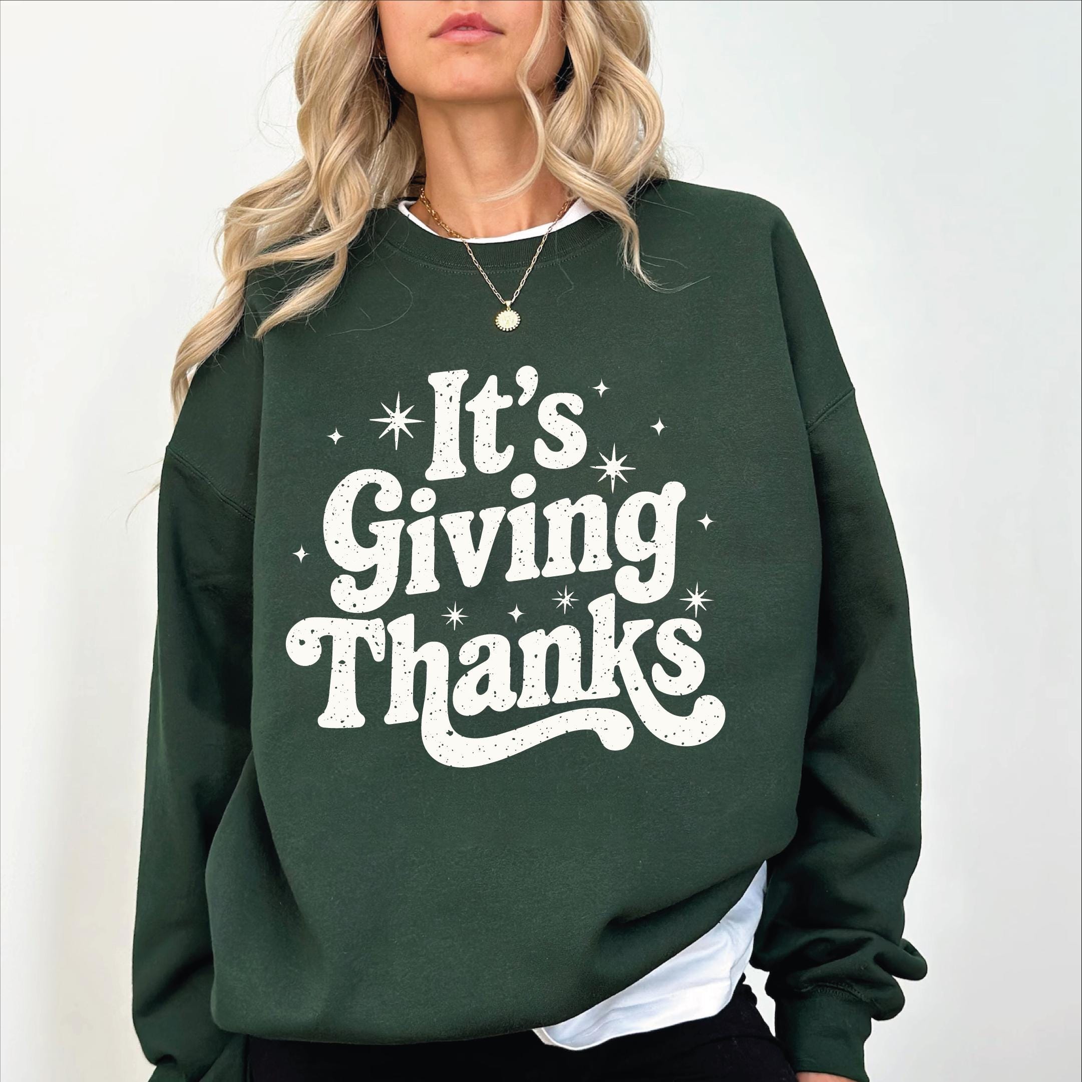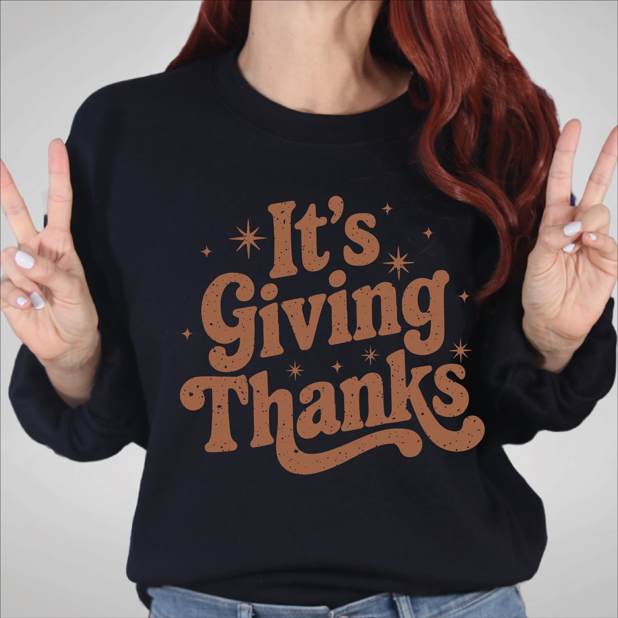 It's Giving Thanks Sweatshirt: Brown Fall Thanksgiving Hoodie for Gen Z - Gildan 18000 Printify Choice, Perfect Aesthetic Outfit for Women, Viral Holiday Gift Idea