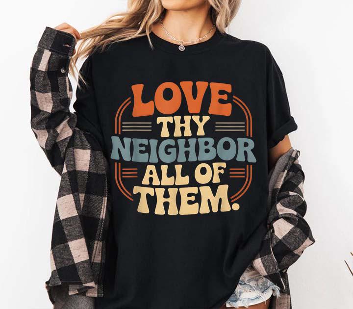 Love Thy Neighbor All of Them T-Shirt Unisex Classic Tee 5000 Heavy Cotton Short Sleeve, Casual Outfit, Gift for Men Women