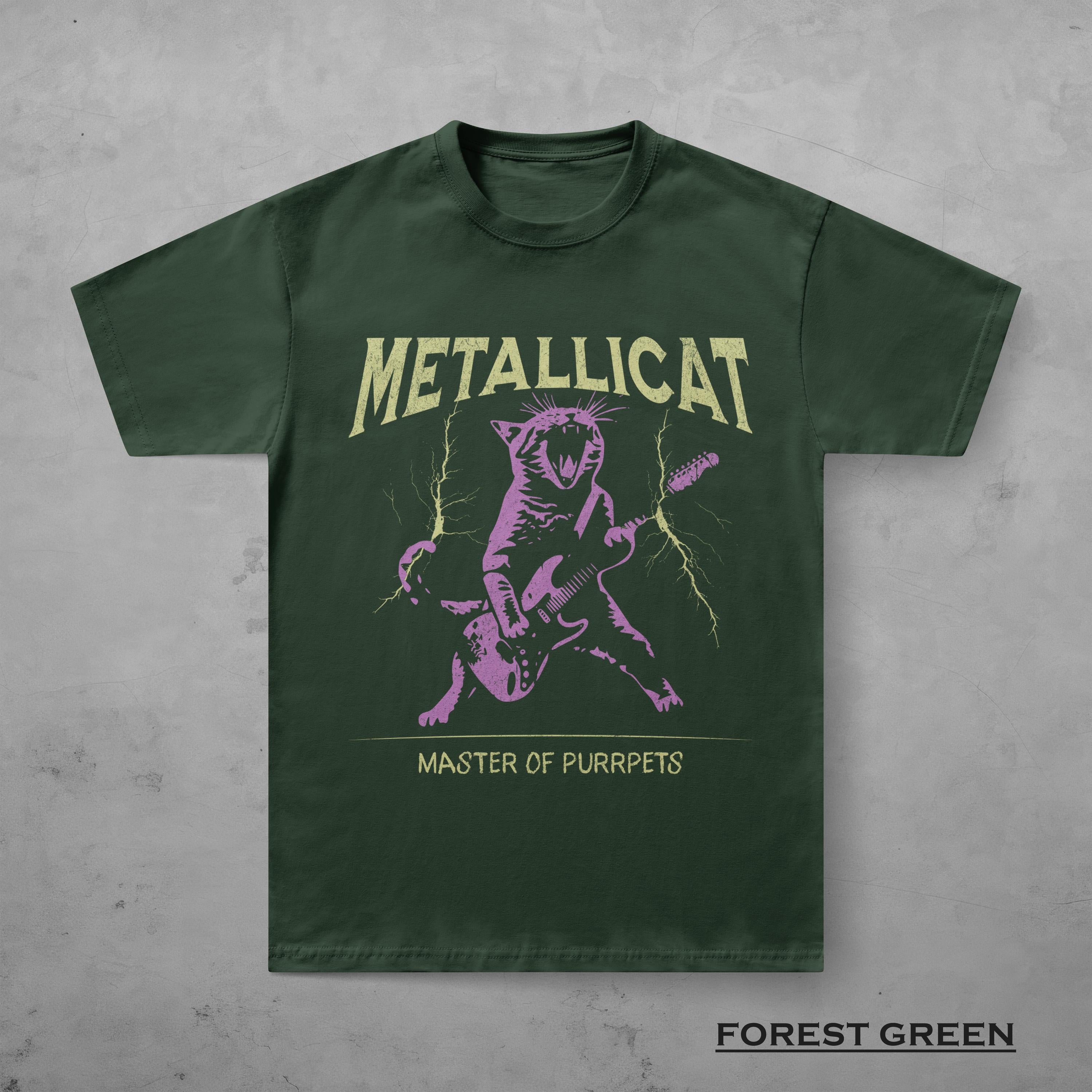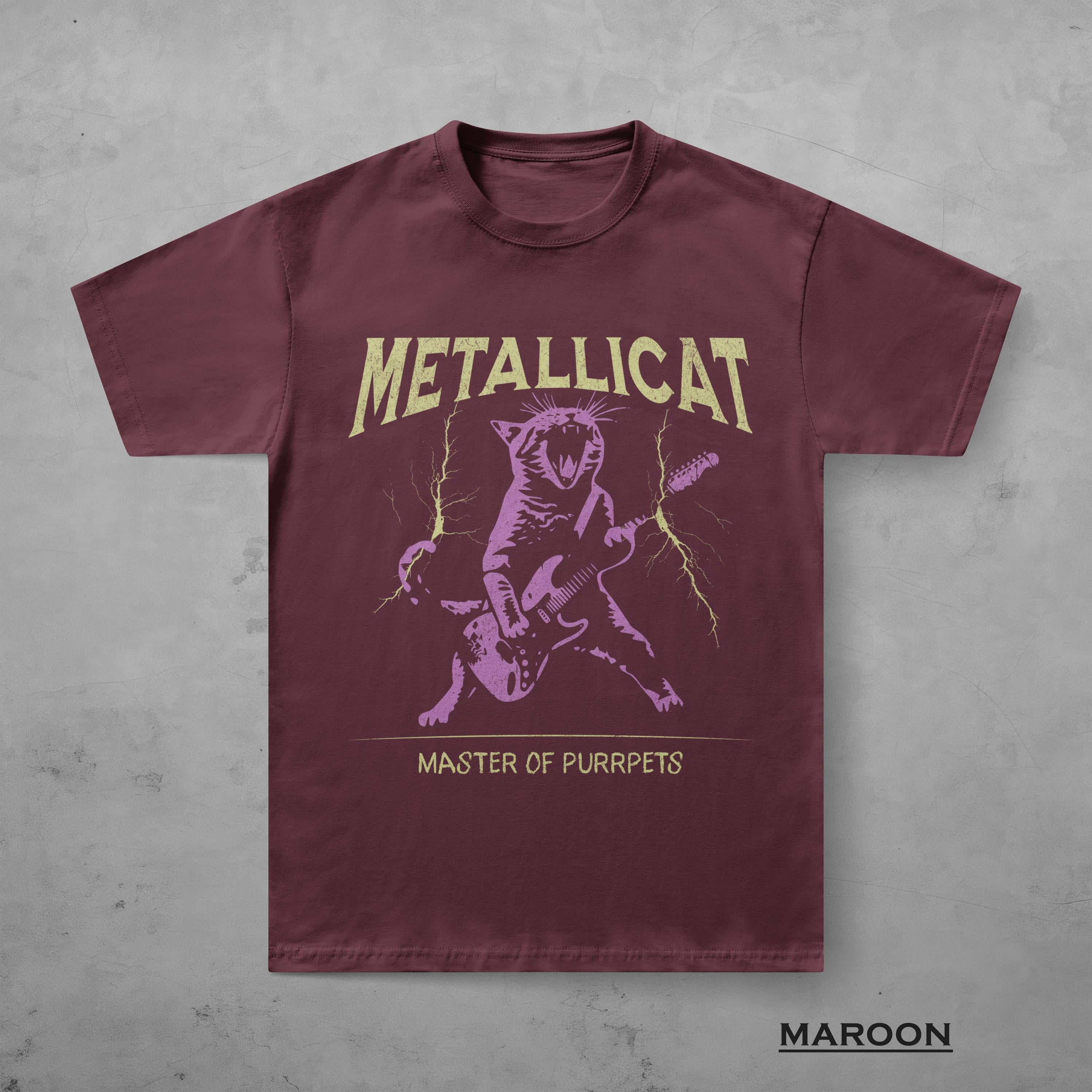 Metallicat Funny Guitar Cat T-Shirt, Gildan 5000 Unisex Heavy Cotton Tee, Perfect Metalhead Gift, Printify Choice for Men & Women
