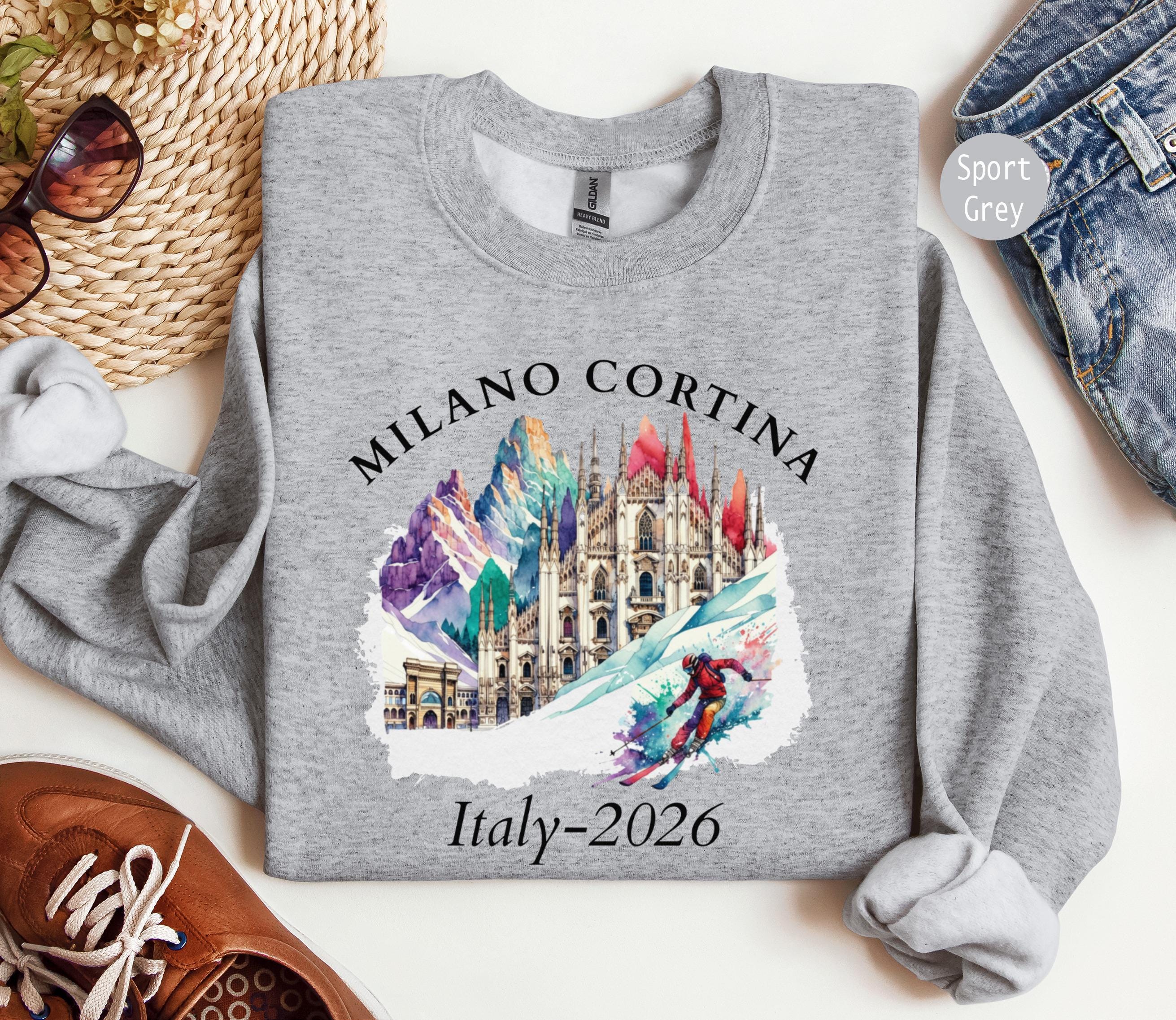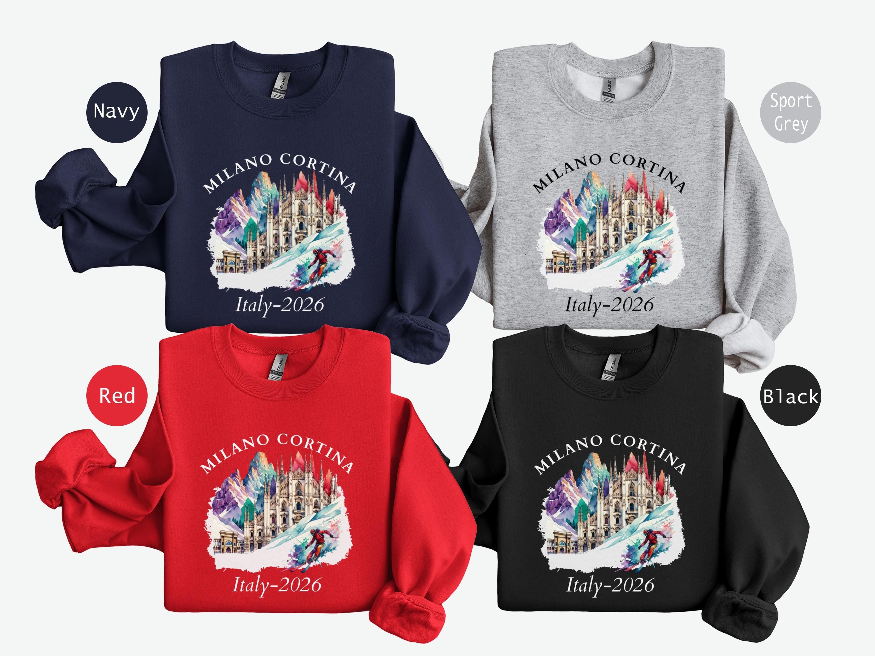Milano Cortina 2026 Gildan 18000 Crewneck Sweatshirt, Italy Winter Sport, Family Matching Vacation Outfit