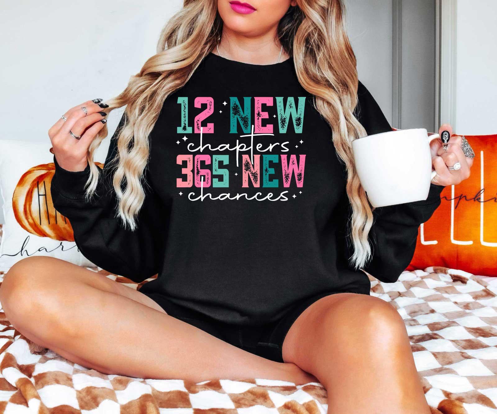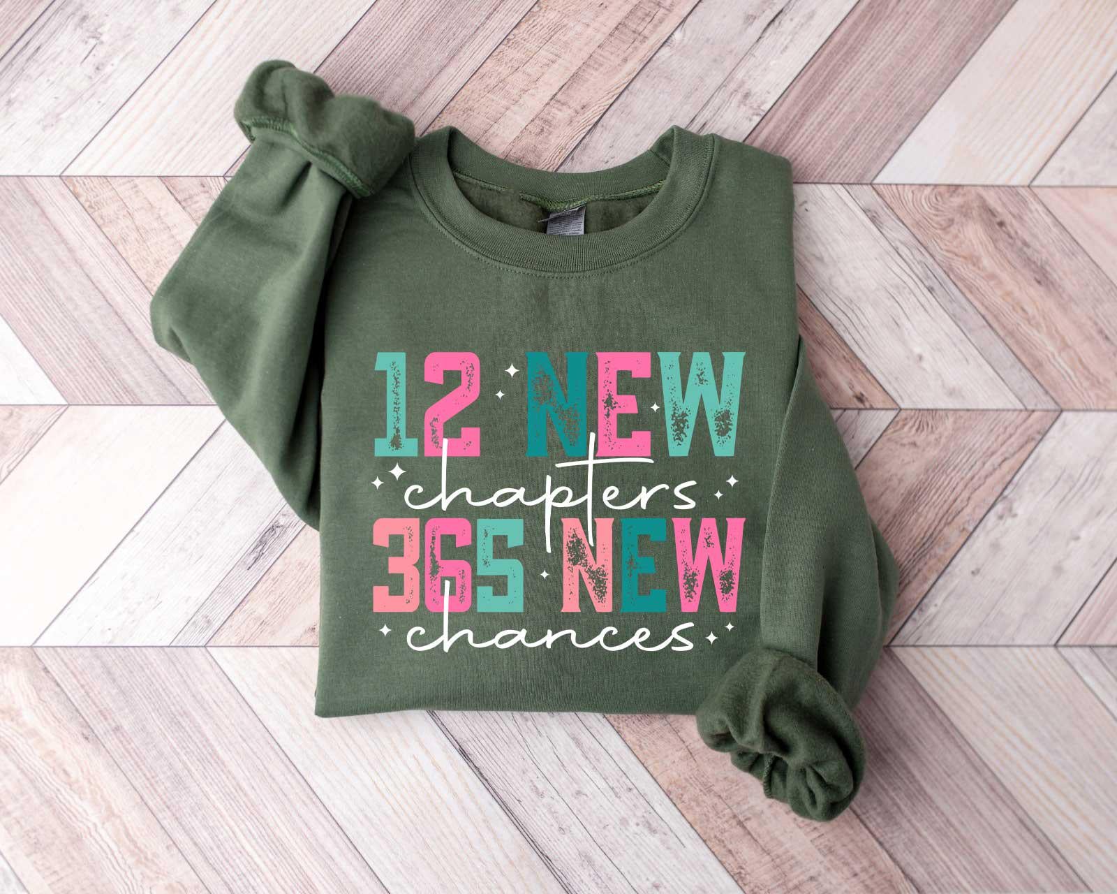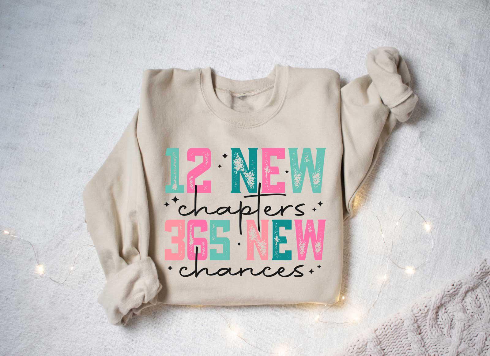 New Chapters 365 Chances Gildan 18000 Sweatshirt, Happy New Year 2025, Cozy Gift, Printify Choice, Cute Party Outfit for Women