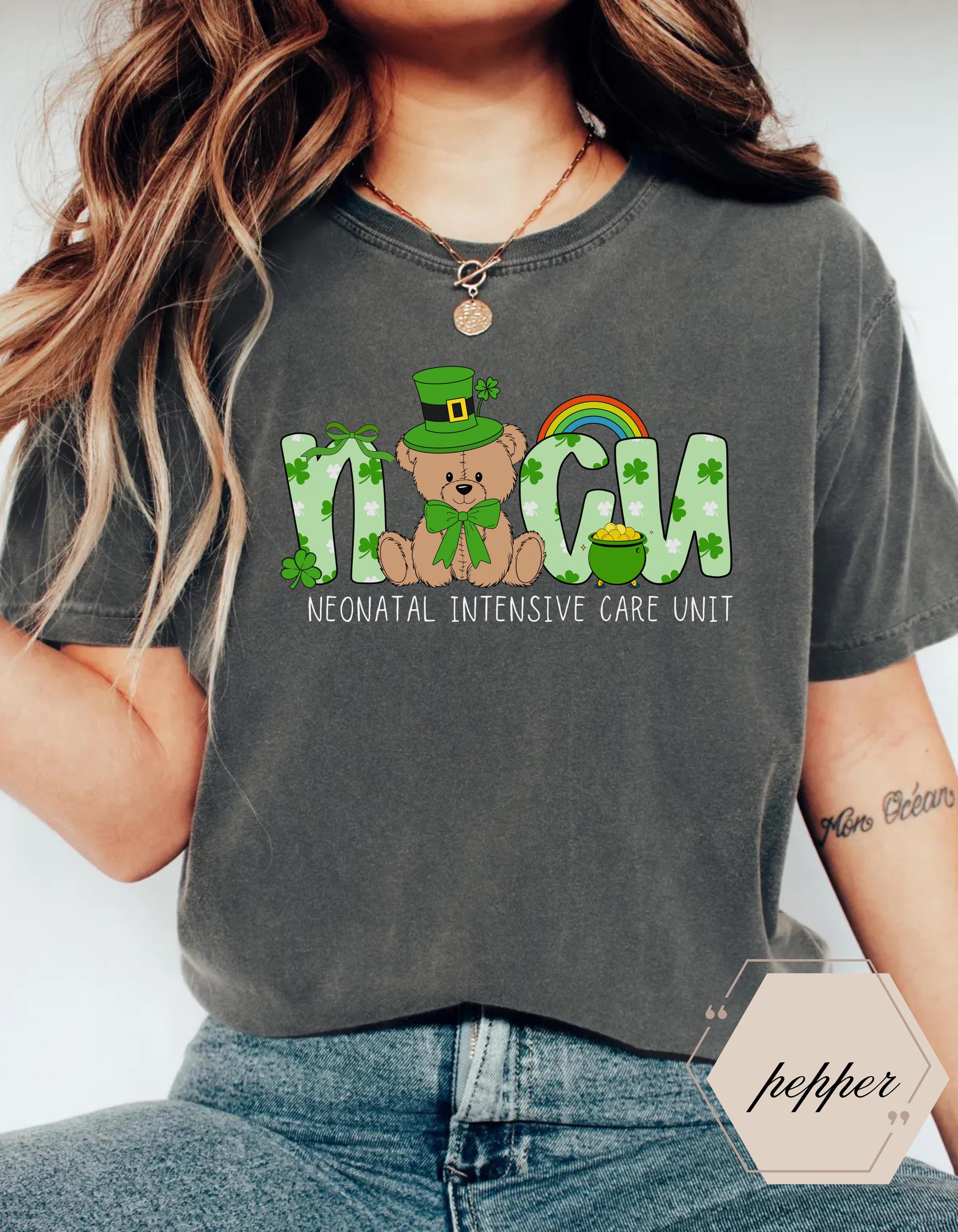 NICU Nurse St Patrick's Day Shirt, Comfort Colors 1717 TShirt, Relaxed Fit Gift for Women, Aesthetic Outfit, Matching Set Option