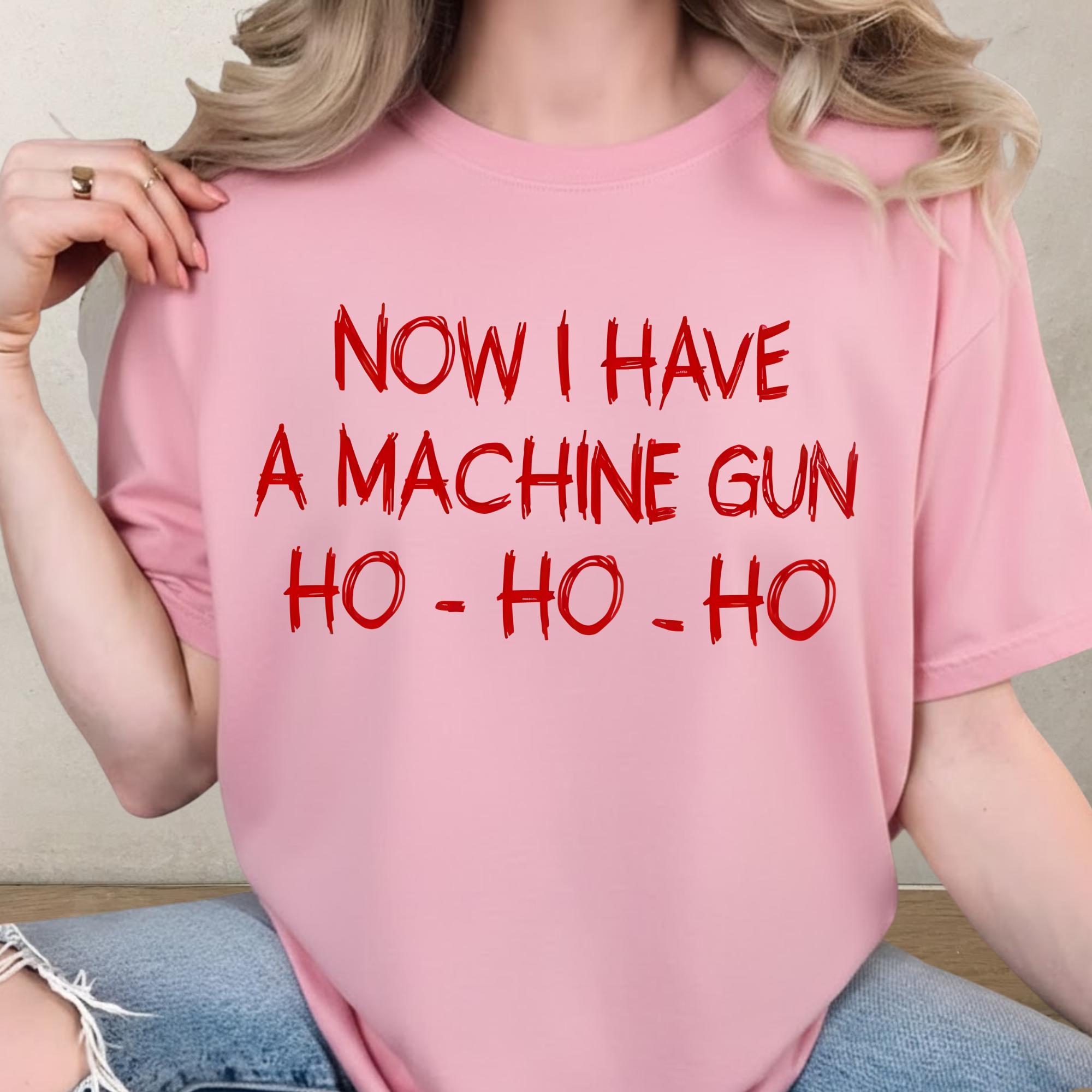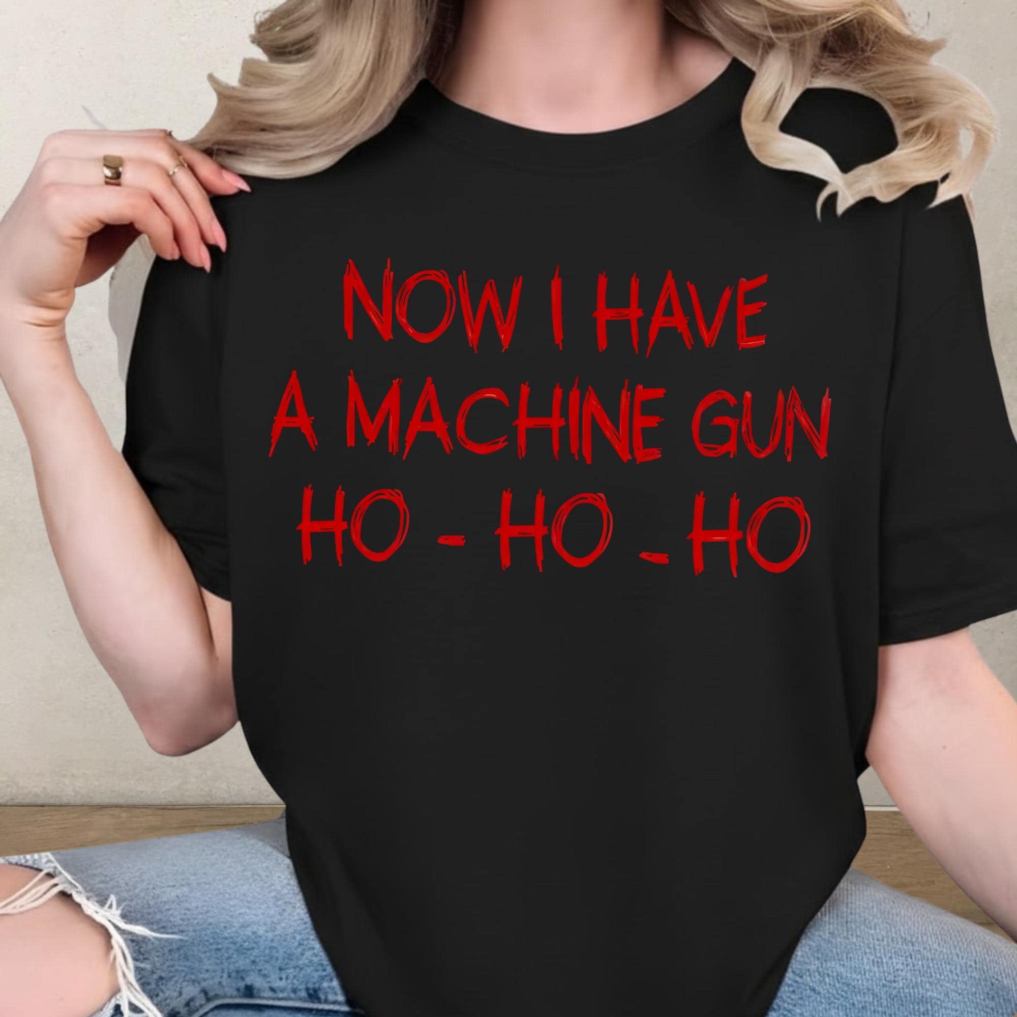 Now I Have a Machine Gun Ho Ho Ho Gildan 5000 Classic Tee, Heavy Cotton Unisex Shirt, Funny Christmas Gift for Action Movie Fans, Holiday Outfit