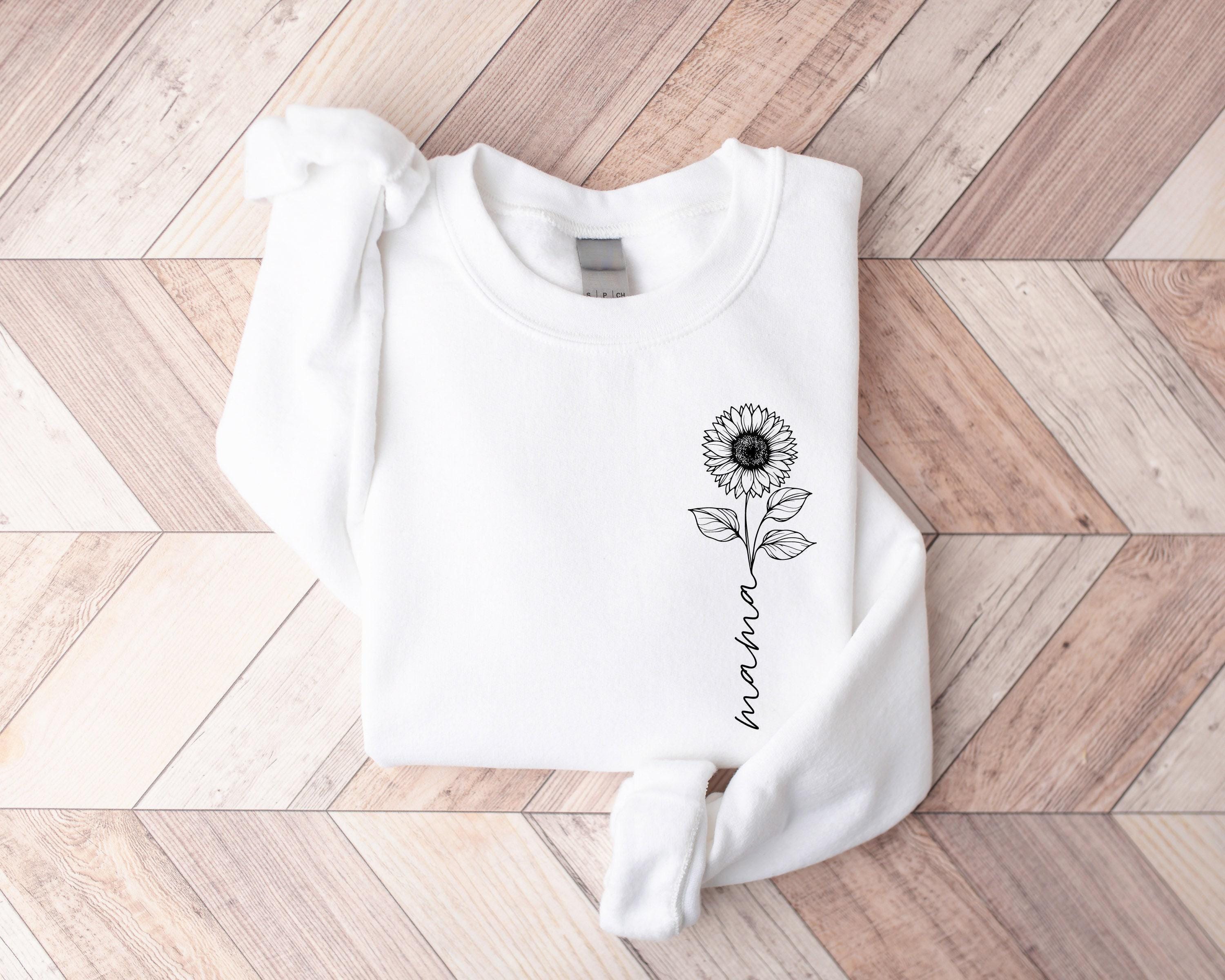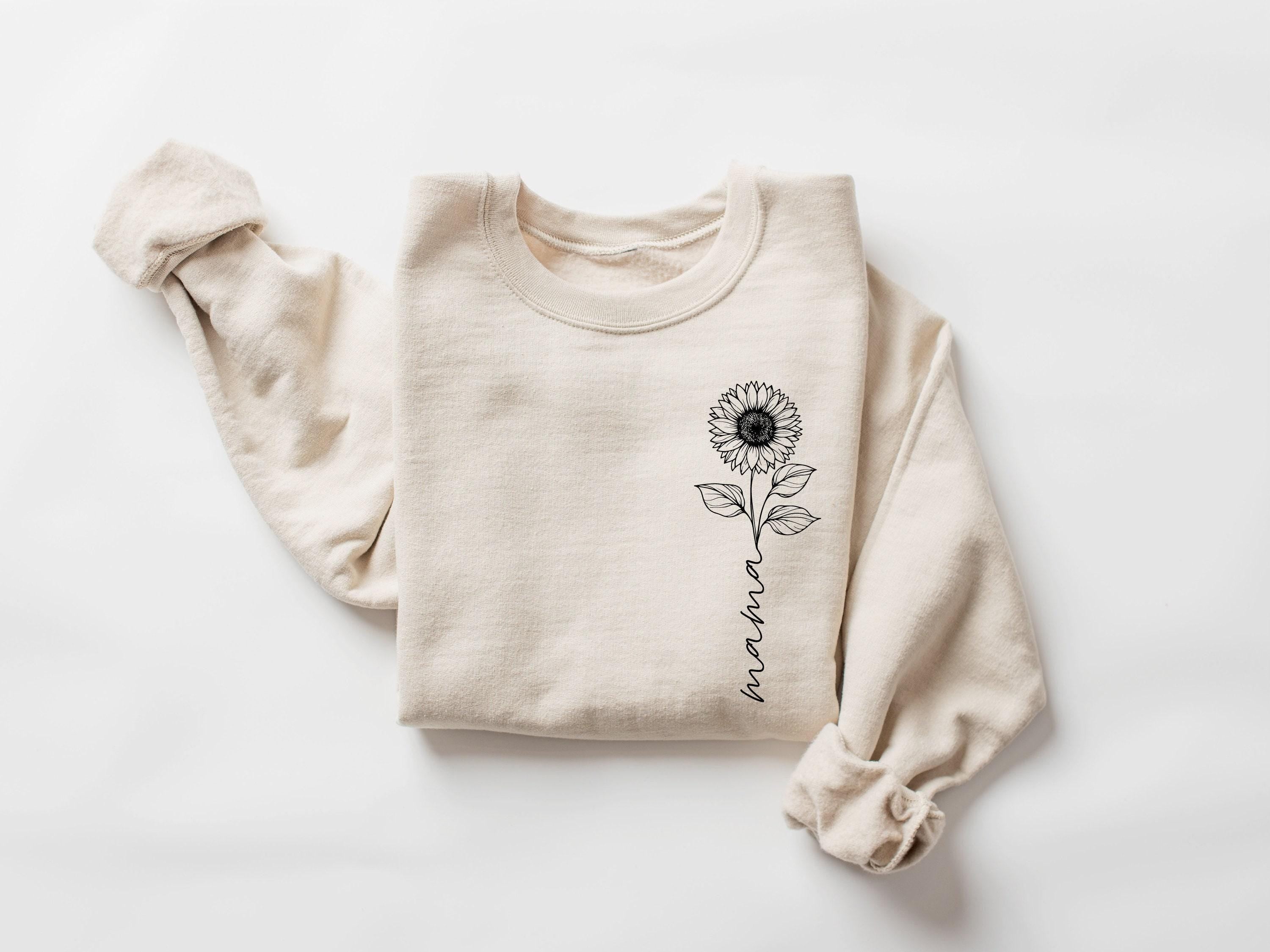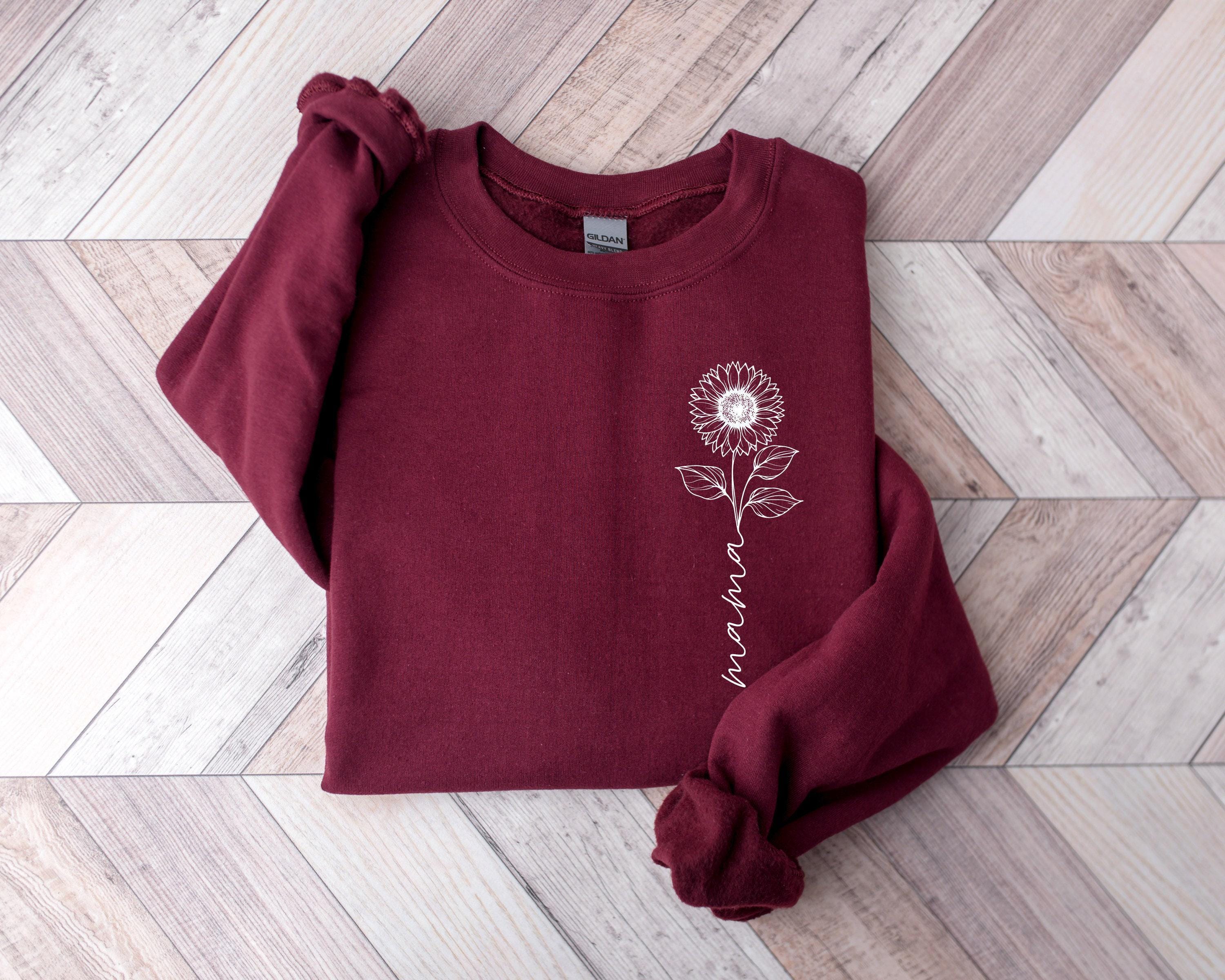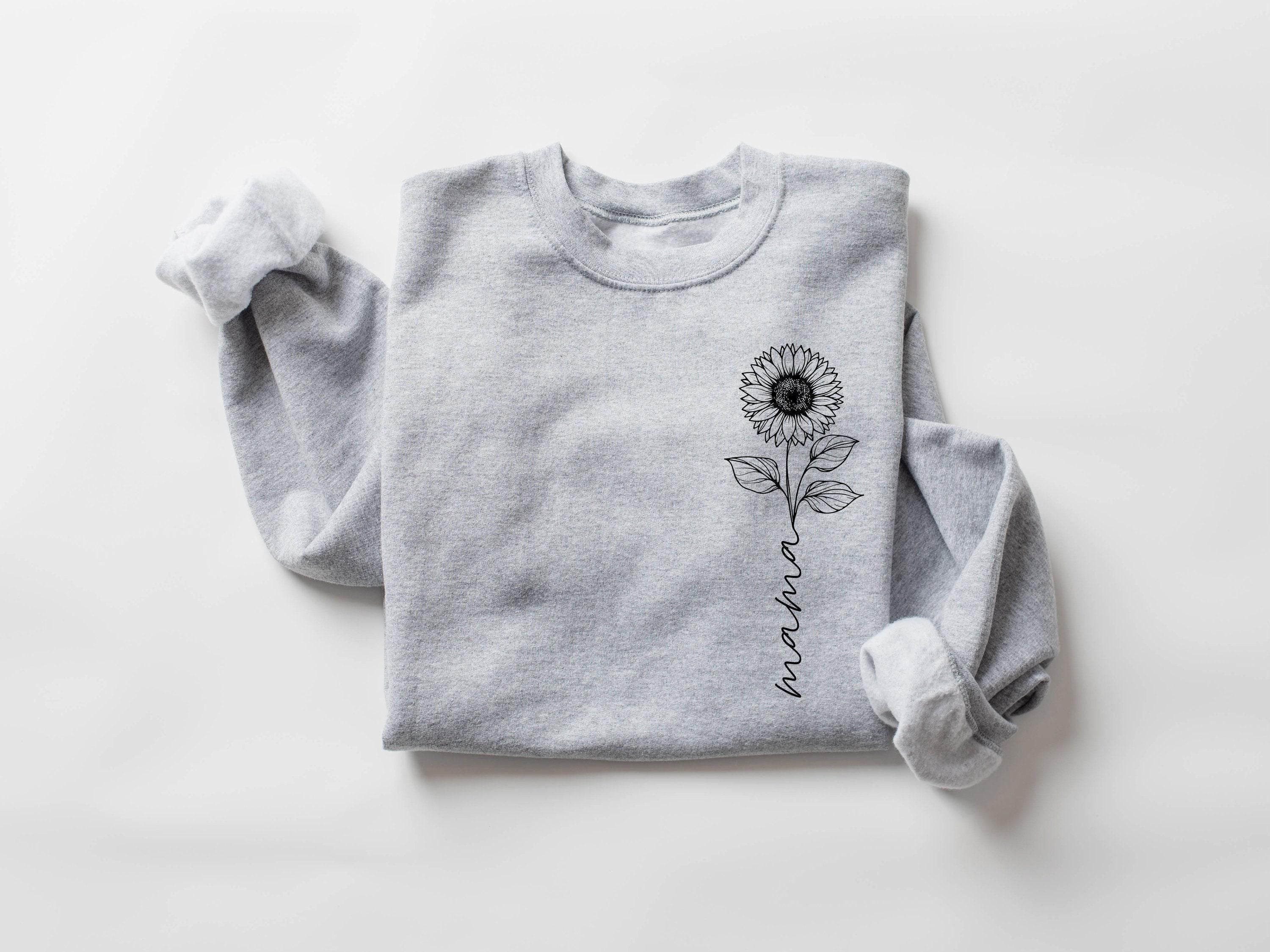 Personalized Sunflower Mom Gift Sweatshirt, Gildan 18000, Cozy Mother's Day Crewneck for Women, Printify Choice, New Mom Announcement Outfit