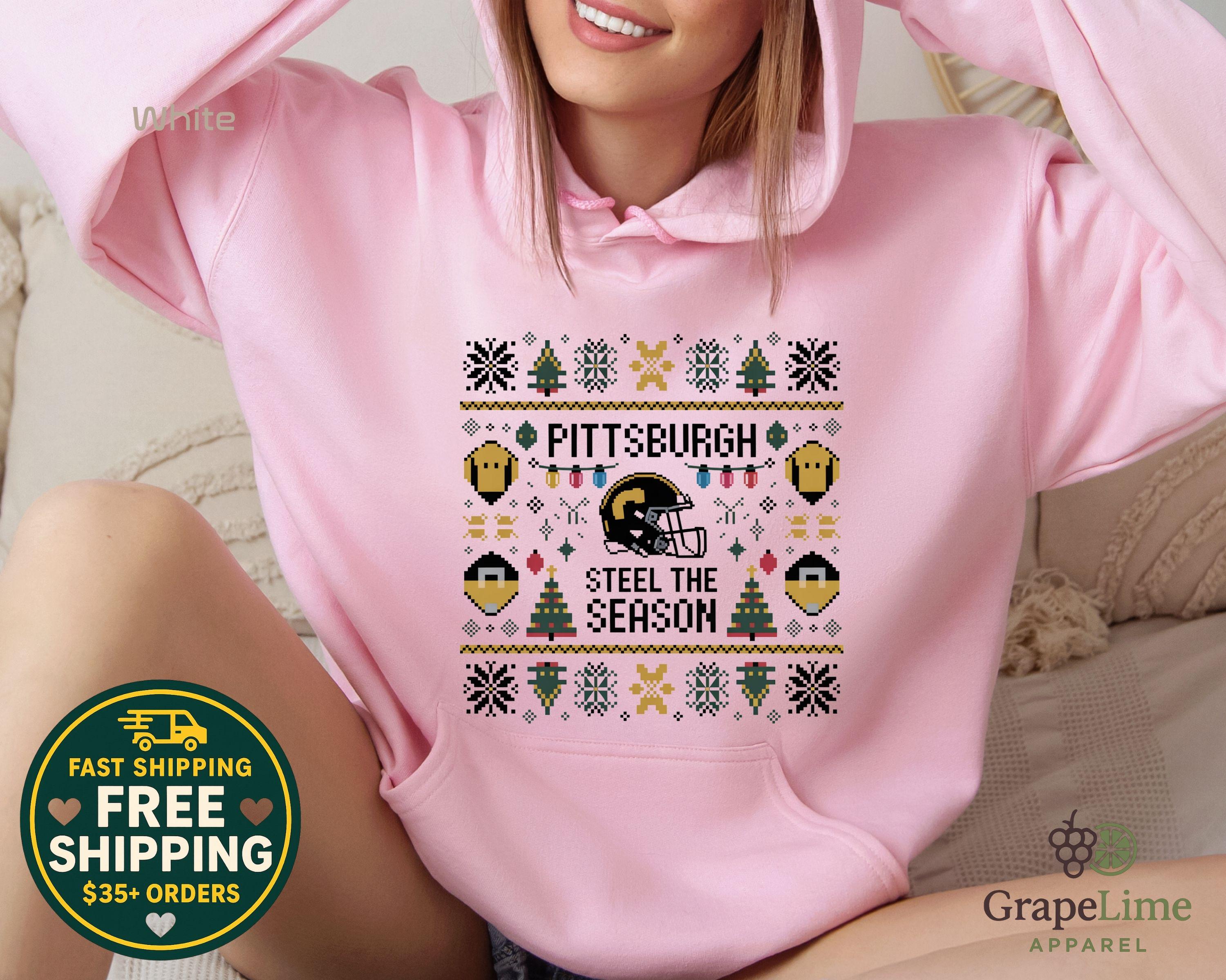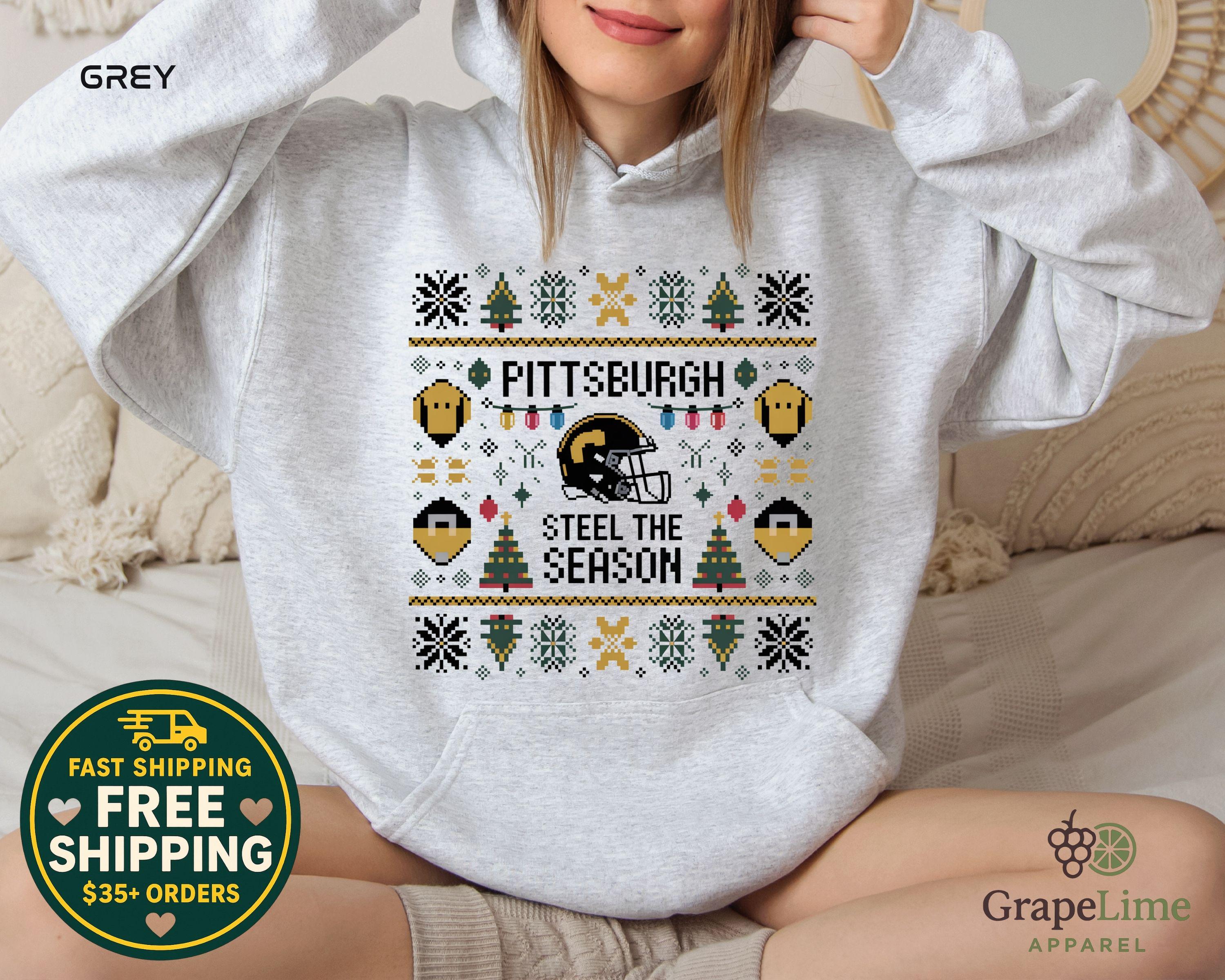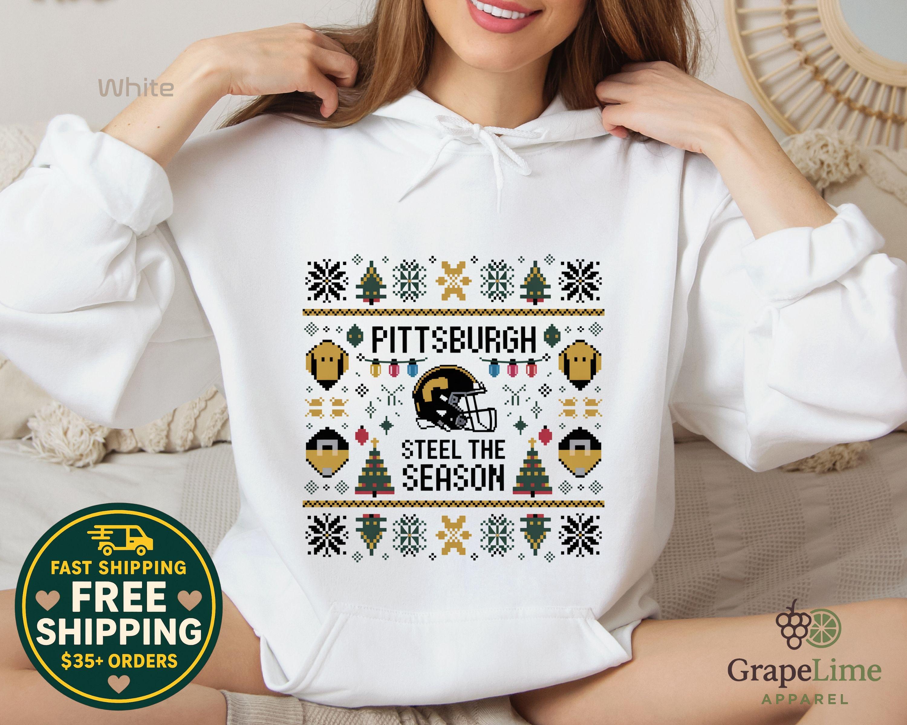 Pittsburgh Football Ugly Christmas Steel The Season Sweatshirt - Gildan 18500, Printify Choice for Men & Women, Perfect Holiday Gift, Cozy Winter Outfit, 4 Color Options