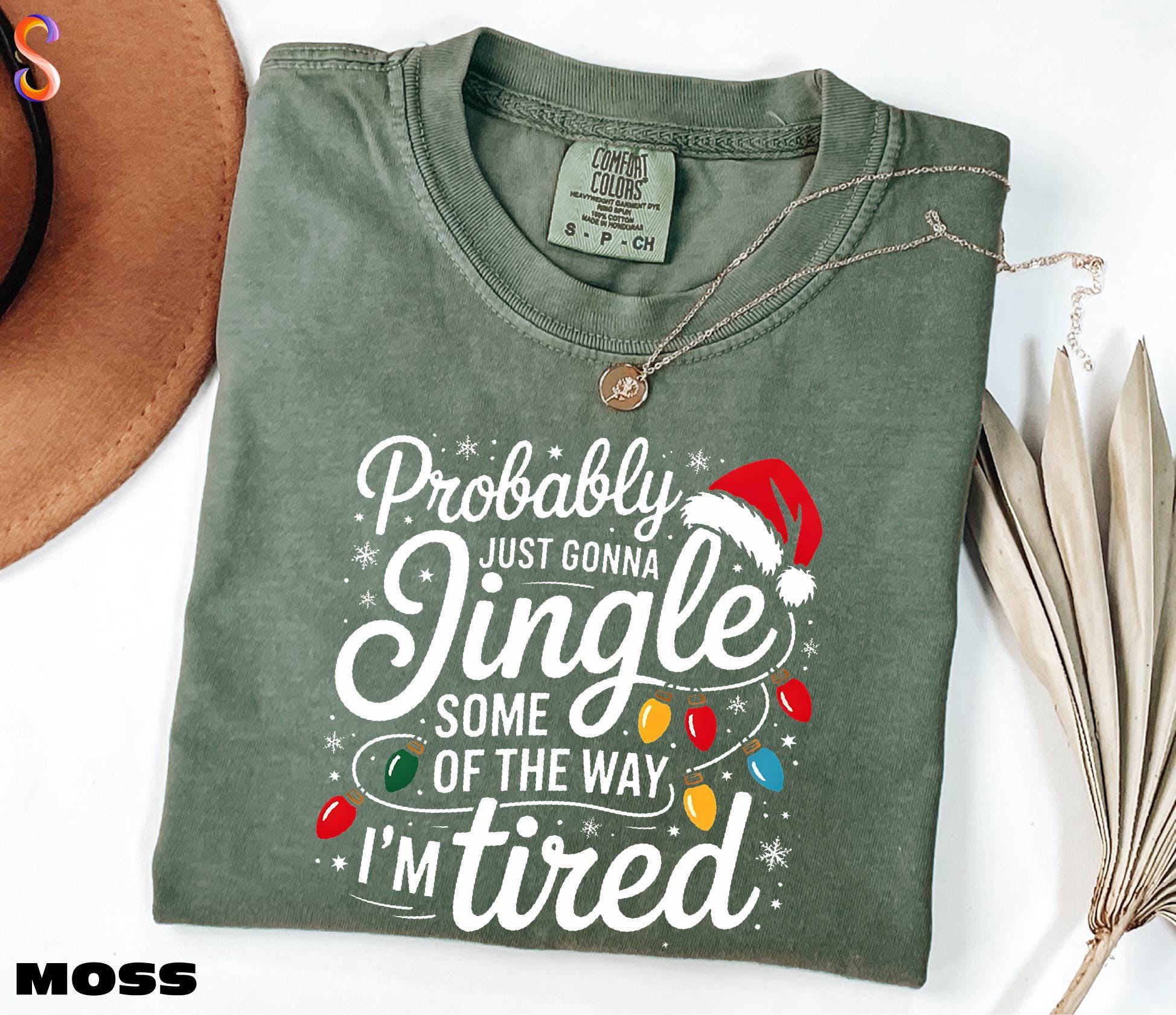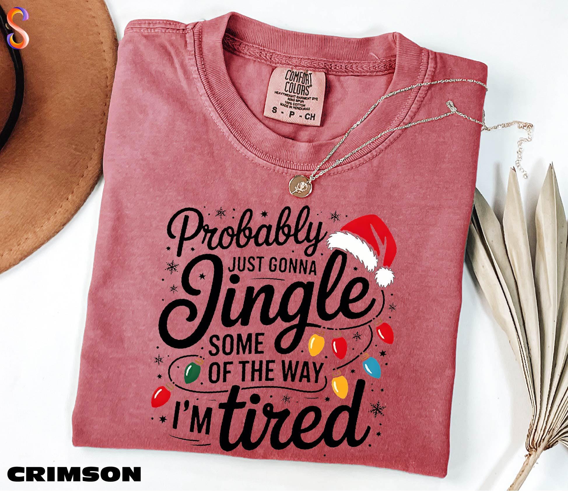 Probably Just Gonna Jingle Some Of The Way I'm Tired Unisex Holiday Sweatshirt, Comfort Colors® 1717 Garment-Dyed Christmas Tee, Perfect Gift for Men and Women, Cozy Winter Outfit