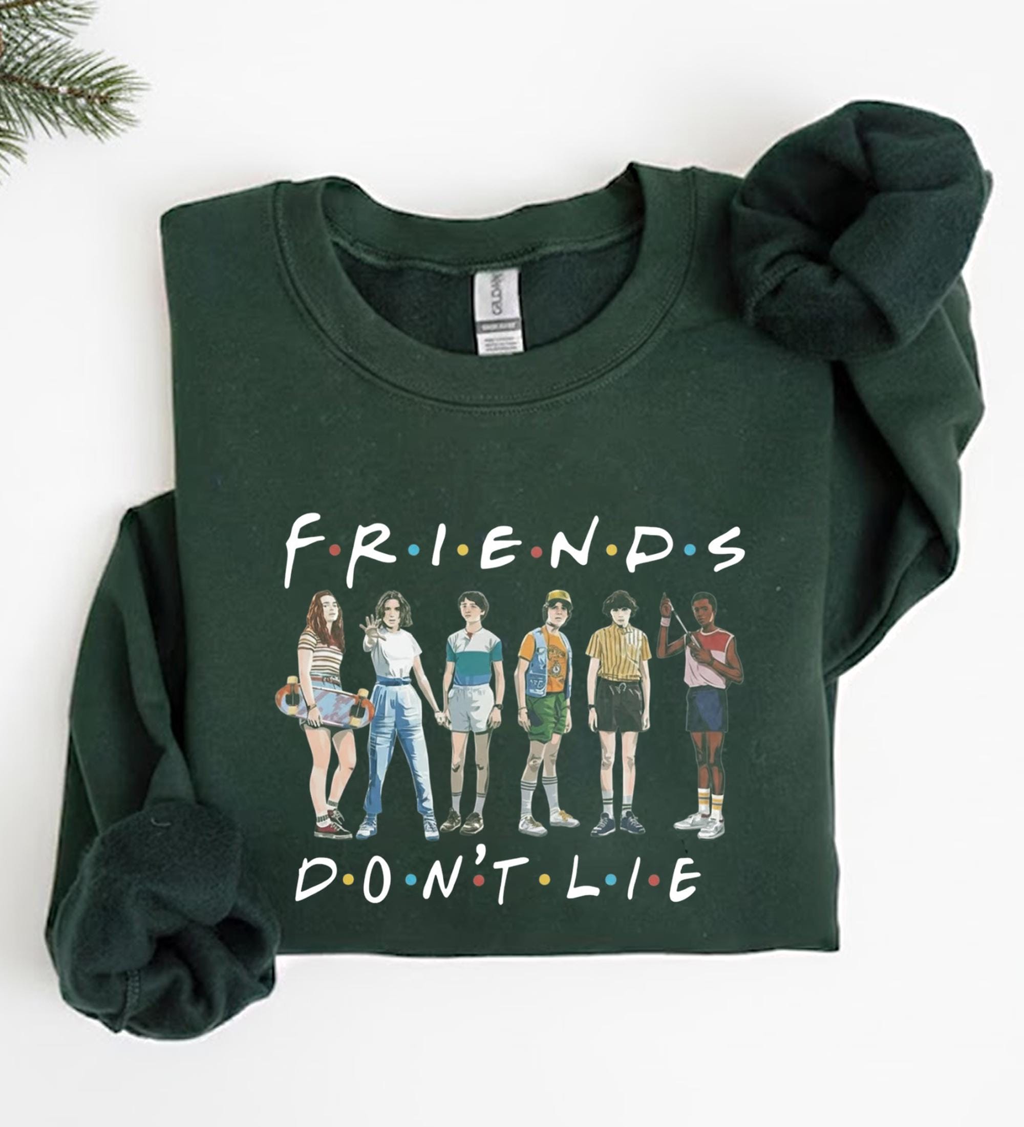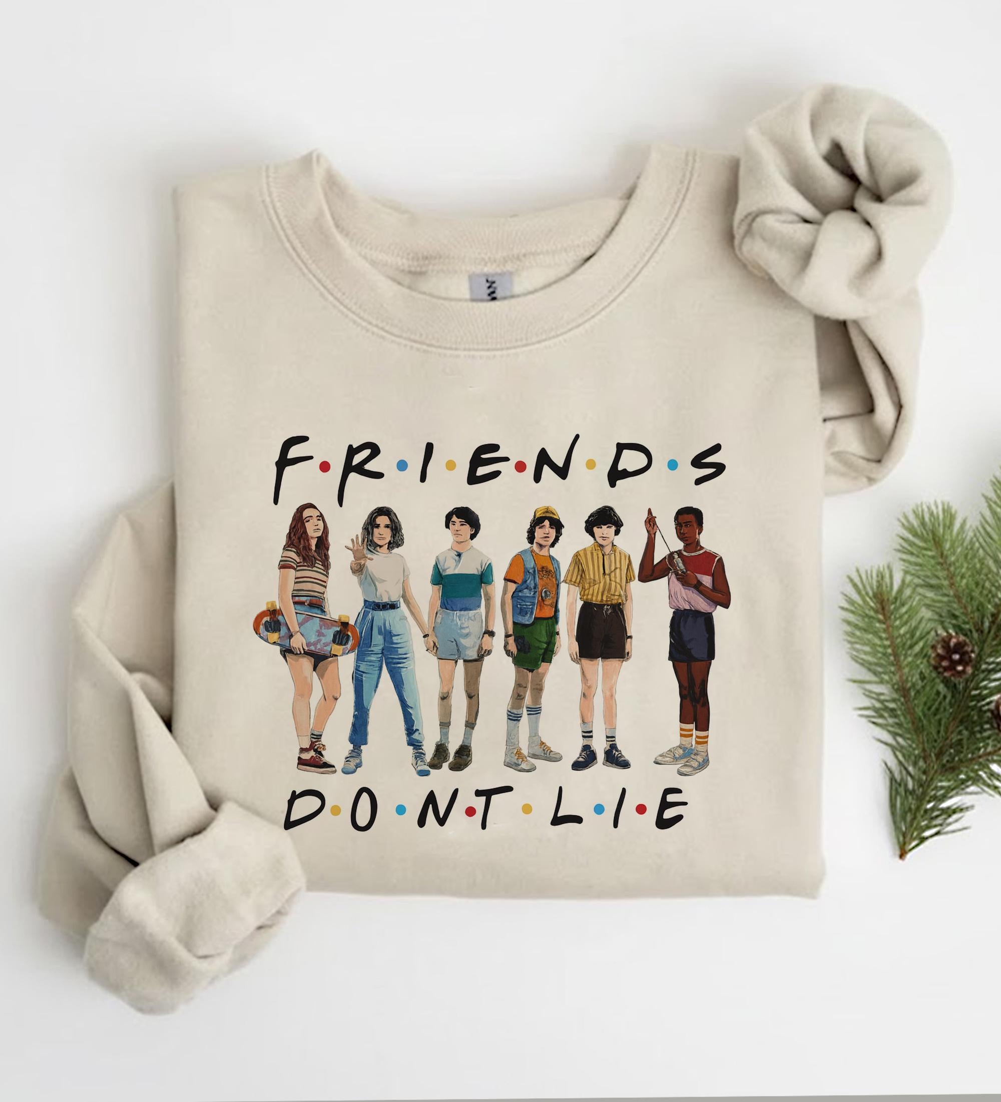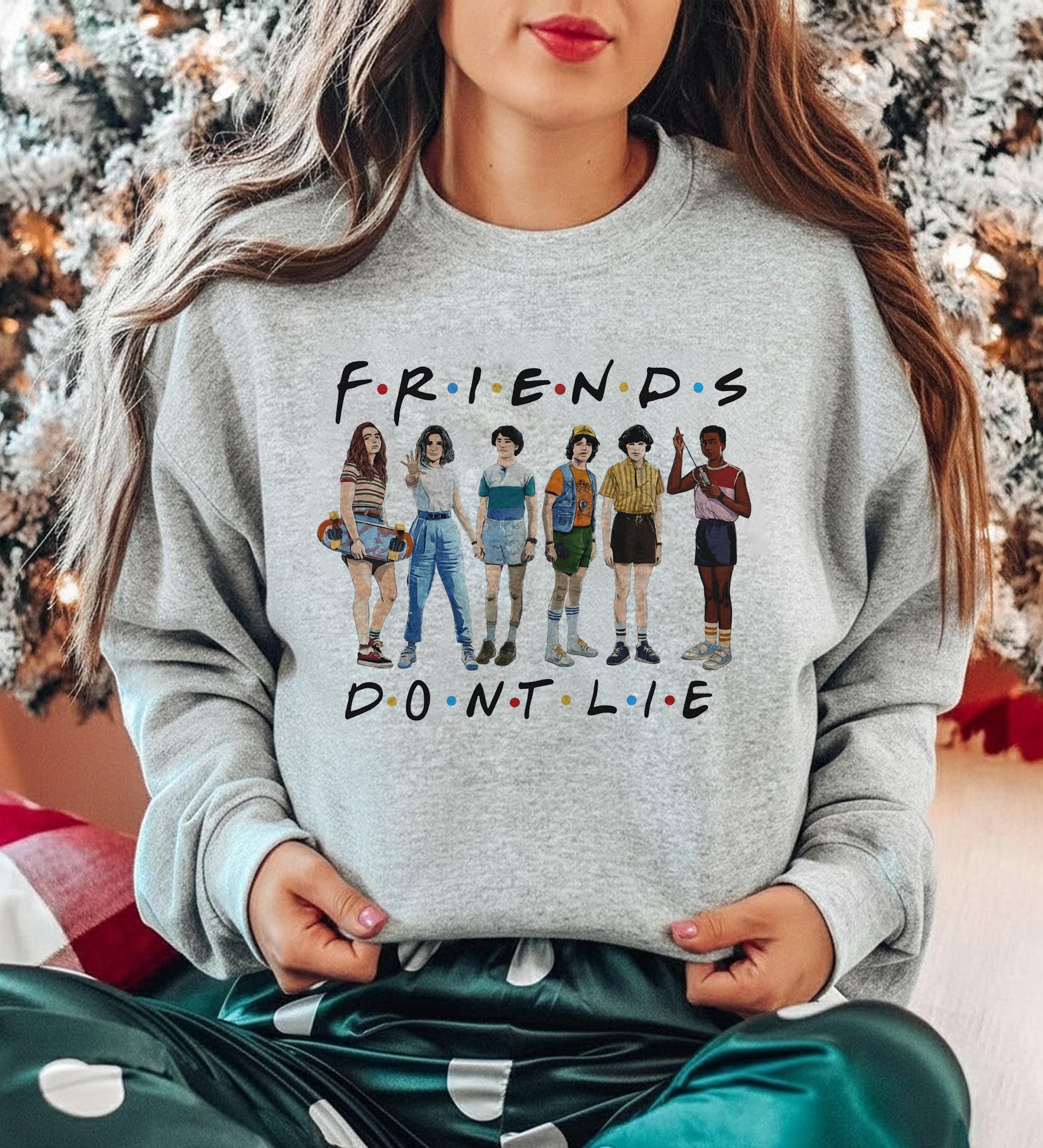 Retro 90s Friends Don't Lie Shirt, Gildan 18000 Stranger Christmas Sweatshirt - Cozy Unisex Gift, Printify Choice for Women & Men