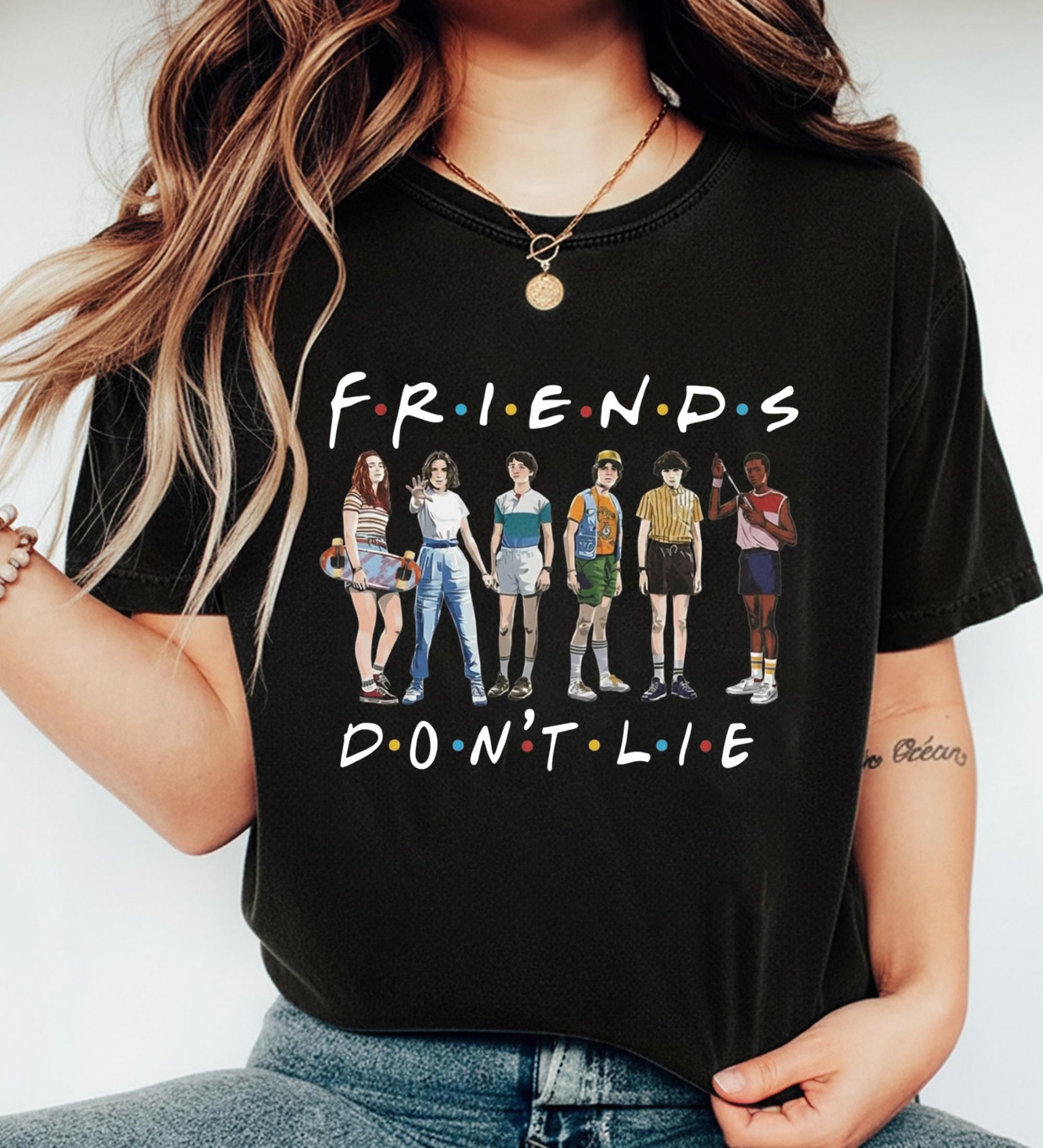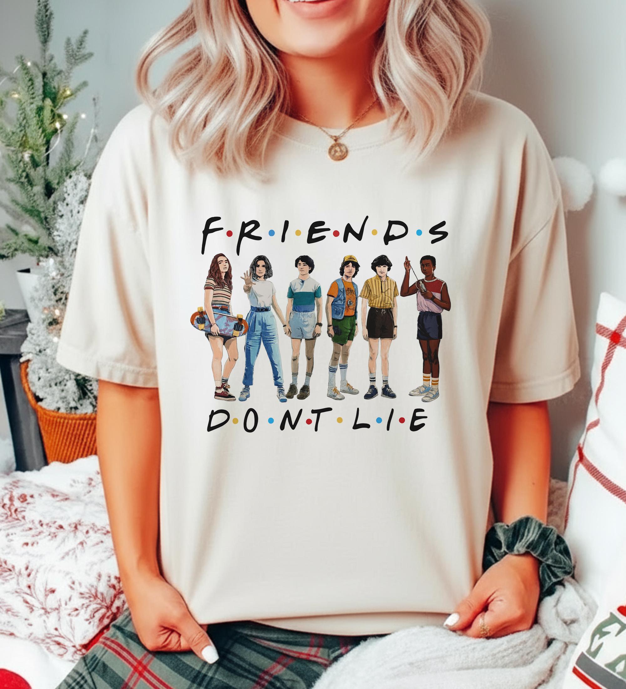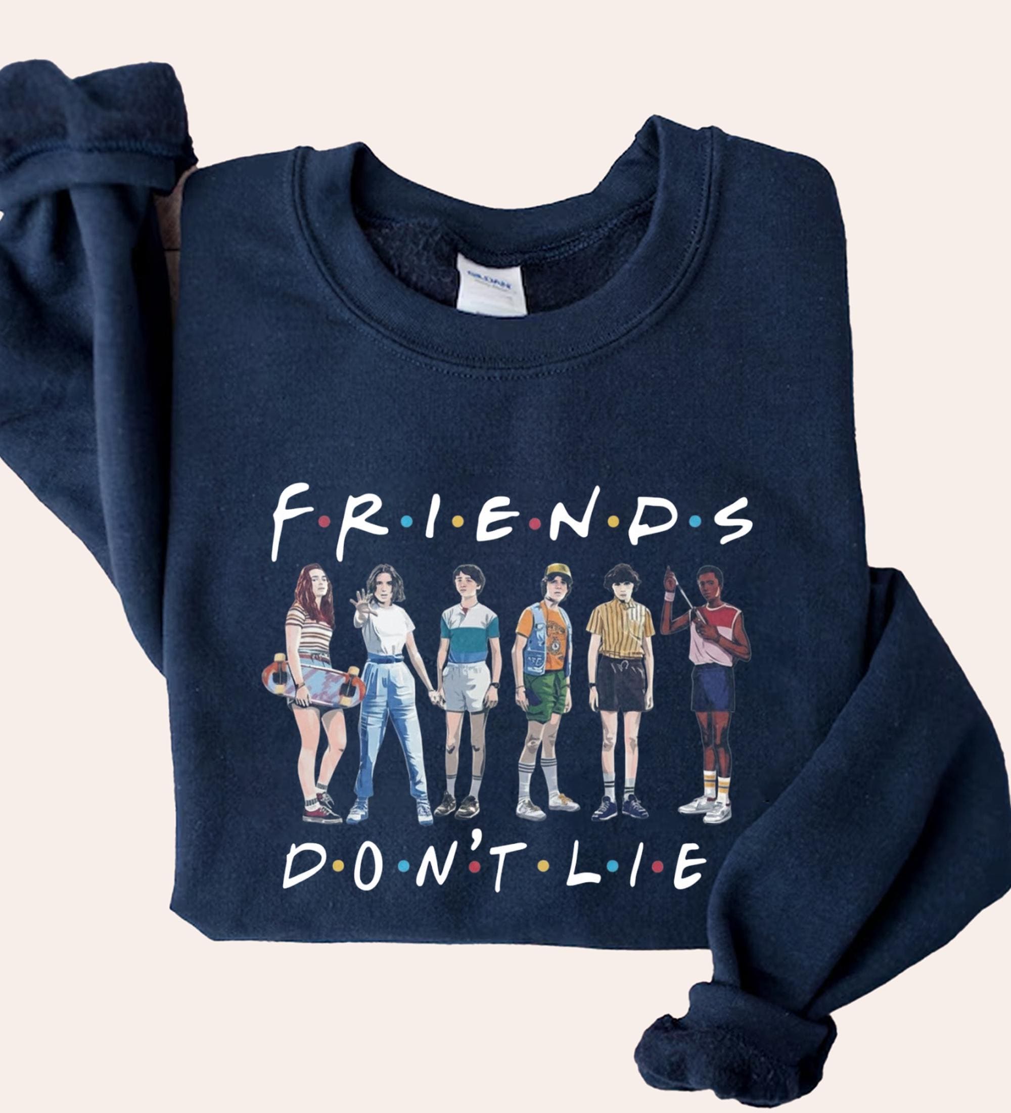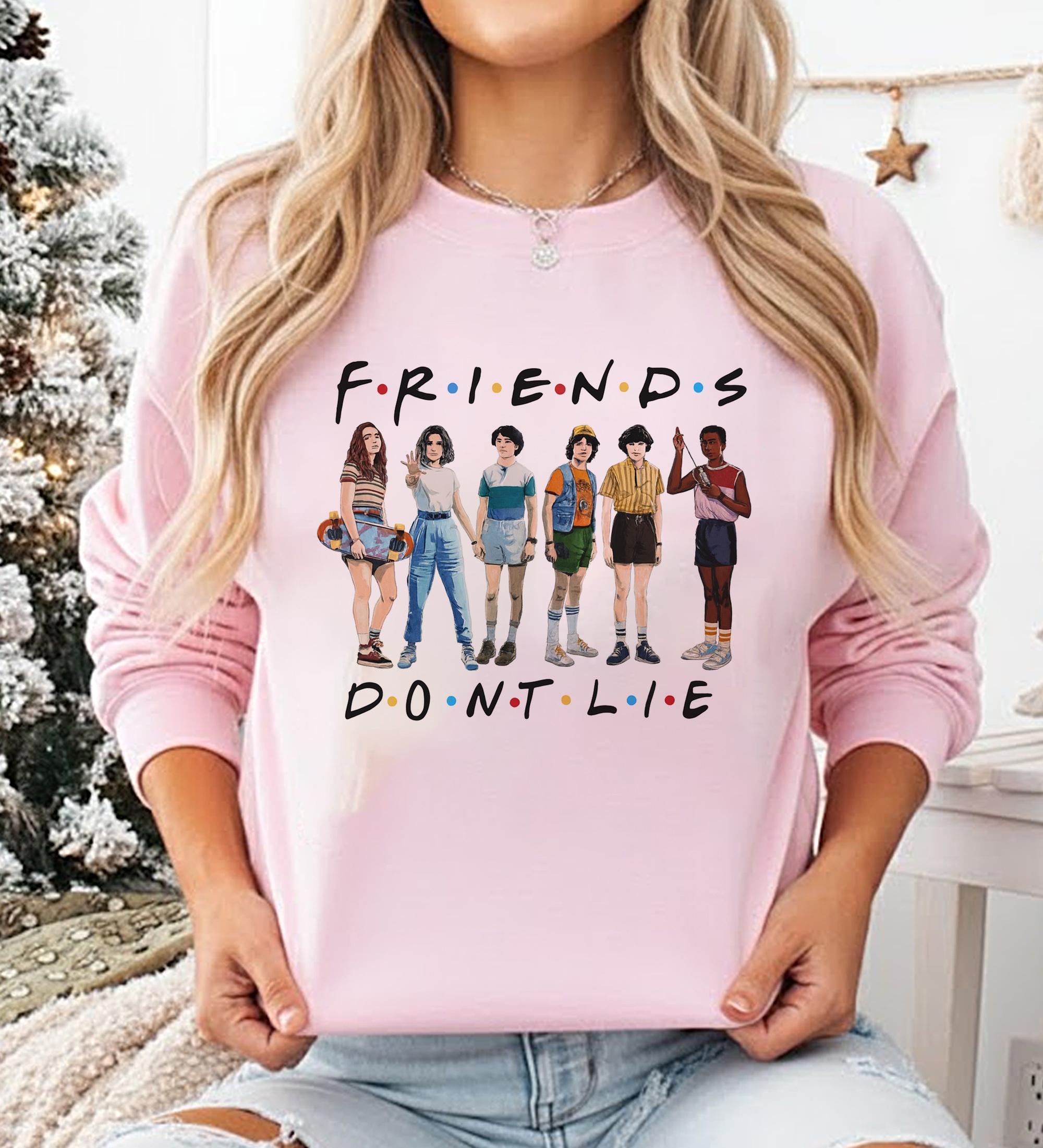 Retro 90s Friends Don't Lie Shirt, Gildan 18000 Stranger Christmas Sweatshirt - Cozy Unisex Gift, Printify Choice for Women & Men