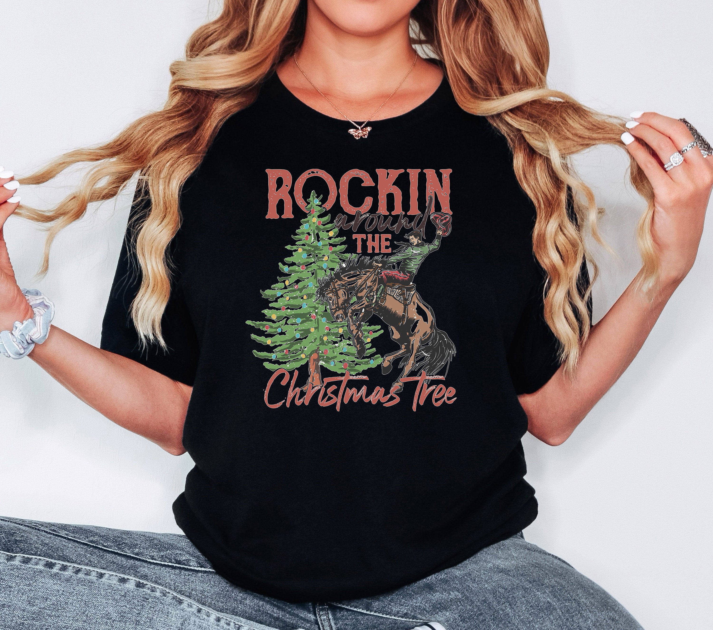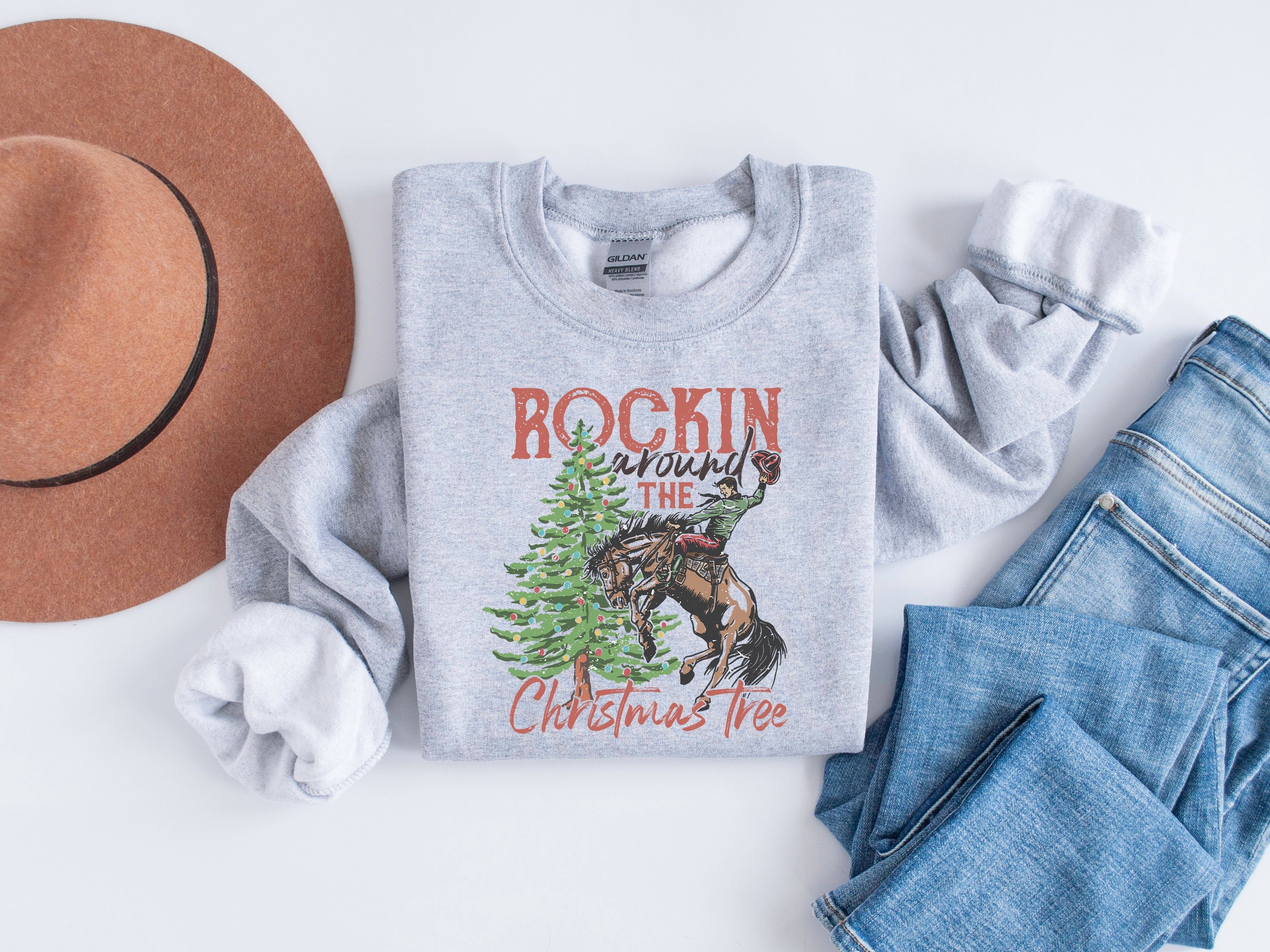 Retro Cowboy Christmas Tree Sweatshirt for Women, Western Holiday Sweater by Gildan 18000 - Perfect Gift & Viral Holiday Outfit, Printify Choice, Cozy Winter Aesthetic
