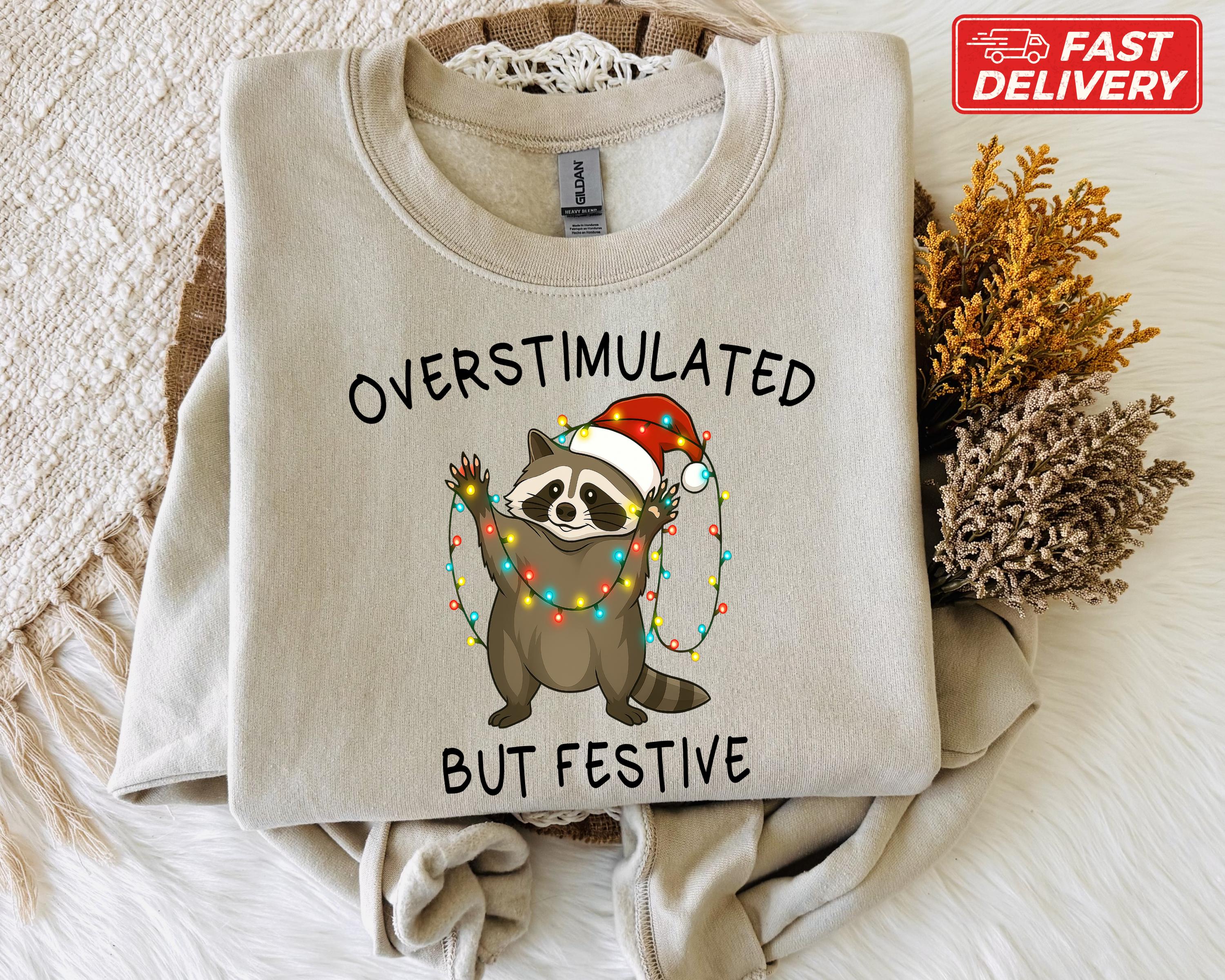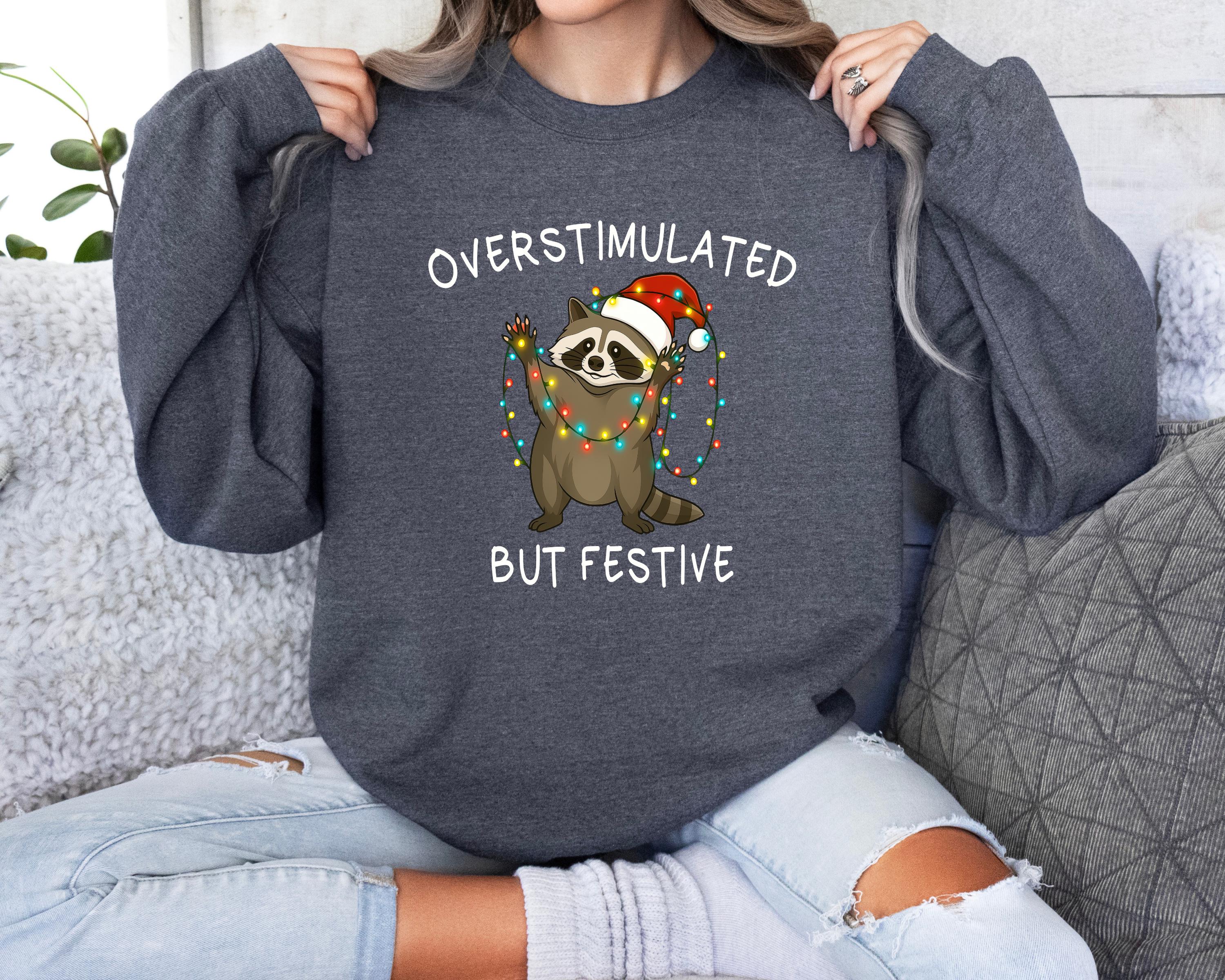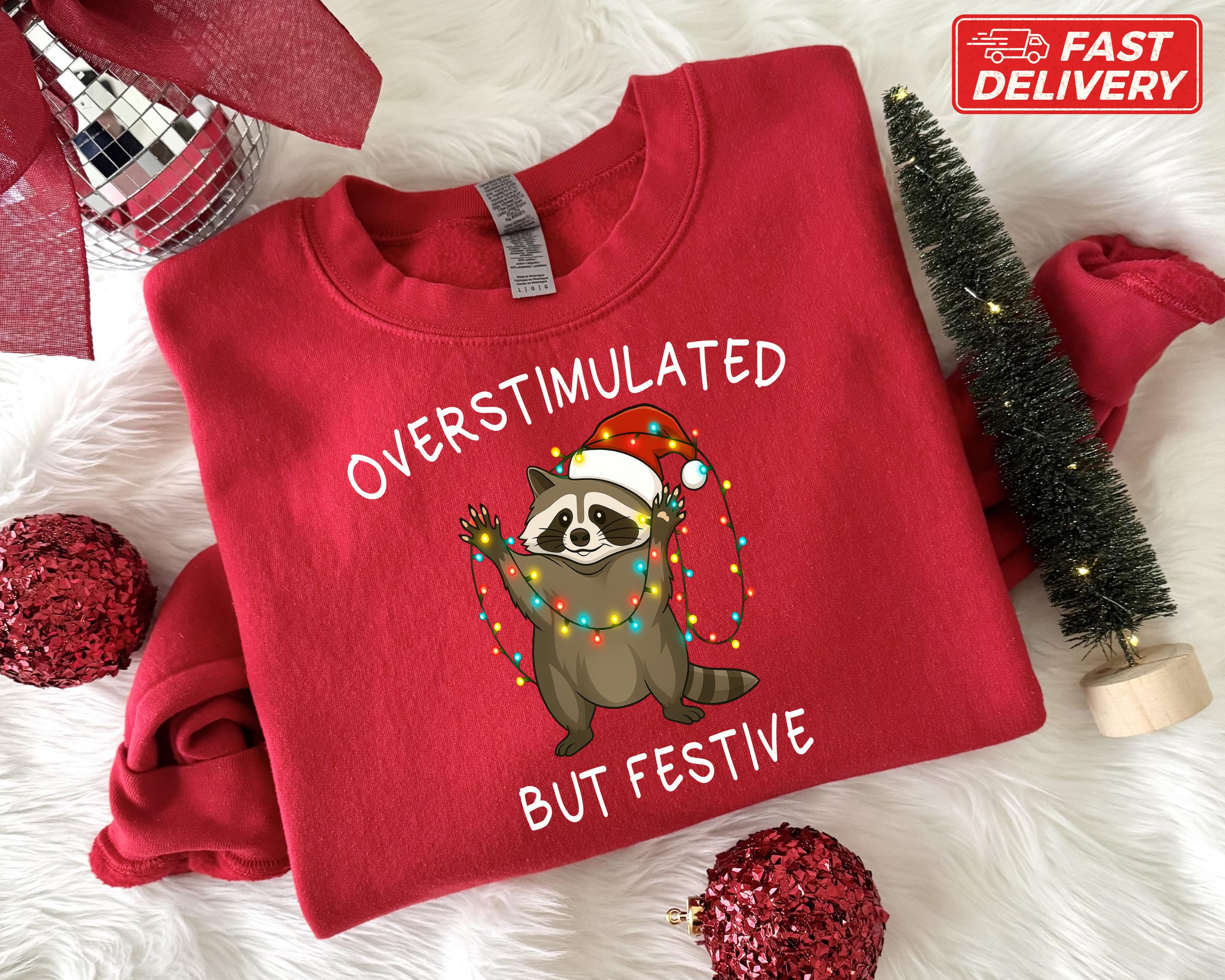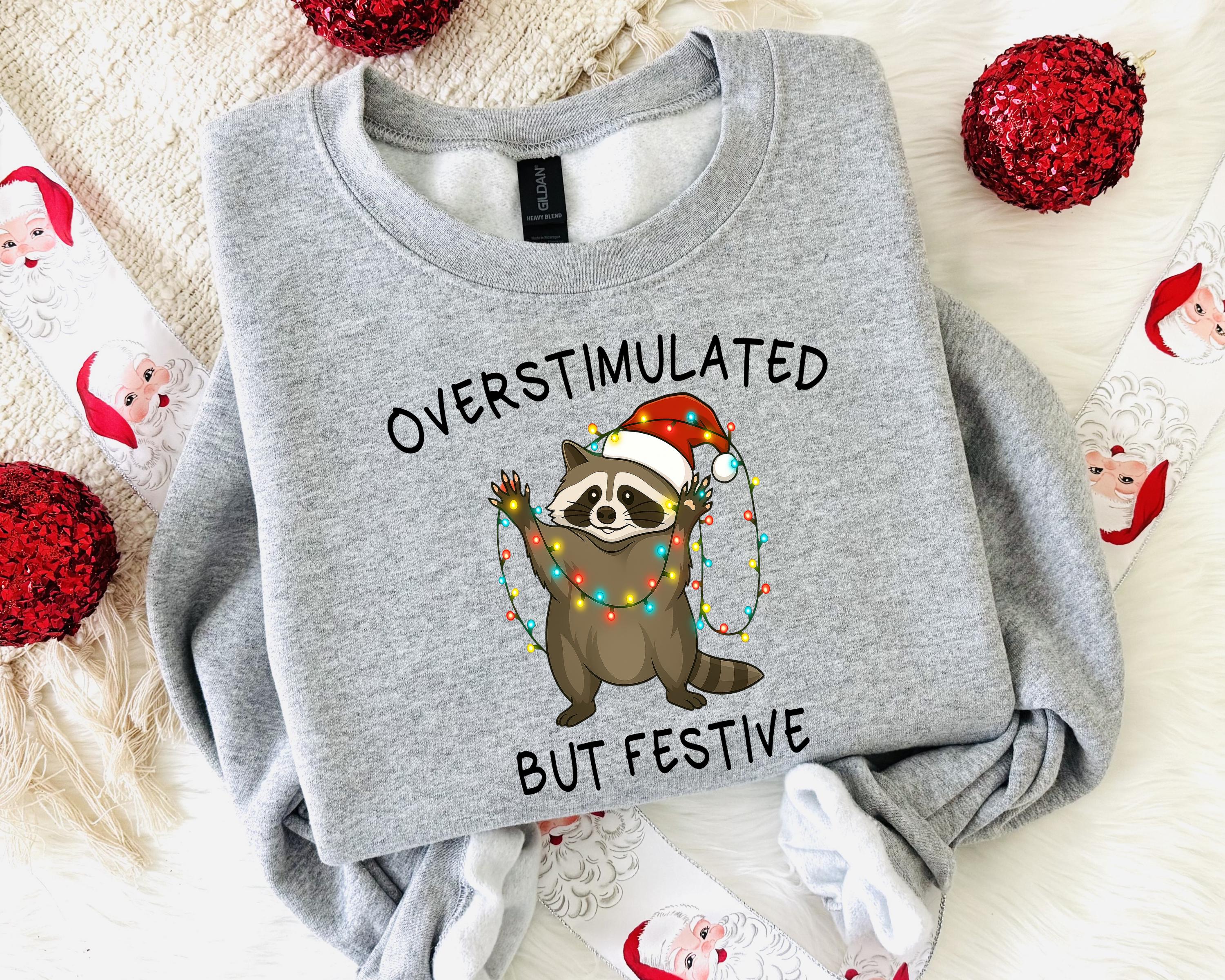Retro Festive Racoon Christmas Sweatshirt - Gildan 18000 Heavy Blend Crewneck for Women & Men, Funny Meme Holiday Outfit, Perfect Gift, Cozy & Durable Unisex Printify Choice