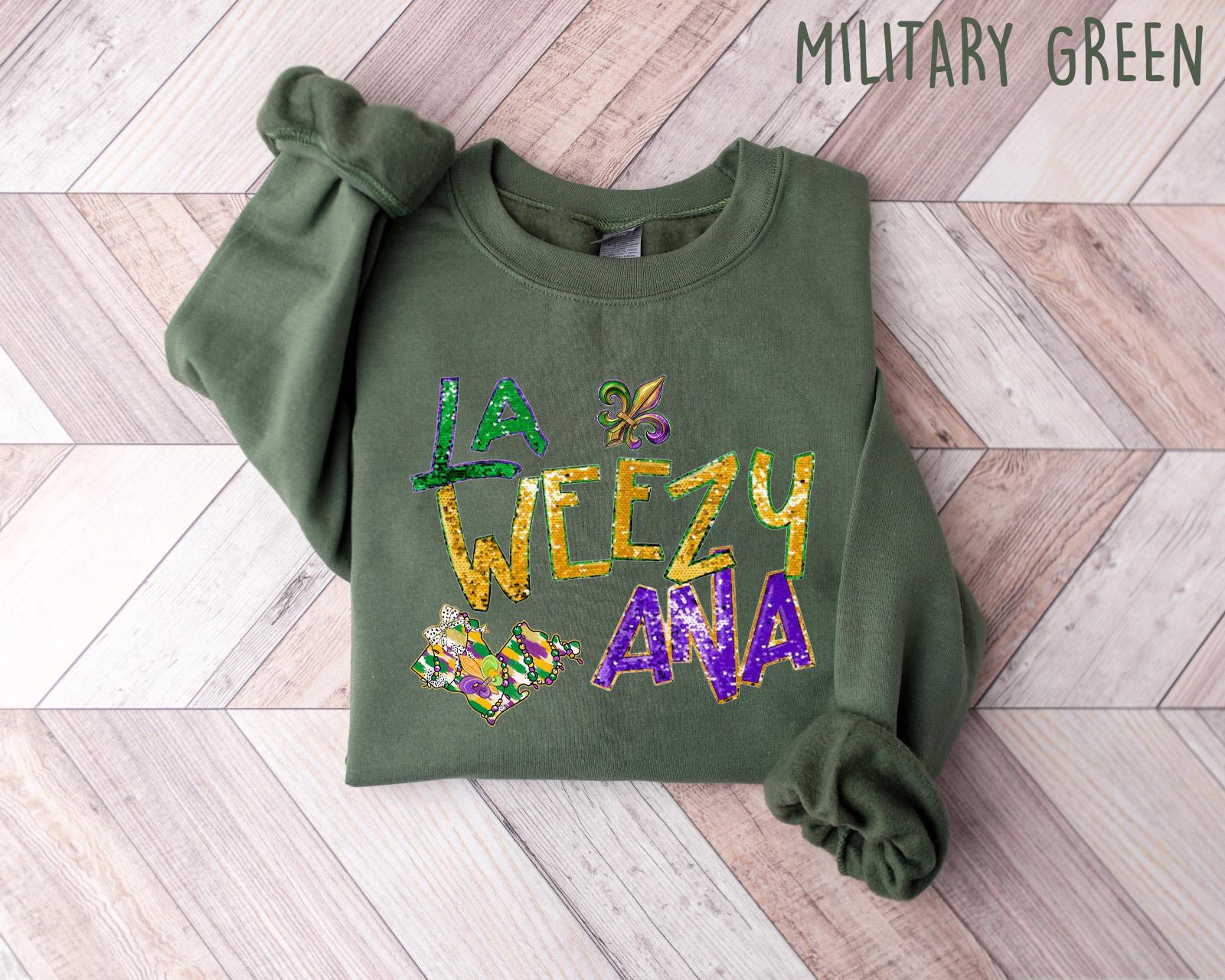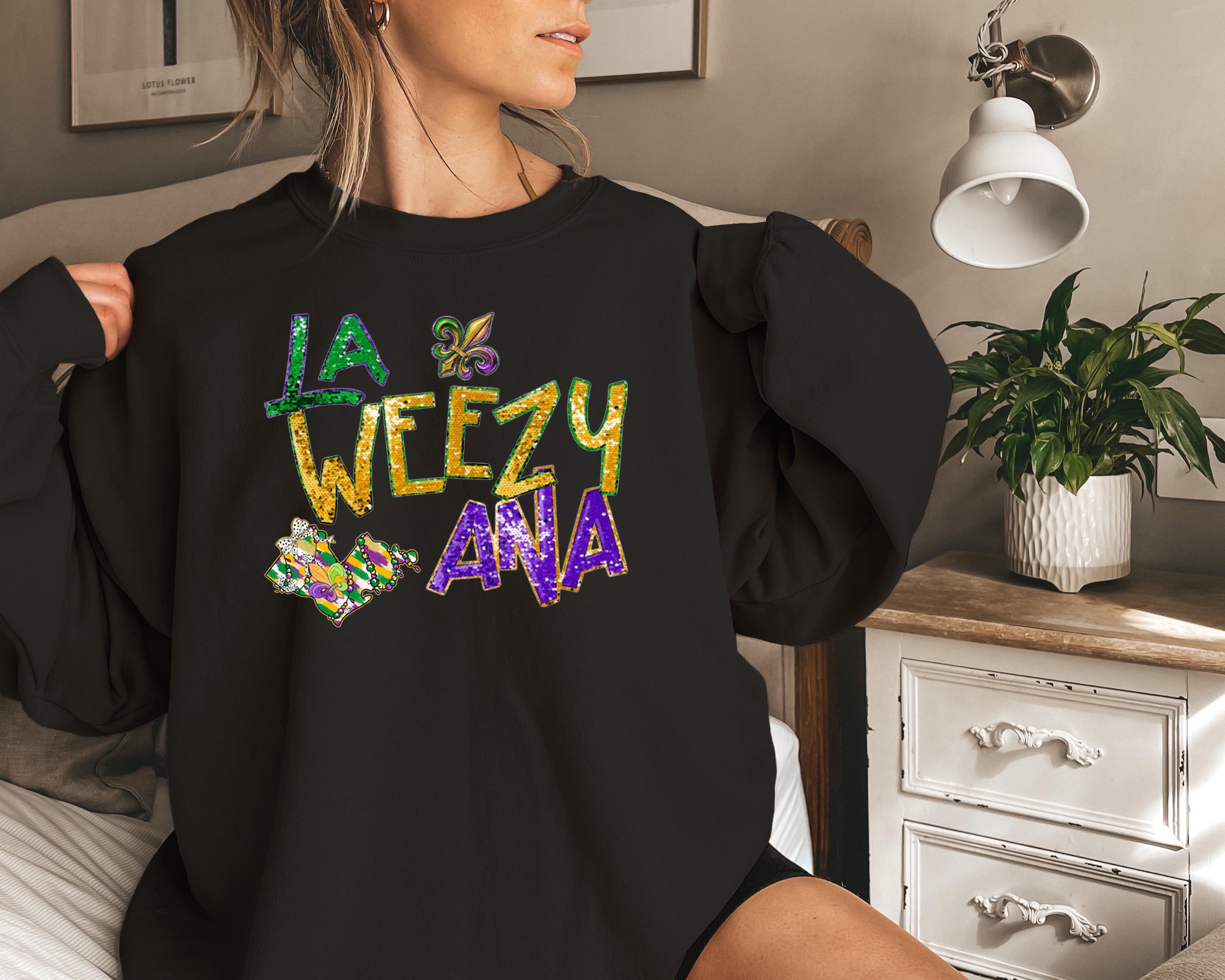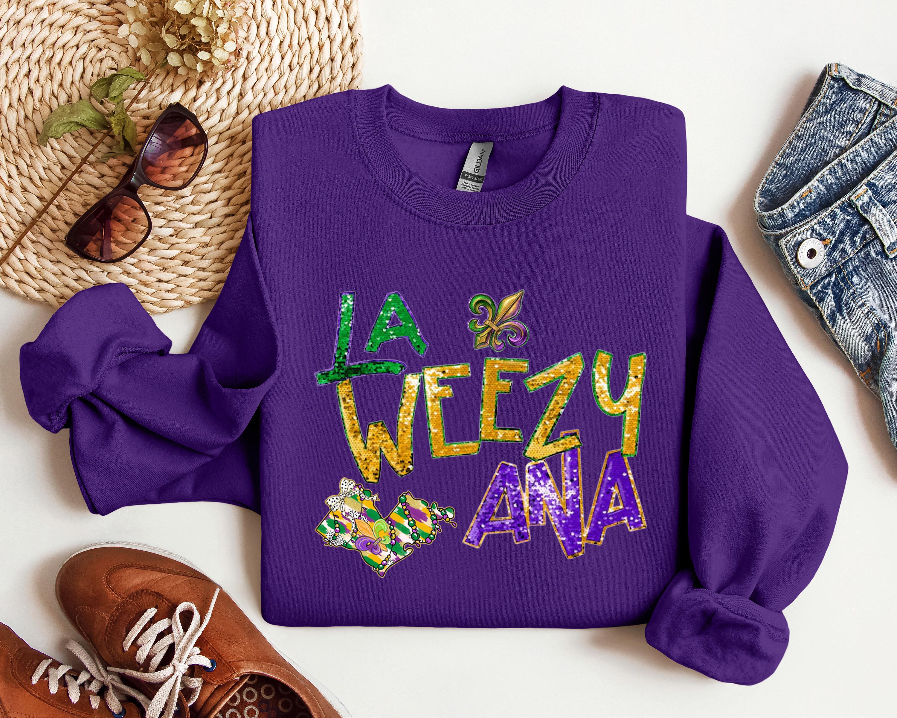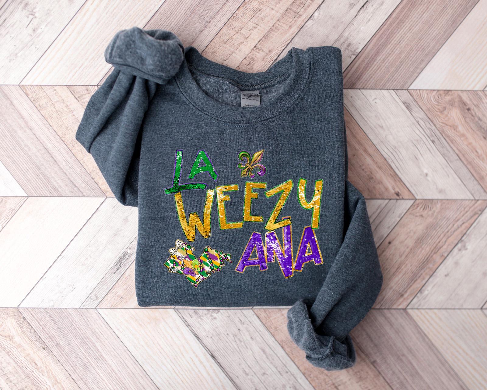 Retro La Weezy Ana Gildan 18000 Sweatshirt: Funny Mardi Gras Outfit for Women, Cozy Printify Choice, Trendy Aesthetic Gift