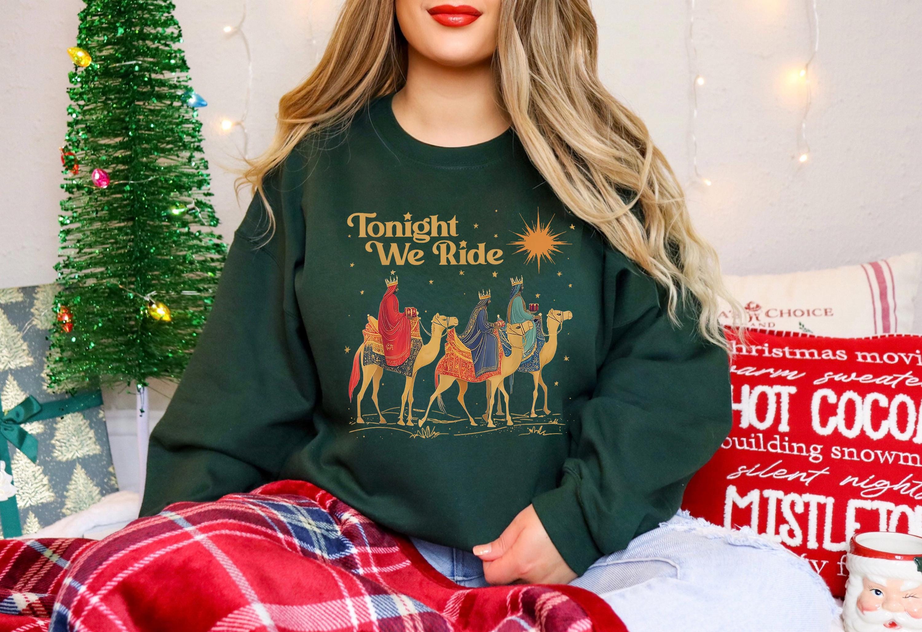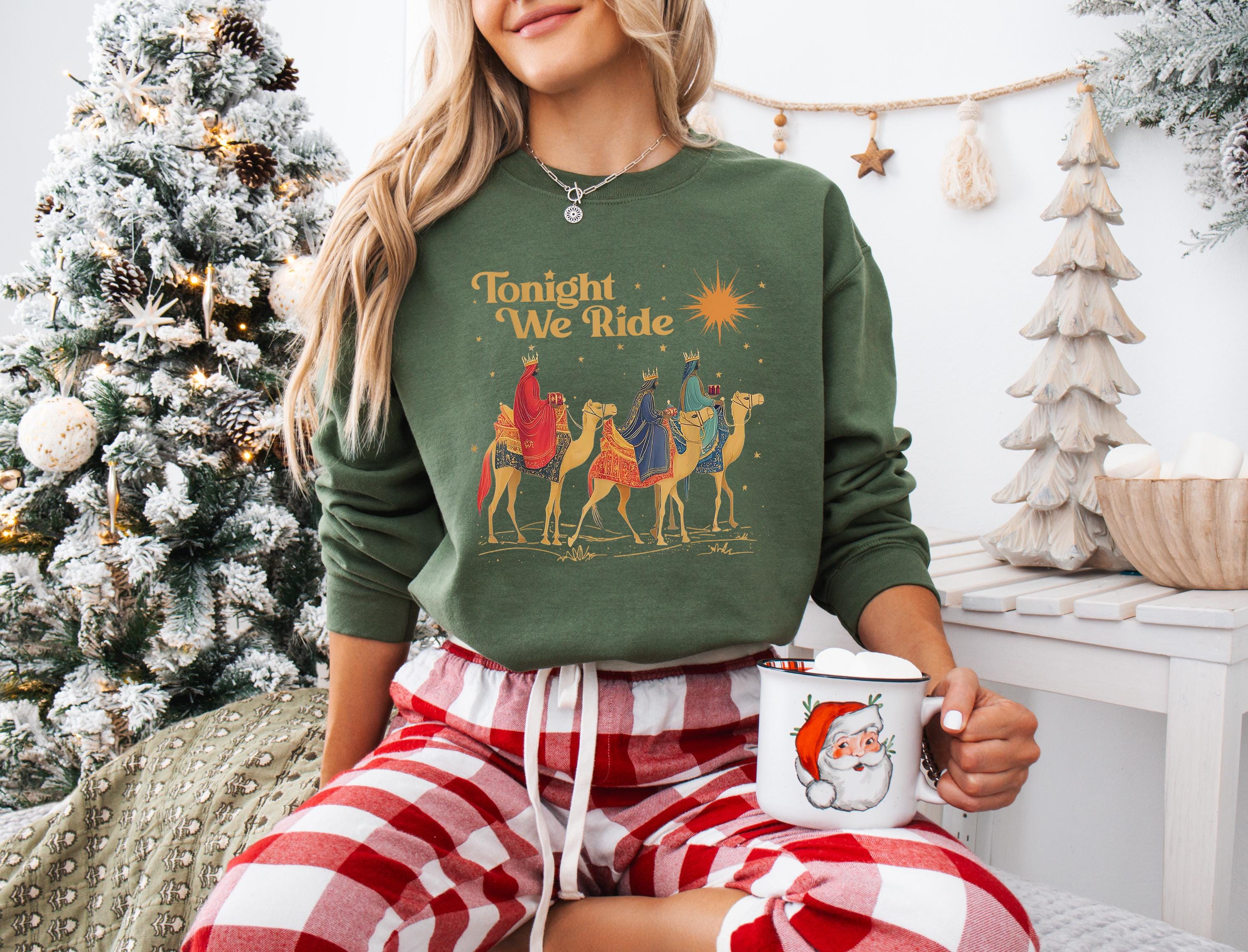 Retro Tonight We Ride Christmas Christian Sweatshirt, Gildan 18000, Cozy Faith Gift for Men & Women, Printify Choice Xmas Outfit