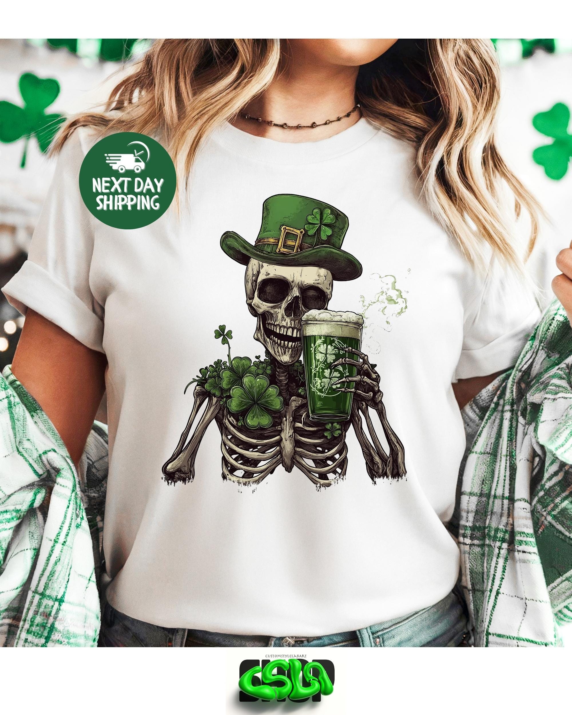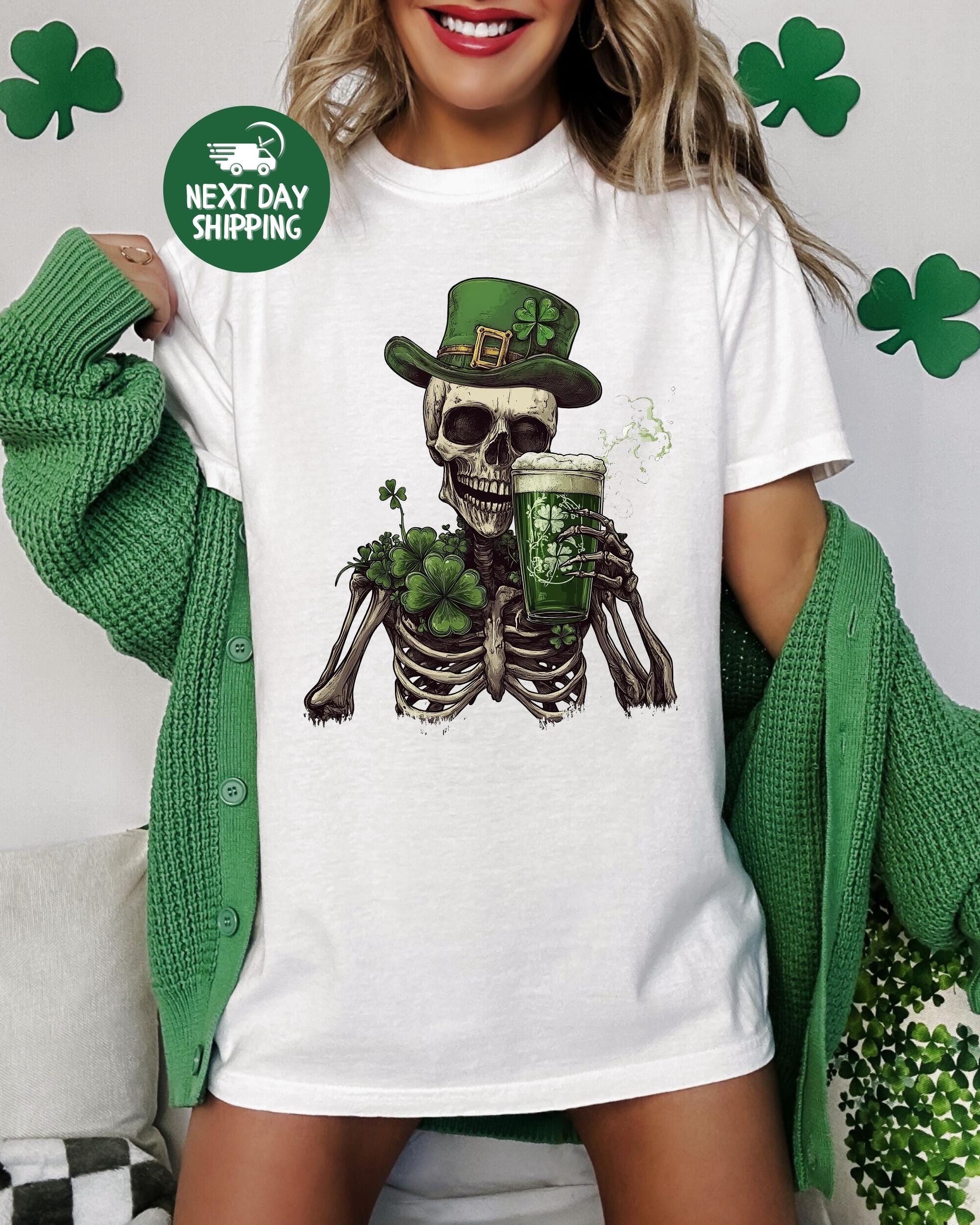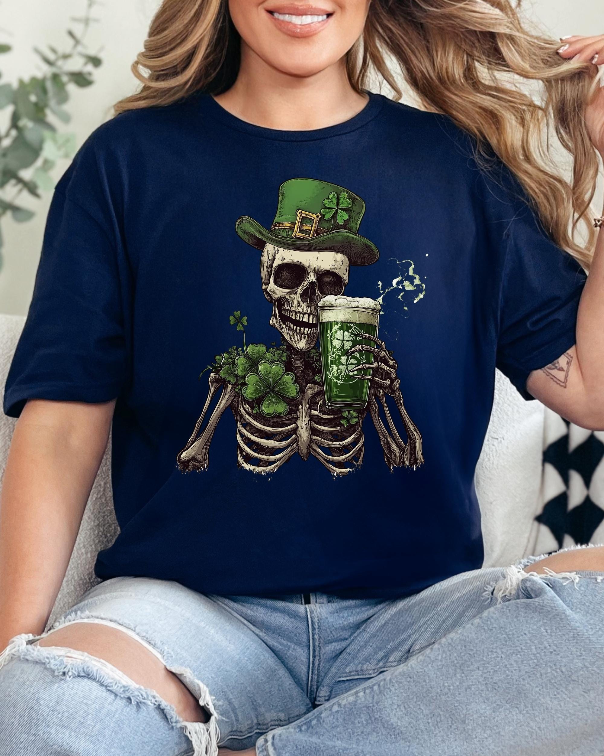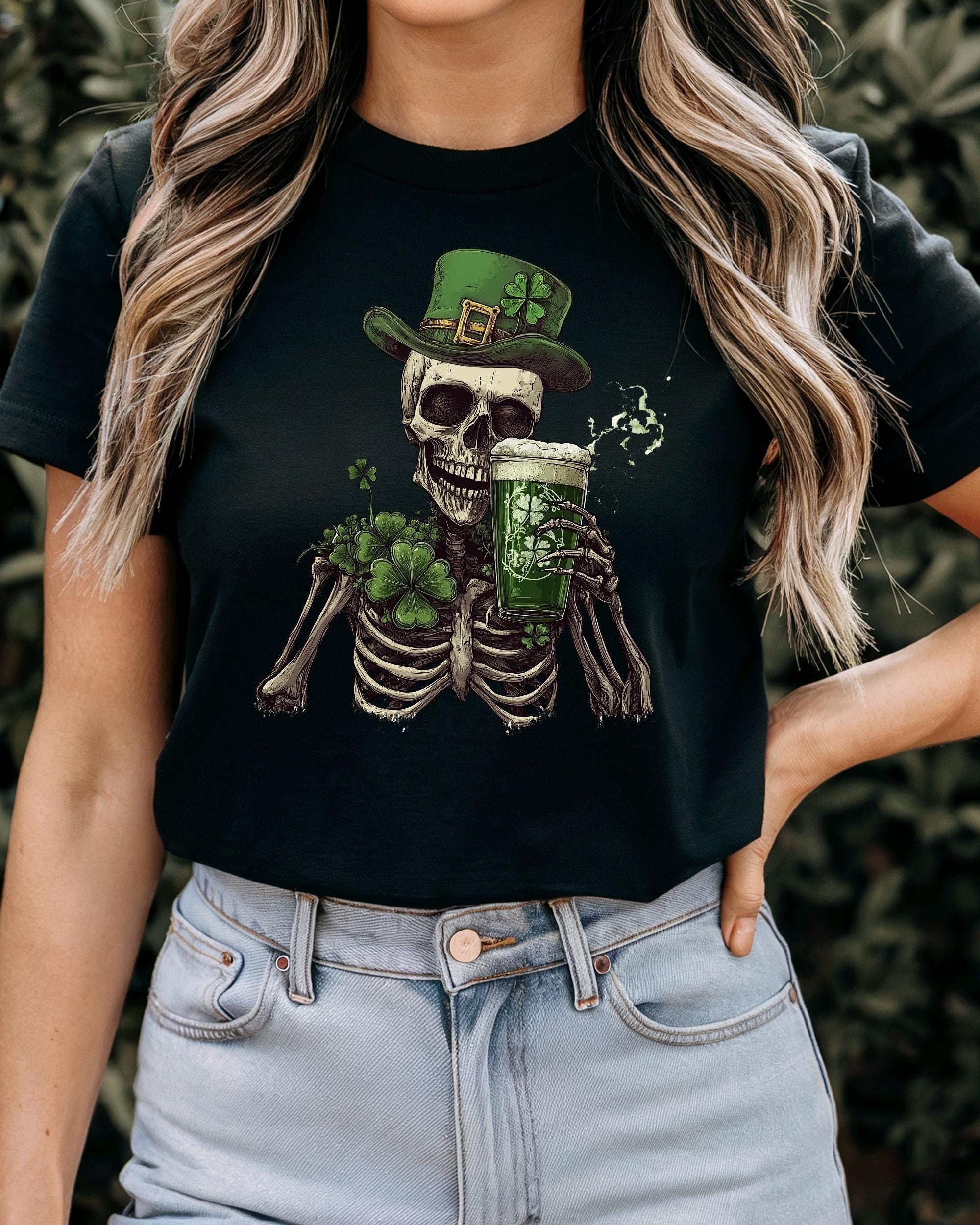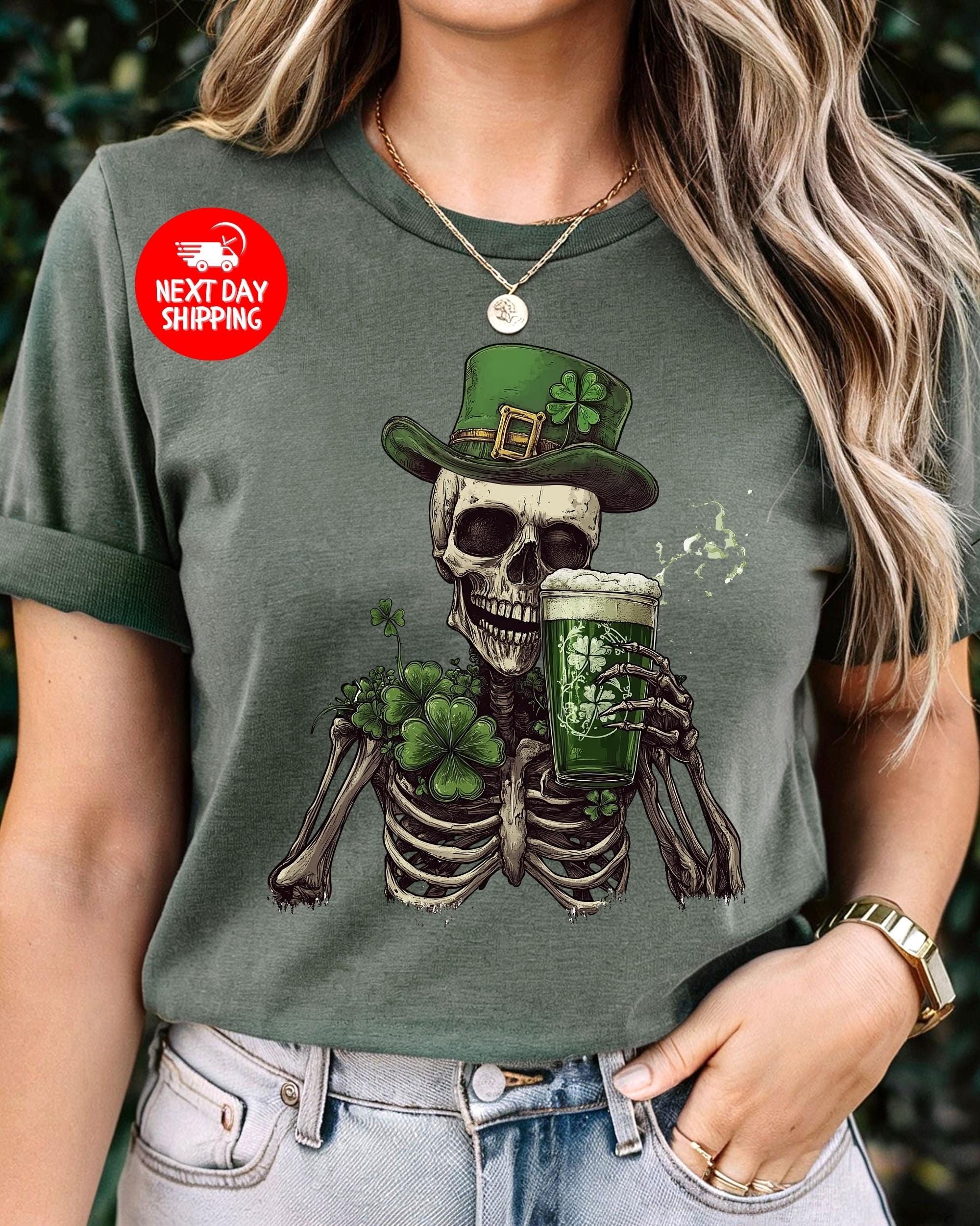 St Patrick's Day Skeleton Shamrock Shirt Slainte Lucky Tee, Gildan 5000 Classic Tee, unisex heavy cotton, festive outfit, gift for men women