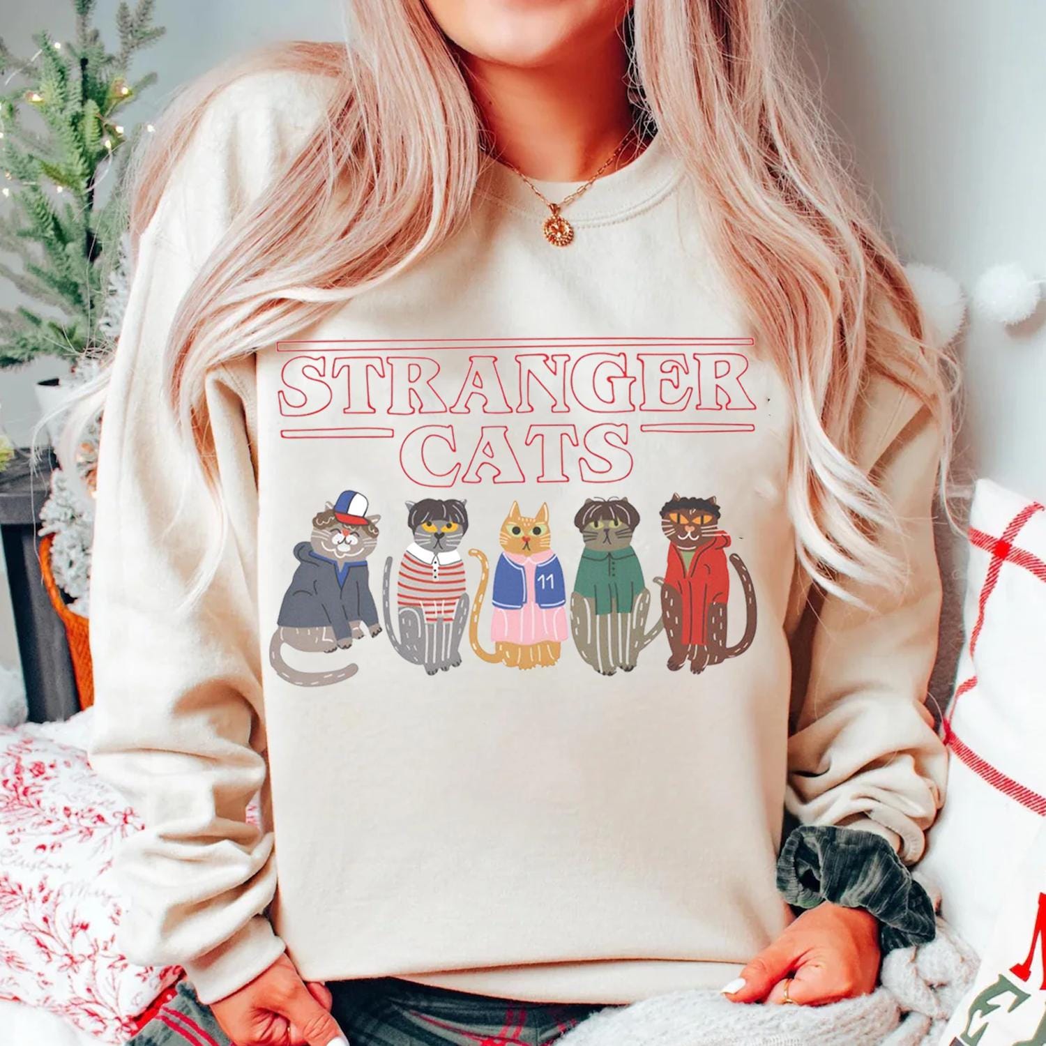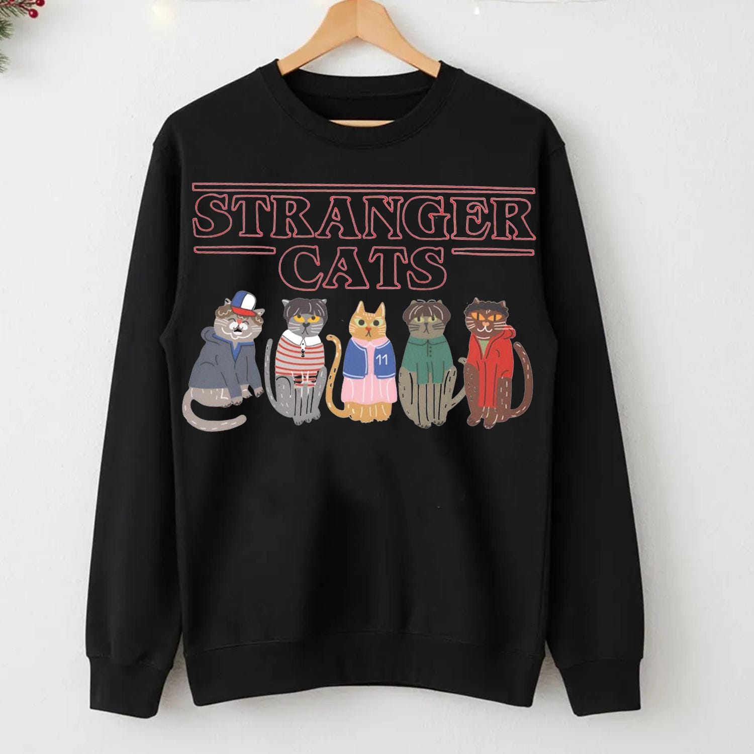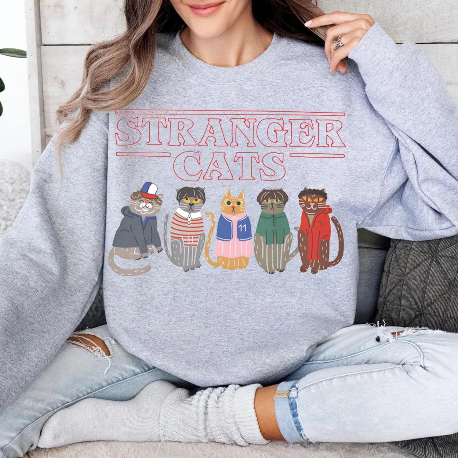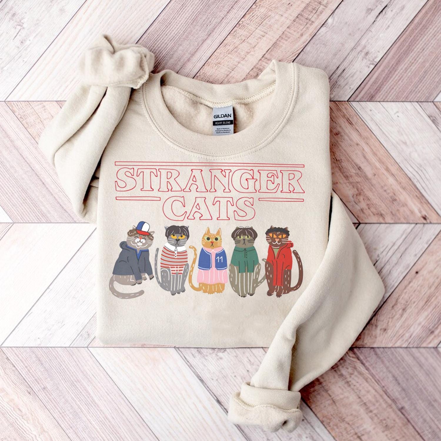 Stranger Cats Shirt, Retro 80s Sci Fi Cat Tee, Gildan 18000 Unisex Sweatshirt, Geek Pop Culture Gift, Printify Choice for Cat Lovers