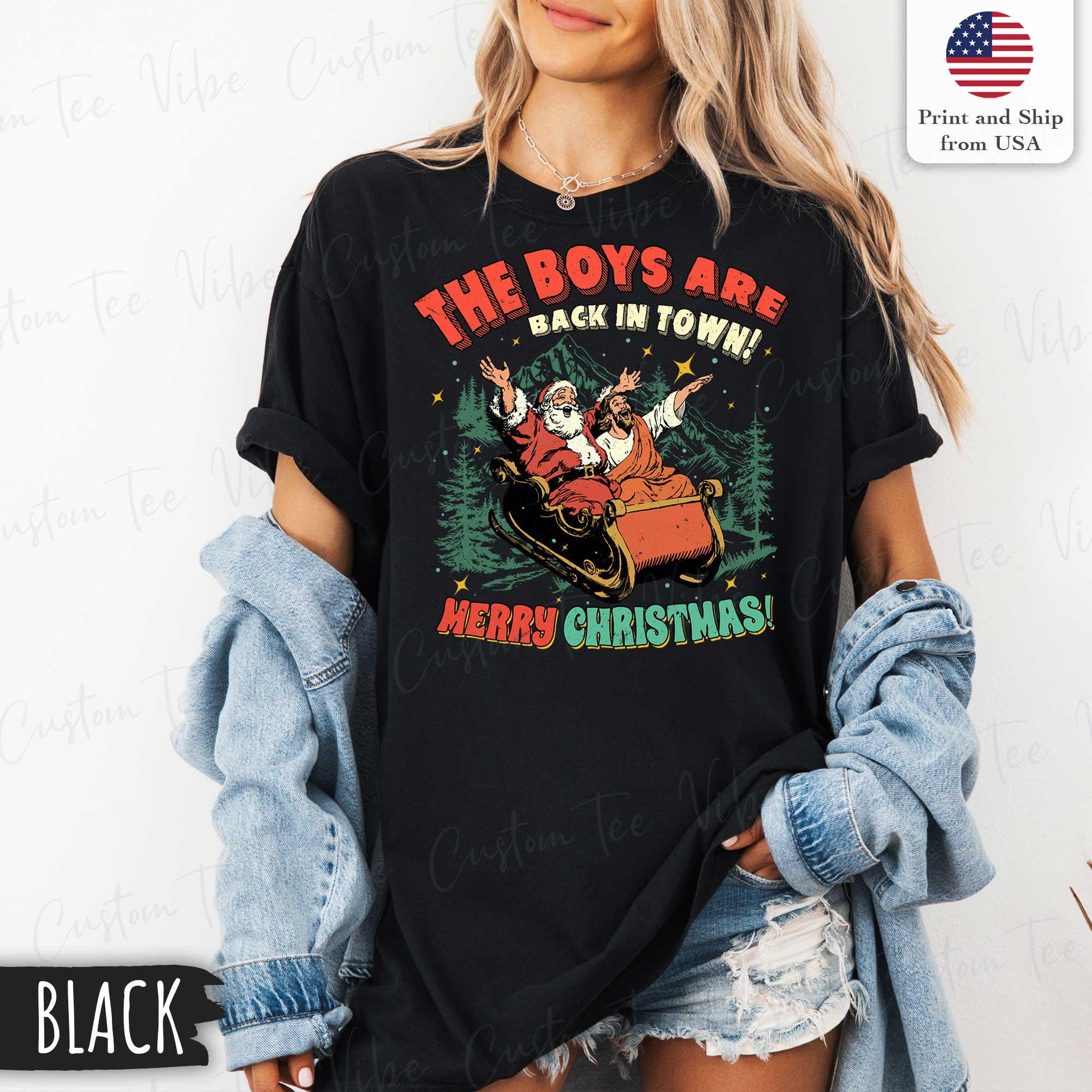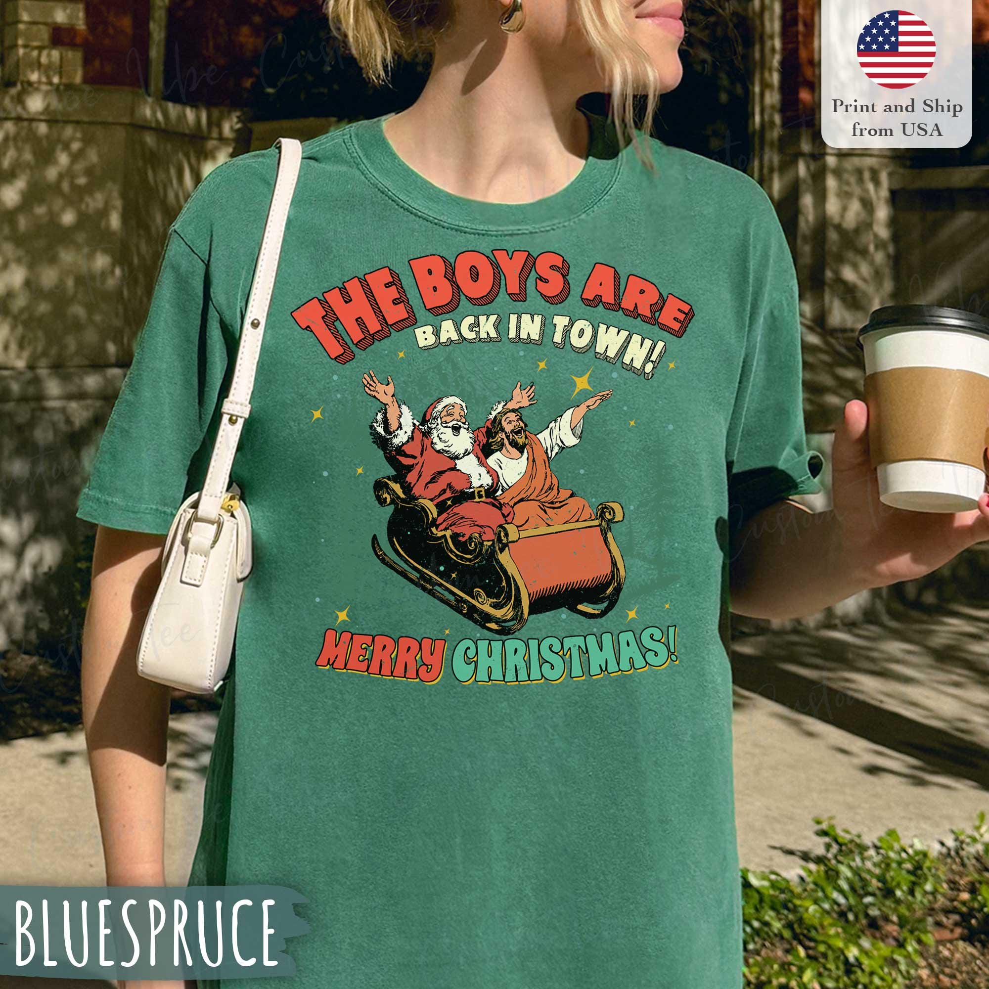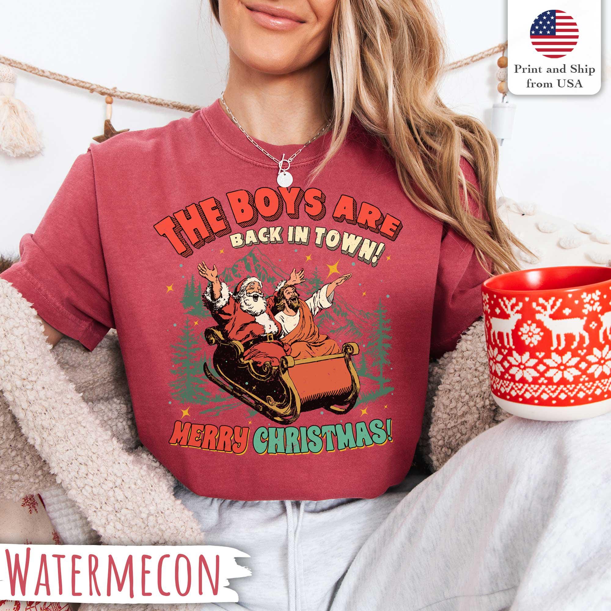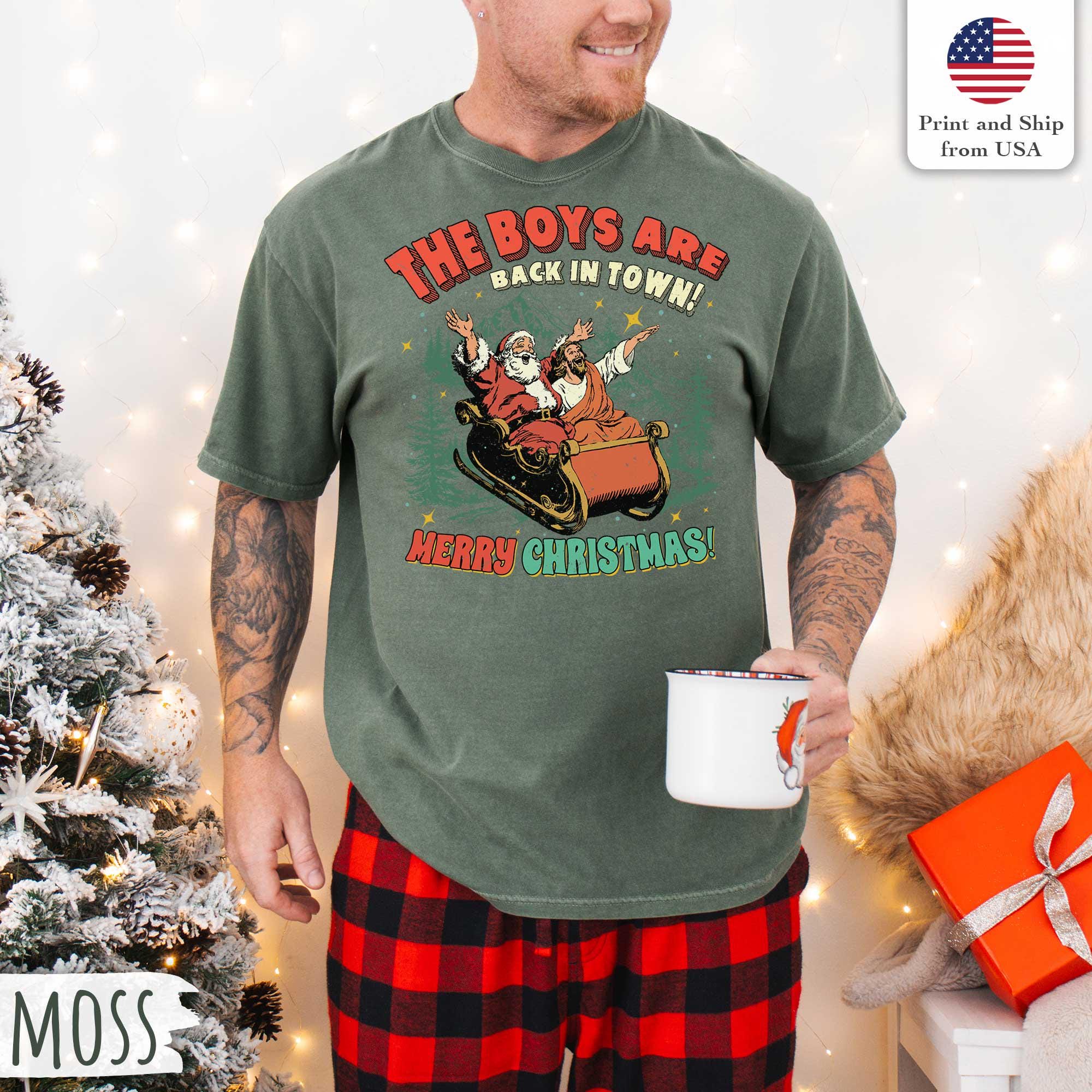 The Boys Are Back in Town Christmas Shirt, Comfort Colors® 1717 Unisex Garment-Dyed Tee, Funny Holiday Gift, Perfect Outfit for Men & Women