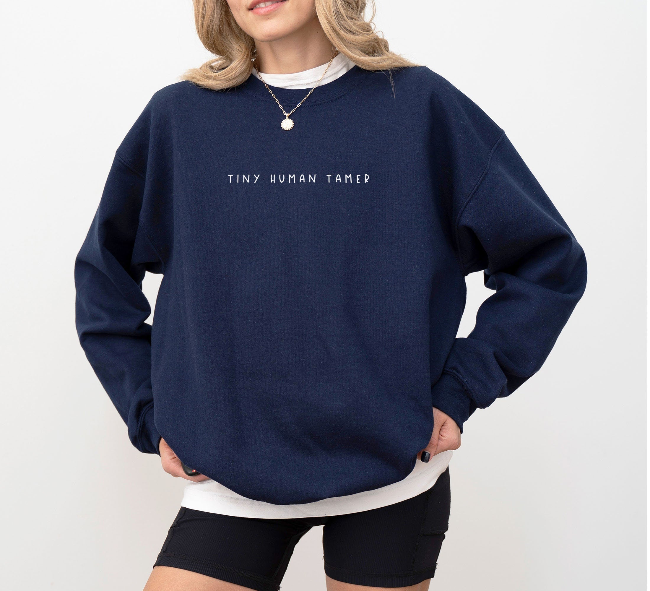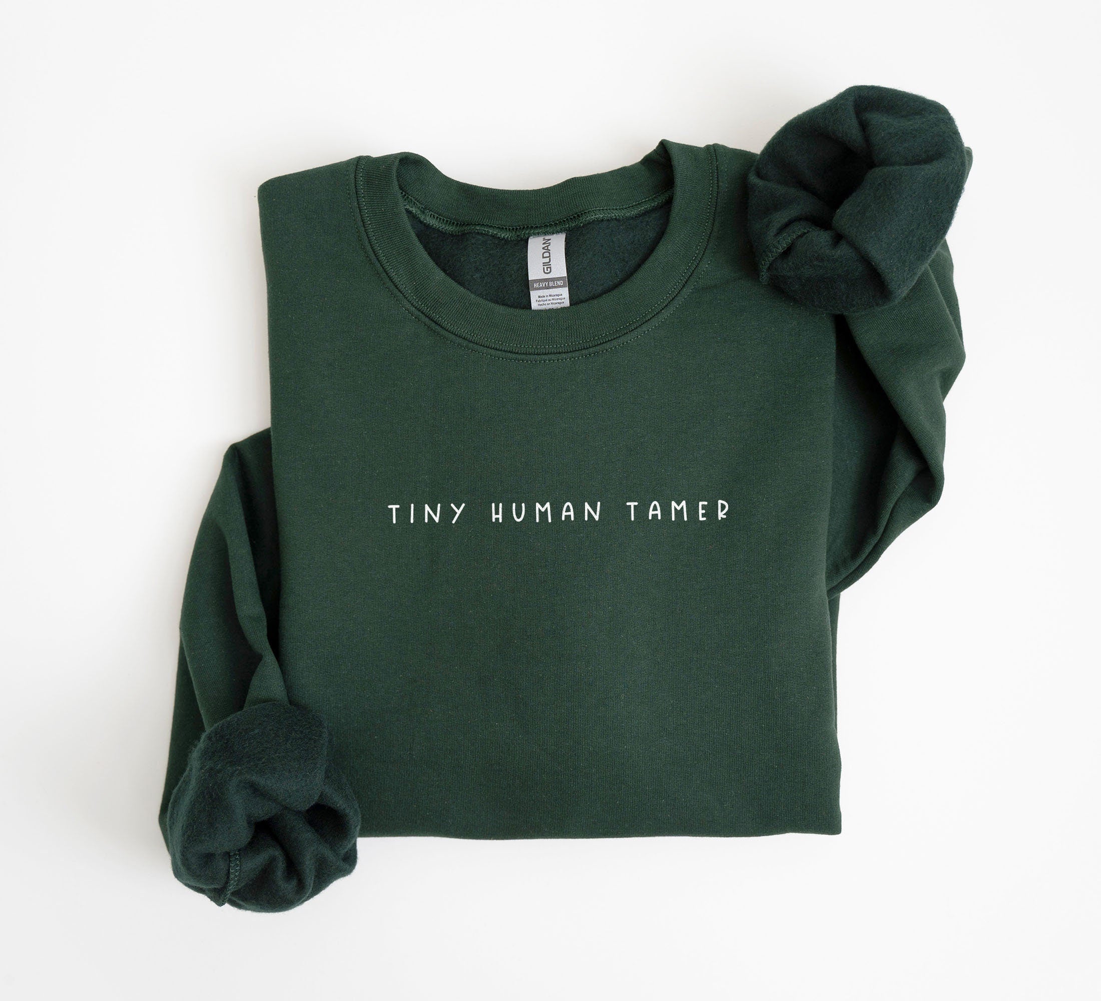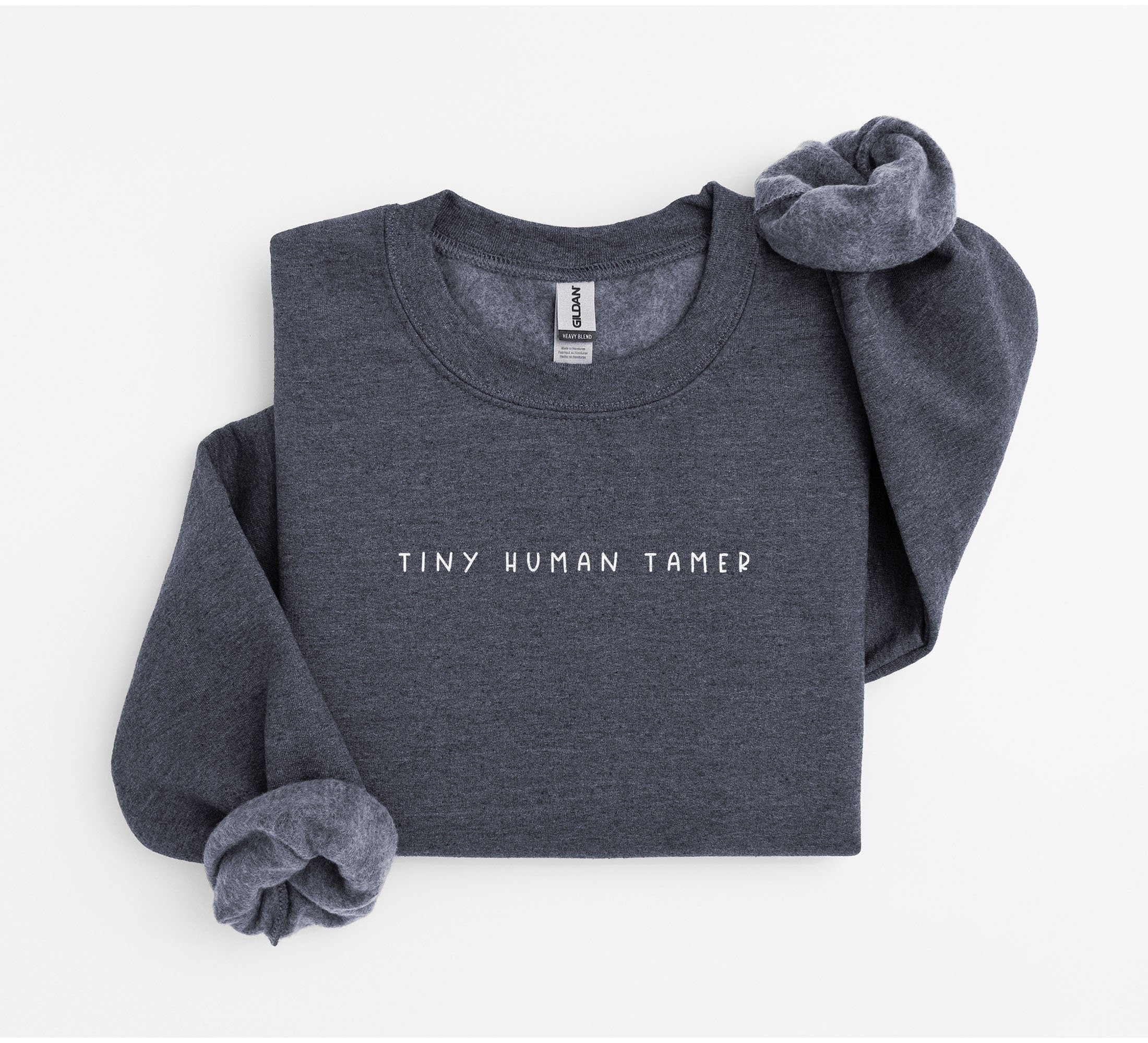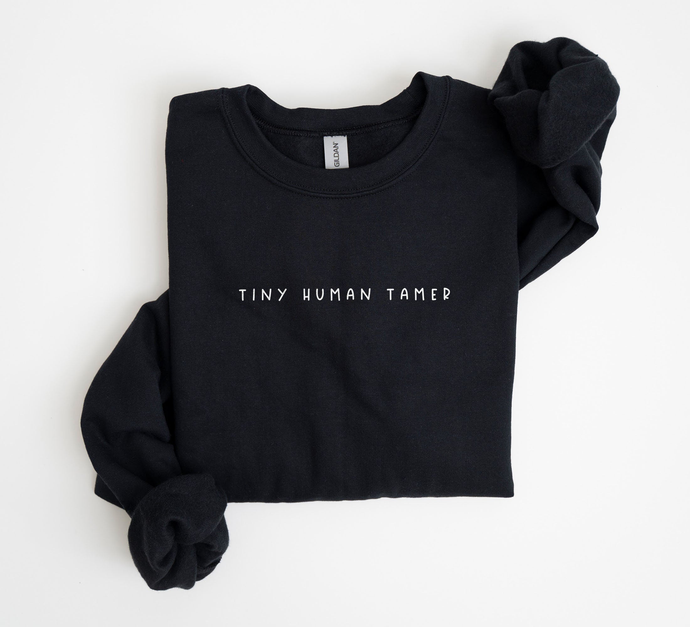 Tiny Human Tamer Sweatshirt: Gildan 18000 Unisex Crewneck, Preschool Teacher Gift, Minimalist Aesthetic, Cozy Daycare Outfit