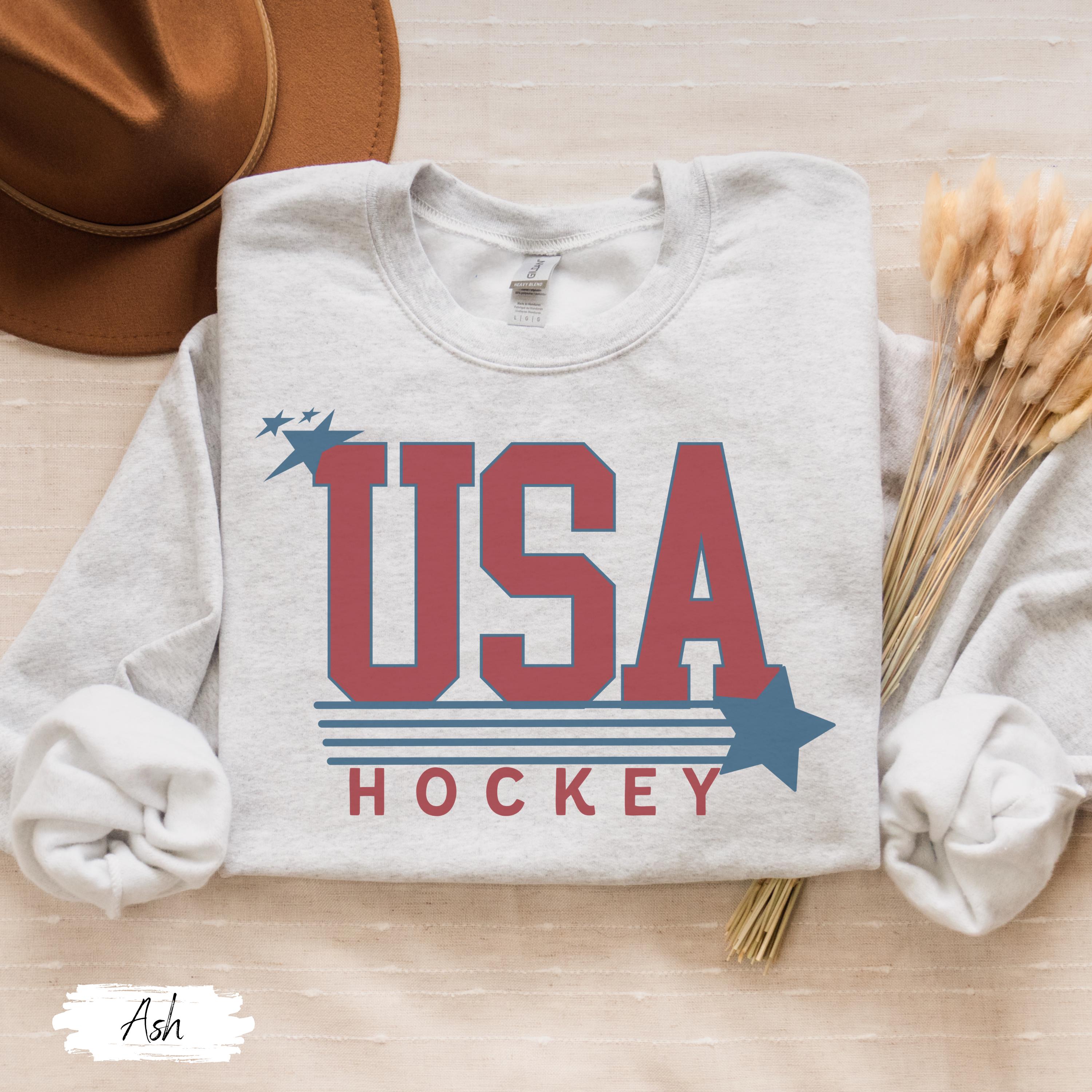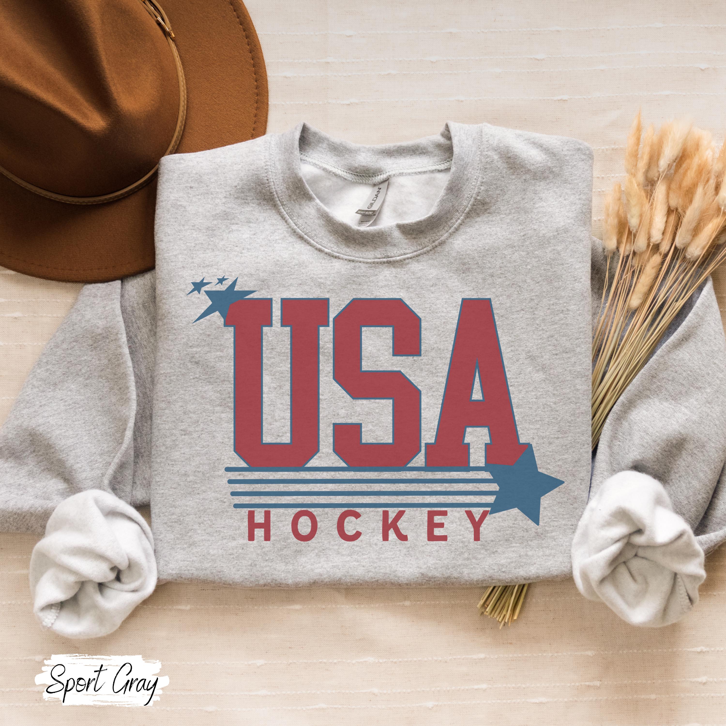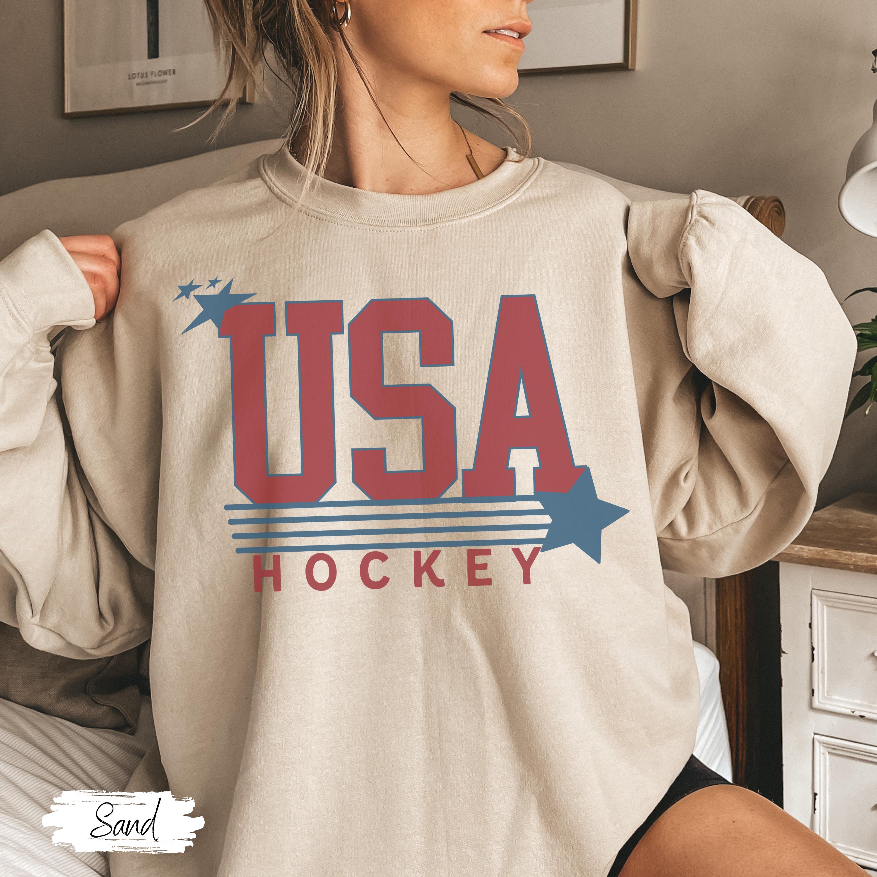 USA Flag Hockey Sweatshirt Winter Games Crewneck, Cozy Fleece Hockey Apparel, Unisex Oversized Fit, Game Day Gift for Men & Women