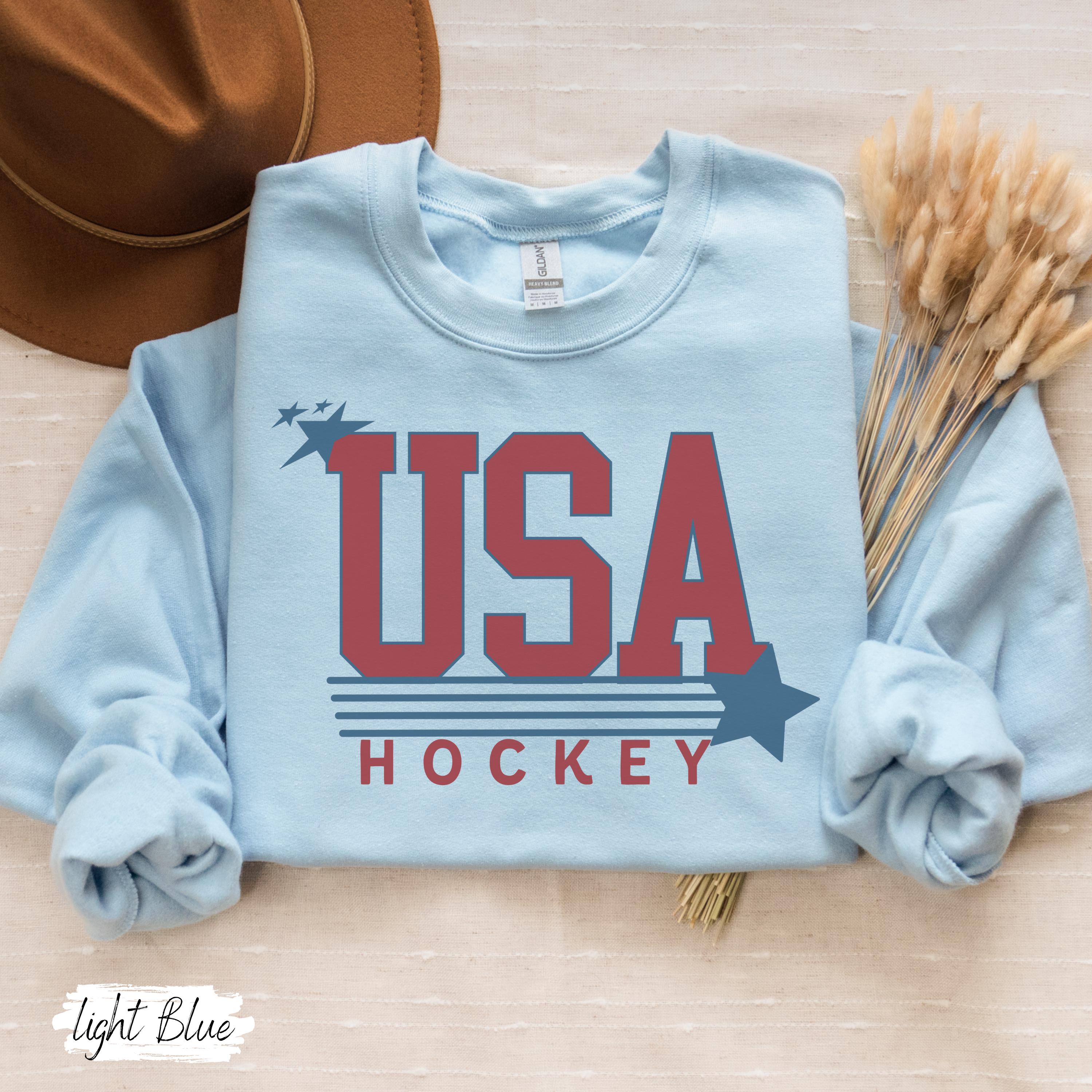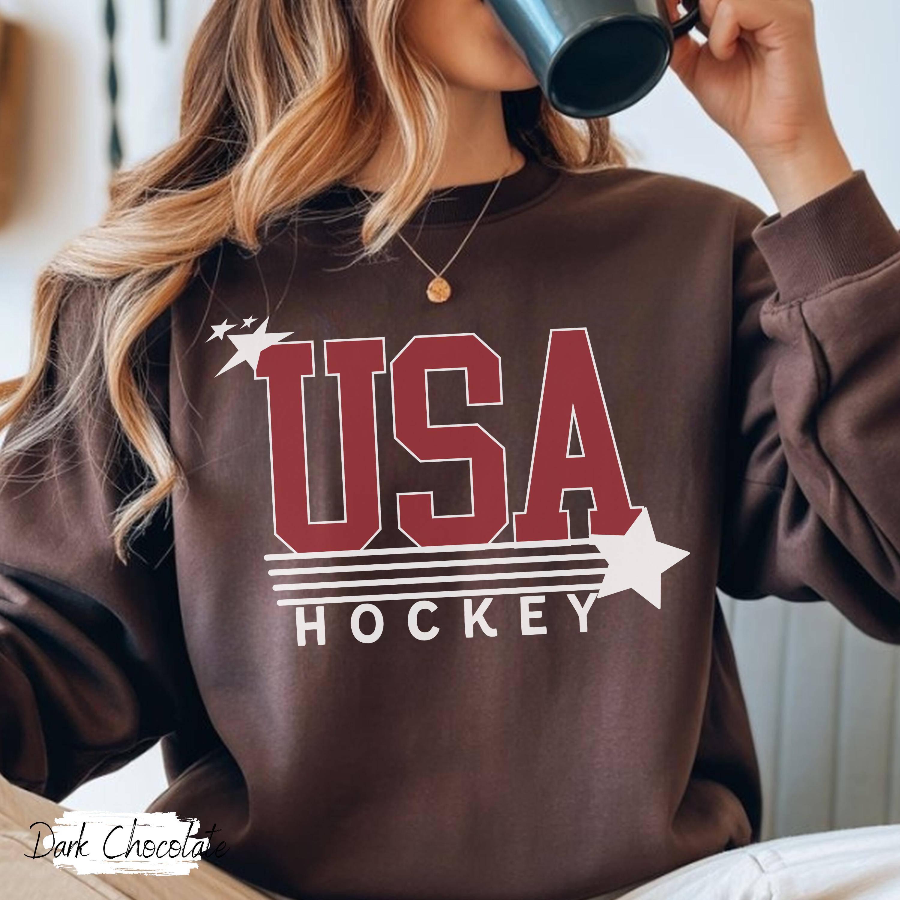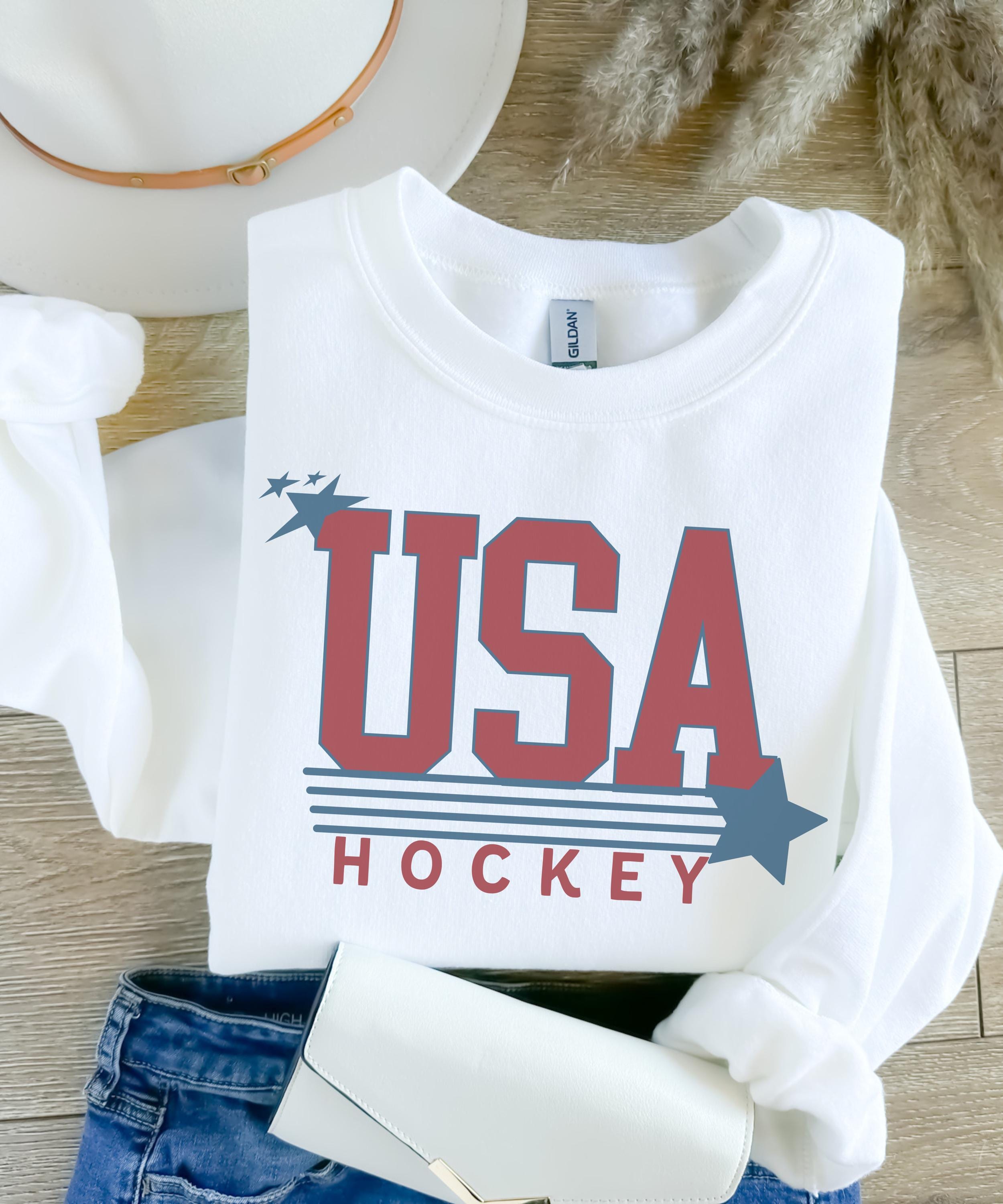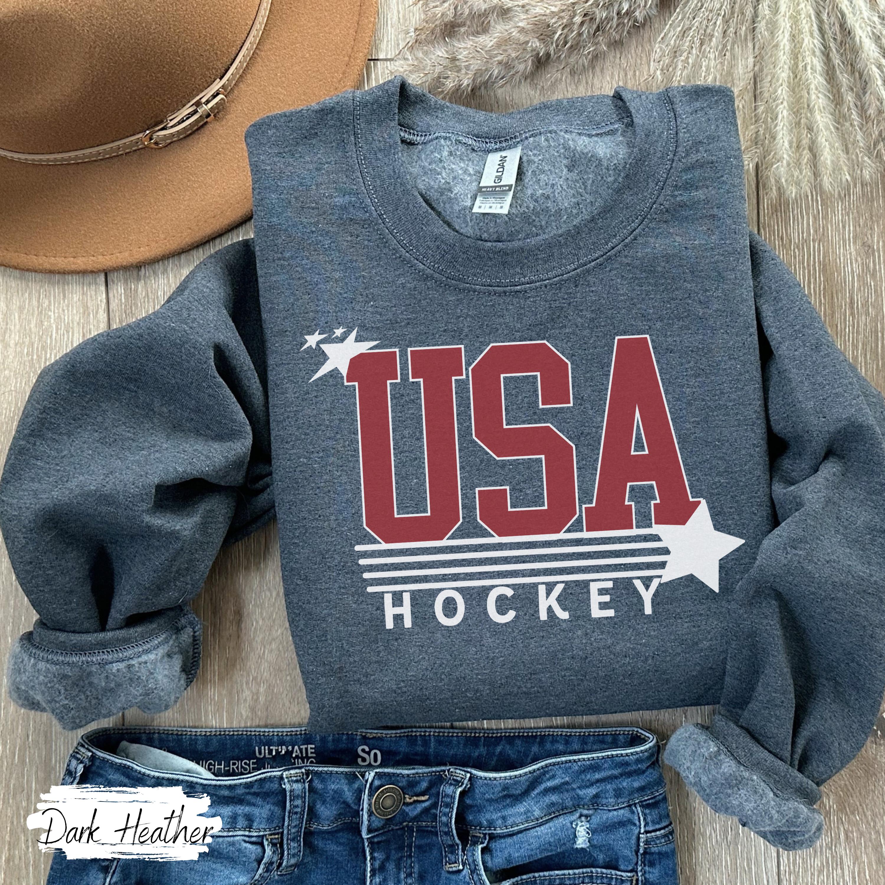 USA Flag Hockey Sweatshirt Winter Games Crewneck, Cozy Fleece Hockey Apparel, Unisex Oversized Fit, Game Day Gift for Men & Women