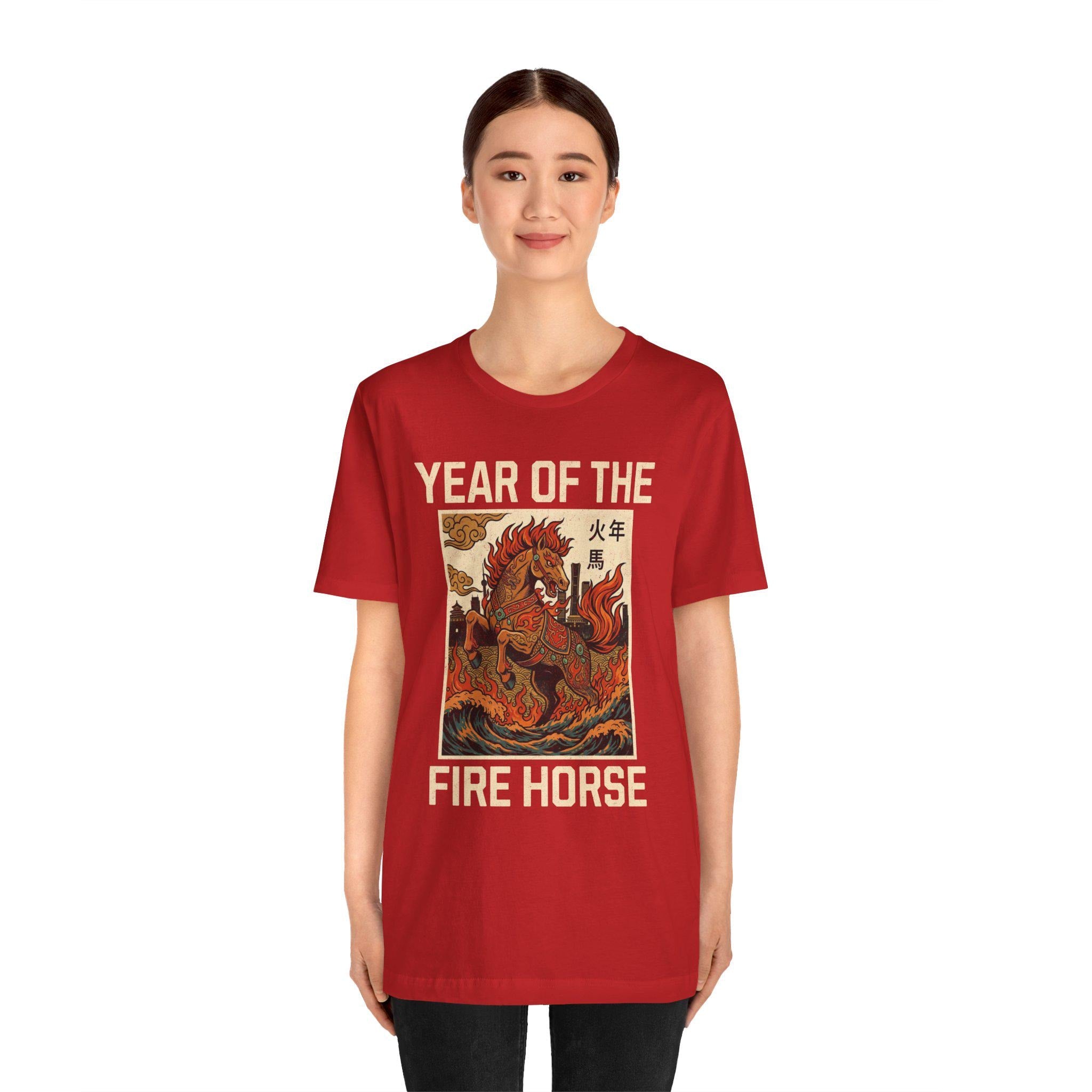Year of the Fire Horse 2026 Shirt Gildan 5000 Classic Tee Chinese New Year Zodiac Gift Retro Unisex Heavy Cotton for Women Men, Lunar New Year Outfit
