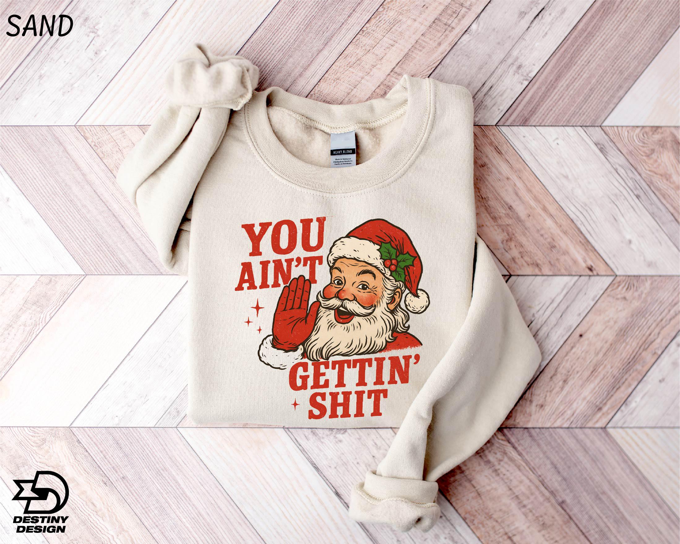 You Ain't Getting Shit Shirt - Funny Christmas Unisex Heavy Cotton Tee, Santa Claus Sweatshirt, Cozy Gildan 5000 Adult Humor Sweater, Perfect Xmas Gift for Men & Women, Printify Choice, Ideal for Holiday Outfits